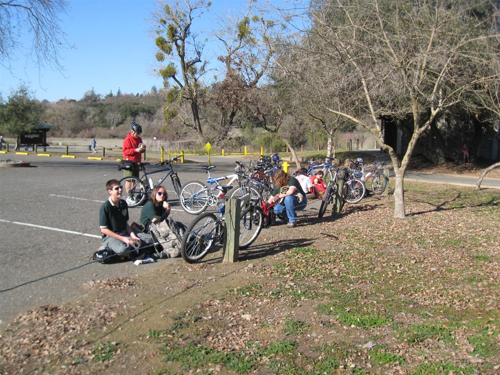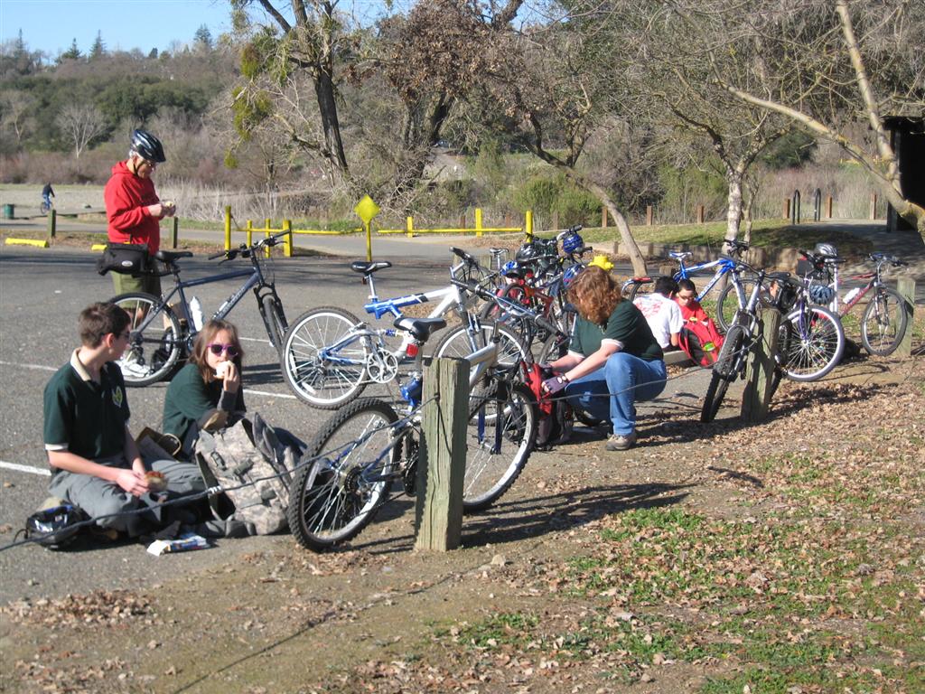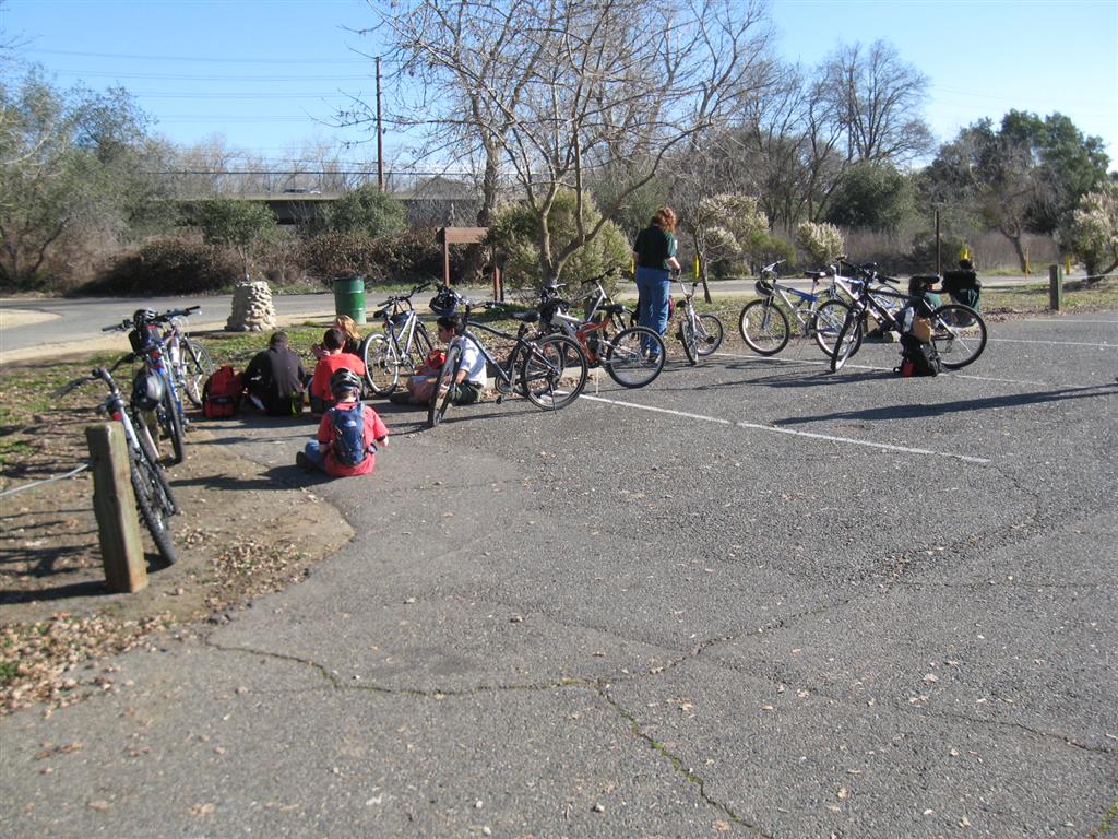 On Saturday, January 17, 8 Scouts and 3 adults got on their bikes at 9:00 a.m. and we all rode from Sequoia Elementary School trying to get to Negro Bar, approximately 23 miles away. We stopped for lunch at around 1 o’clock below the Sunrise Avenue Bridge. We kept riding and we got to Negro Bar at 2 ‘ish. Joe wasn’t there with our backpacks so Floyd taught us about GPS and geocaching. We then went out and tried to Geocache.