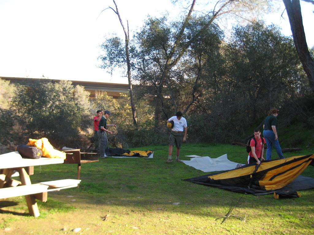 When Joe came we set up our tents. We changed and we went to do the Ice portion of our campout. Everybody did it. The water temperature was 52°F and outside was 70degrees. We went back and we started to cook dinner while some people played football. We had wonderful spaghetti. We then went to bed. The next morning we woke up and made pancakes.