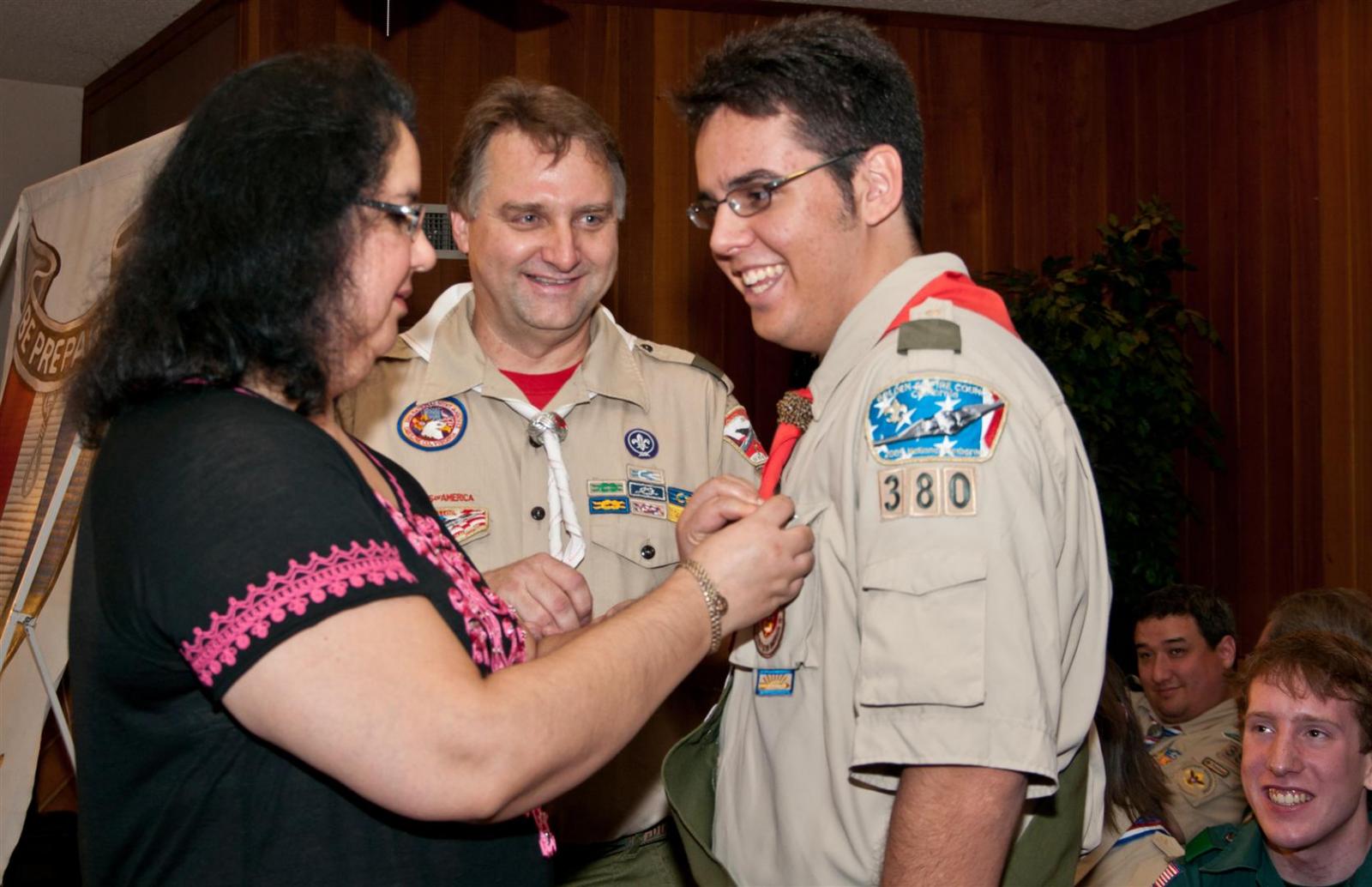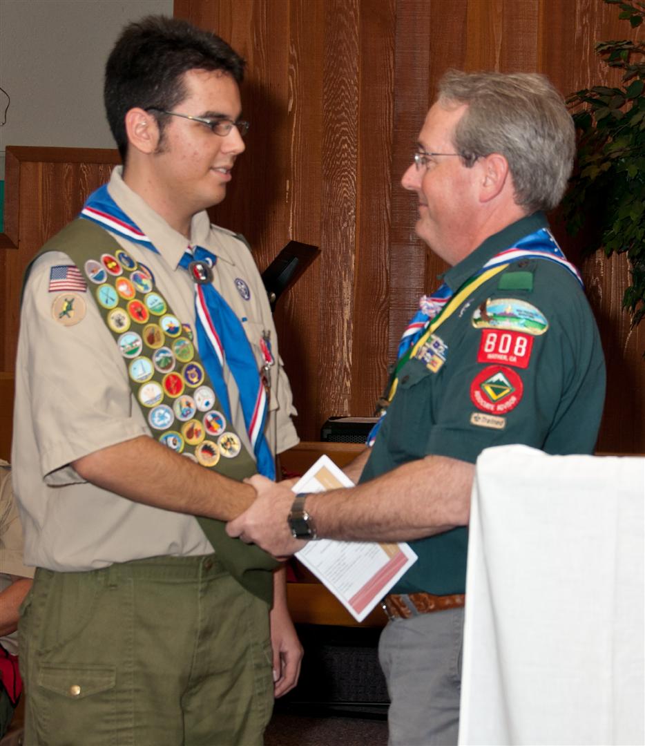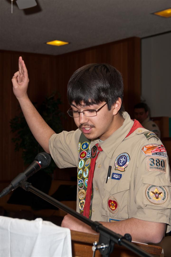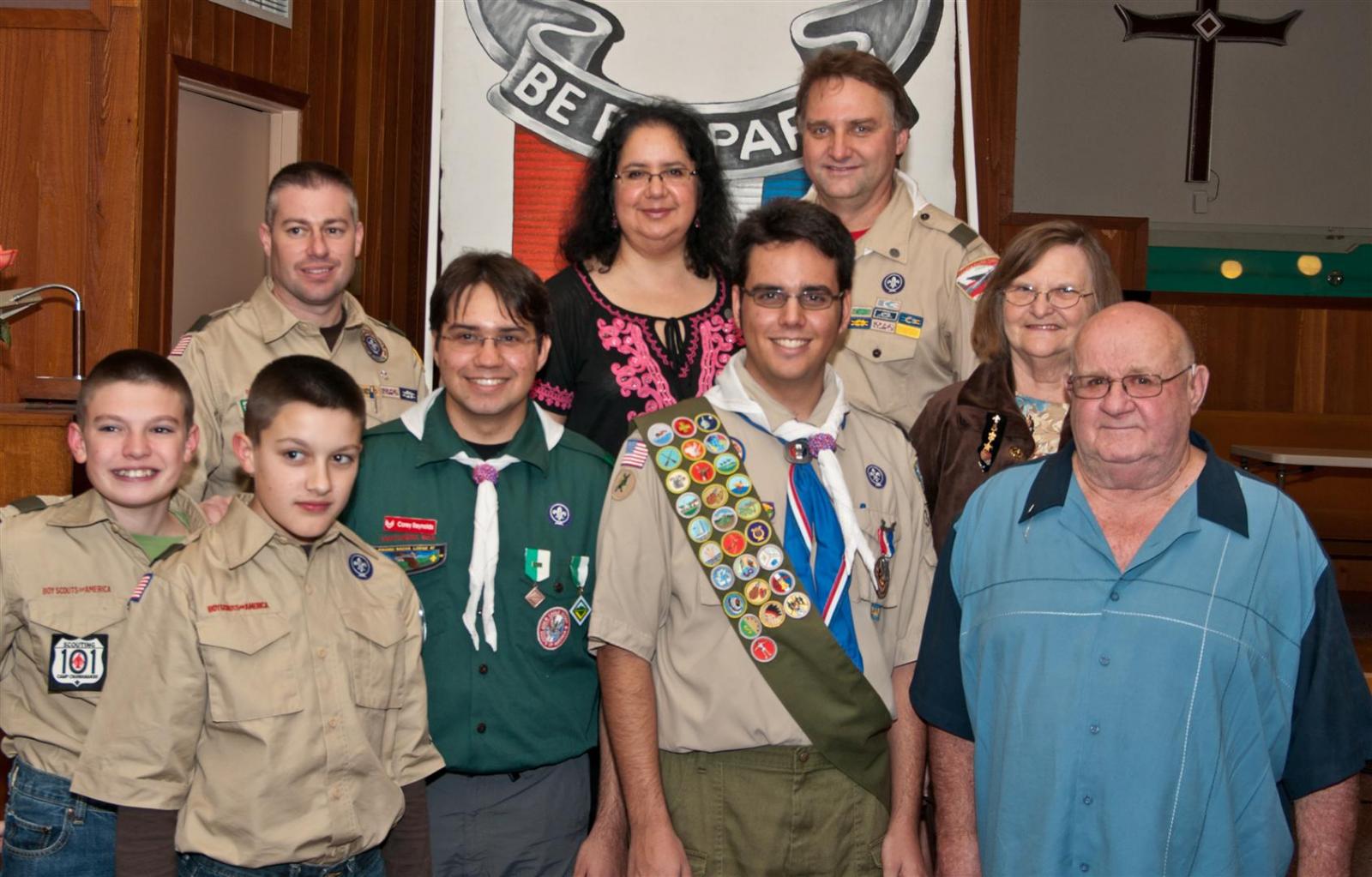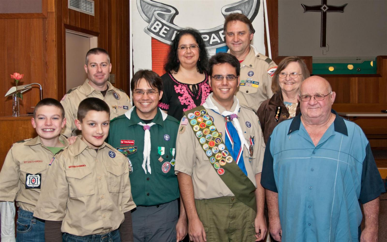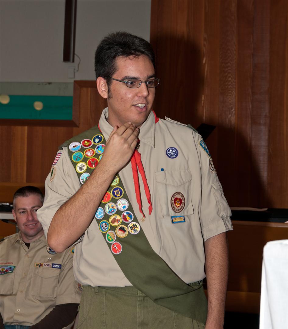 On February 4, I held my Eagle Court of Honor at Emmanuel Baptist Church. At 4:30, the court began and family members and old friends were introduced to the audience. From there, proceeded to the slideshow made by my Mother and I. After the slideshow was done, all the Eagles in audience were invited to the Eagles’ Nest, where they stated when they earned their Eagle award. Soon after that, I was brought out to the front to receive the award. From there I presented the pins to my Parents and Grandparents, as well as the Mentor pins to my mentors. After all the presentations were done, I shared my experience of the Scouting program to the audience and passed some advice to the younger ones still on the Trail to Eagle Scout. Refreshments were served afterwards. I would like to thank everyone who attended my Eagle Court and for those who helped to make it happen. Good luck to those still on the trail and Happy Trails to you.