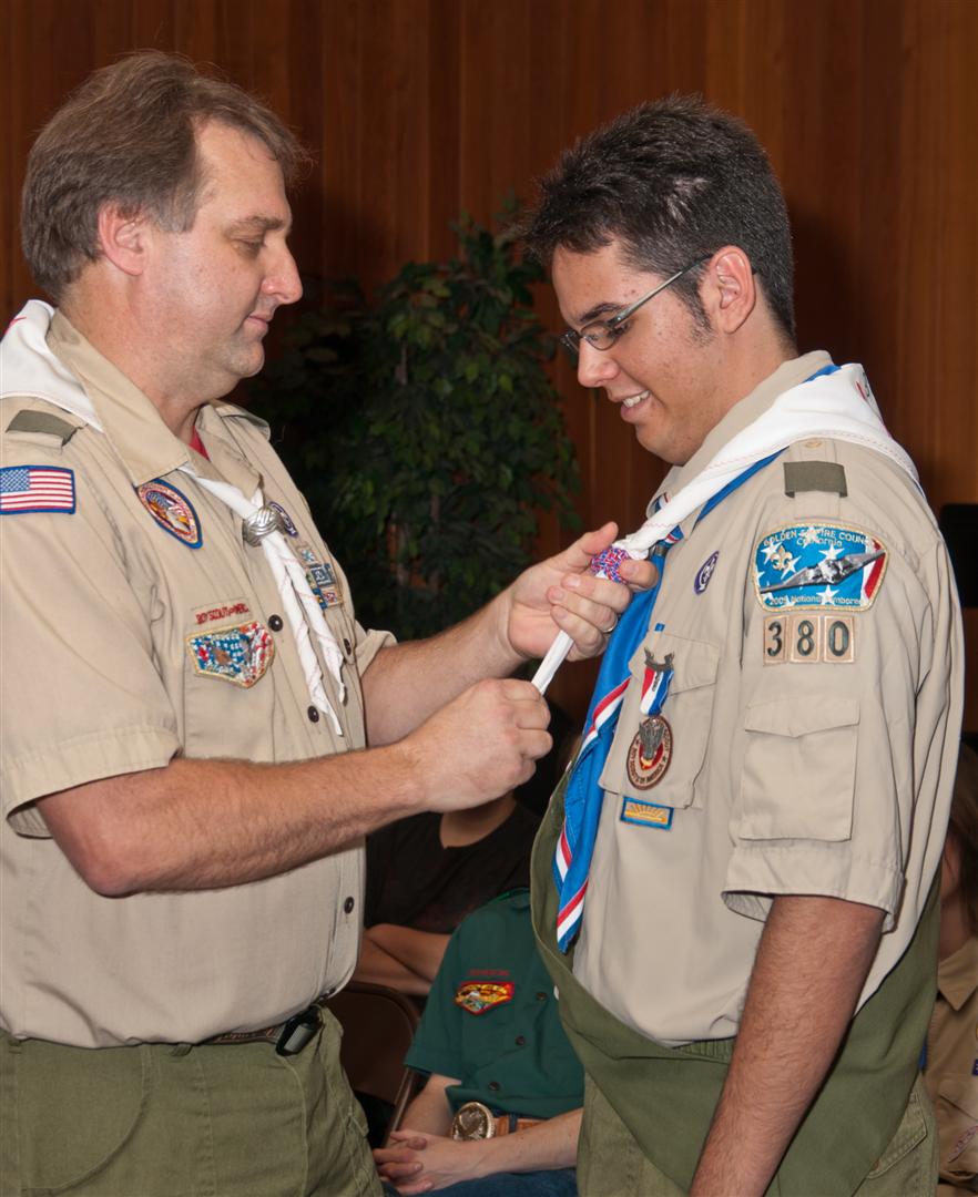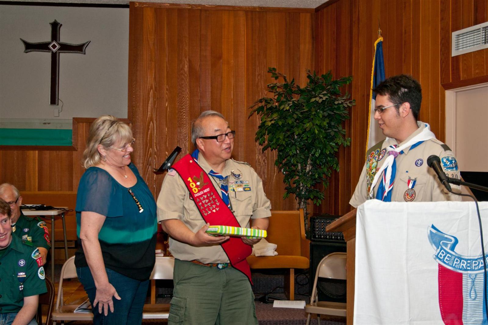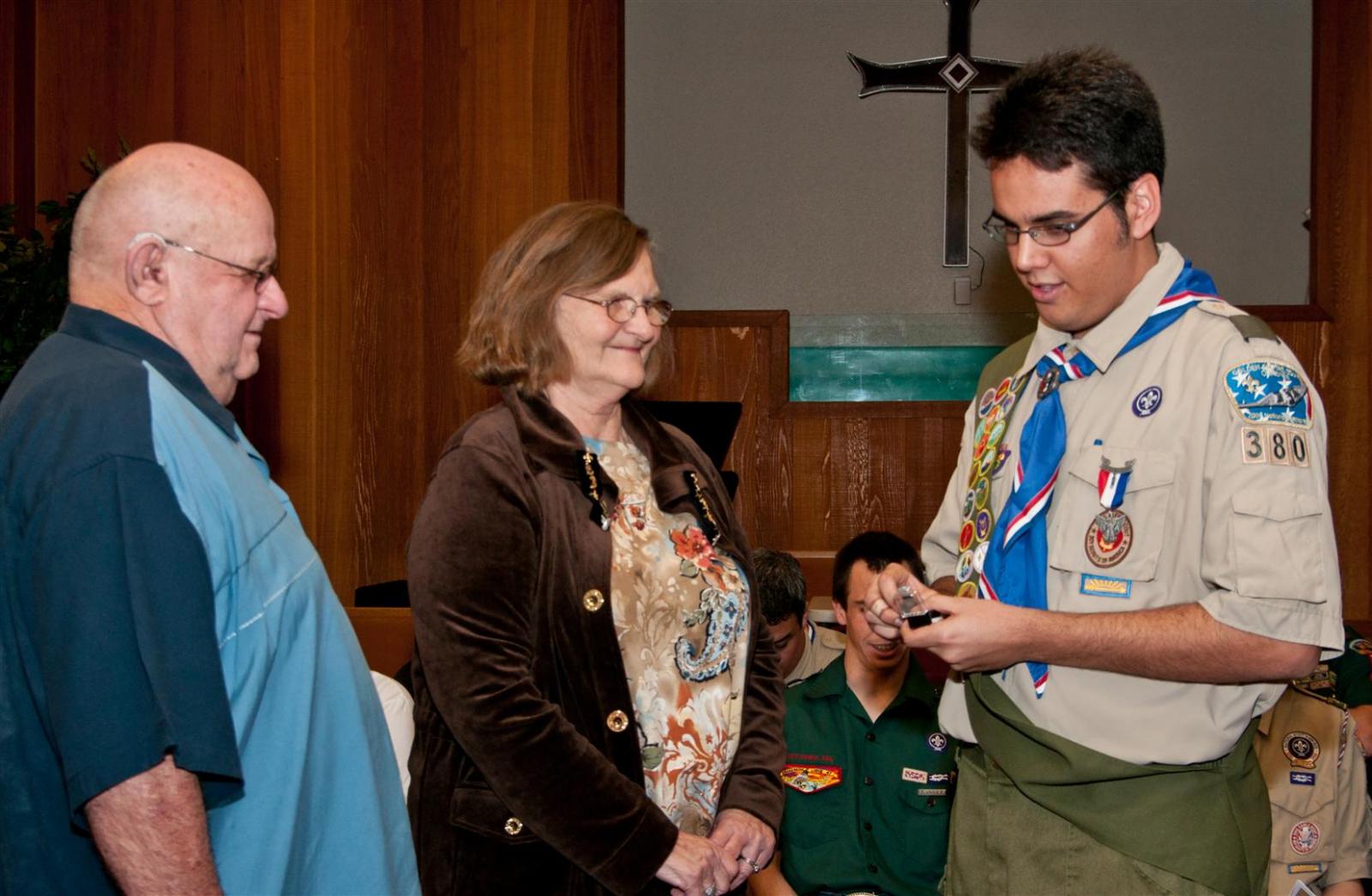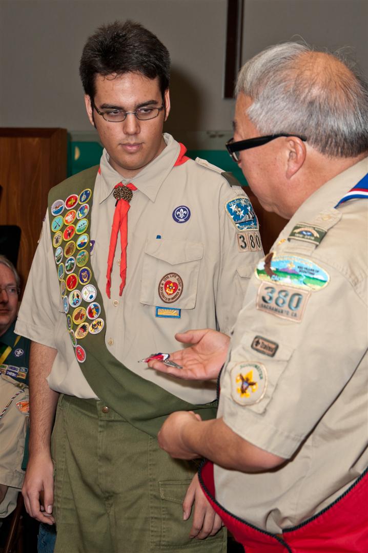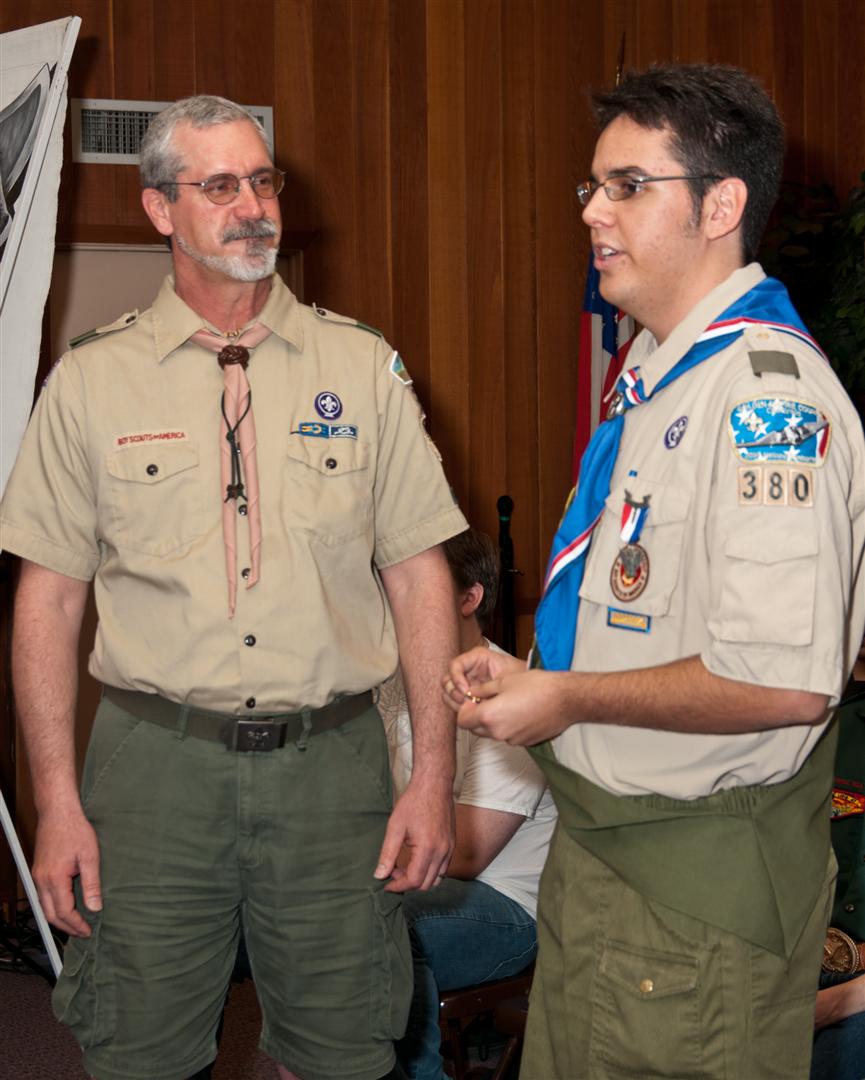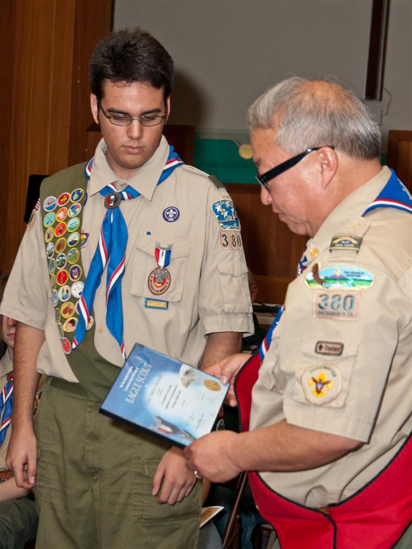 On February 4, I held my Eagle Court of Honor at Emmanuel Baptist Church. At 4:30, the court began and family members and old friends were introduced to the audience. From there, proceeded to the slideshow made by my Mother and I. After the slideshow was done, all the Eagles in audience were invited to the Eagles’ Nest, where they stated when they earned their Eagle award. Soon after that, I was brought out to the front to receive the award. From there I presented the pins to my Parents and Grandparents, as well as the Mentor pins to my mentors. After all the presentations were done, I shared my experience of the Scouting program to the audience and passed some advice to the younger ones still on the Trail to Eagle Scout. Refreshments were served afterwards. I would like to thank everyone who attended my Eagle Court and for those who helped to make it happen. Good luck to those still on the trail and Happy Trails to you.