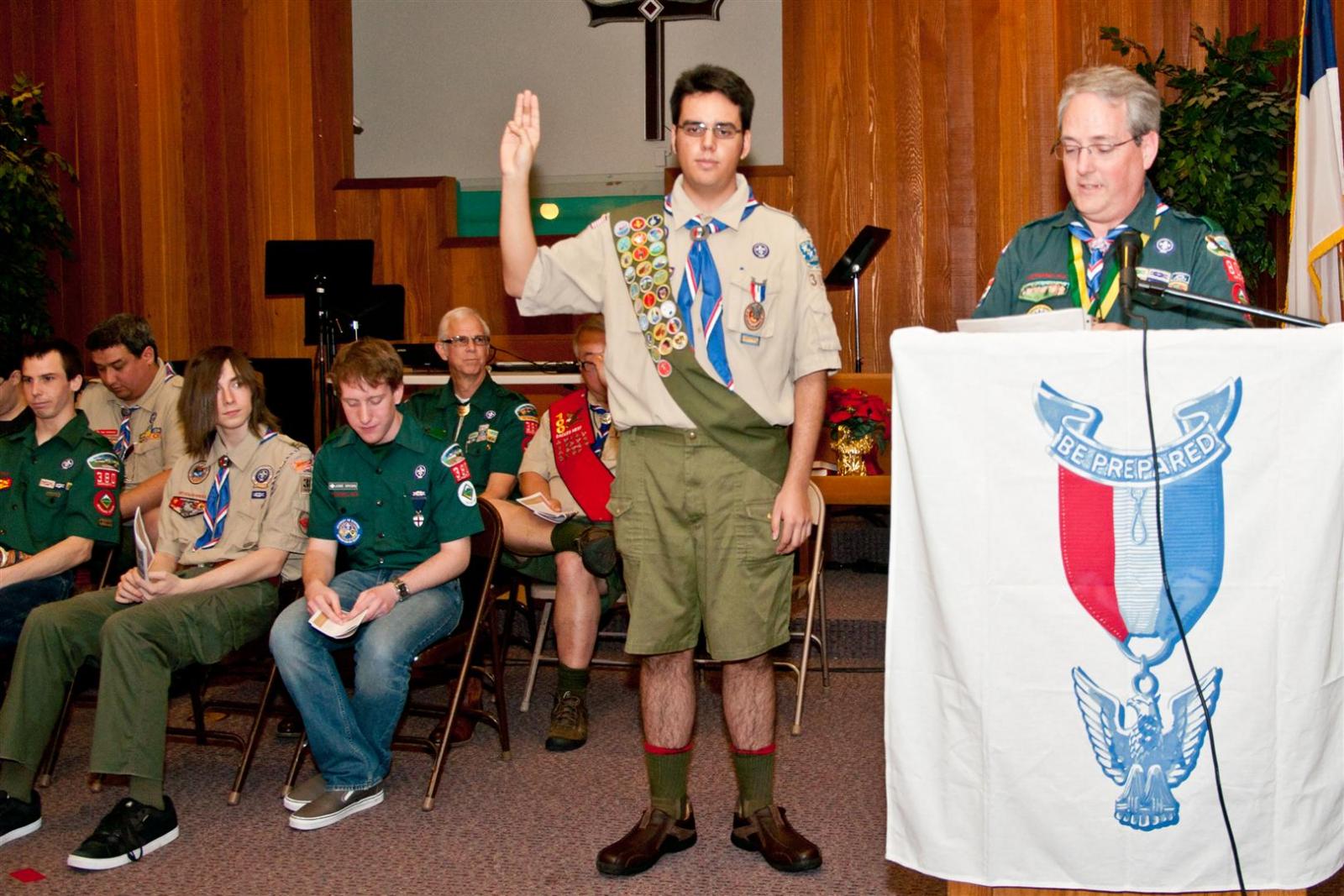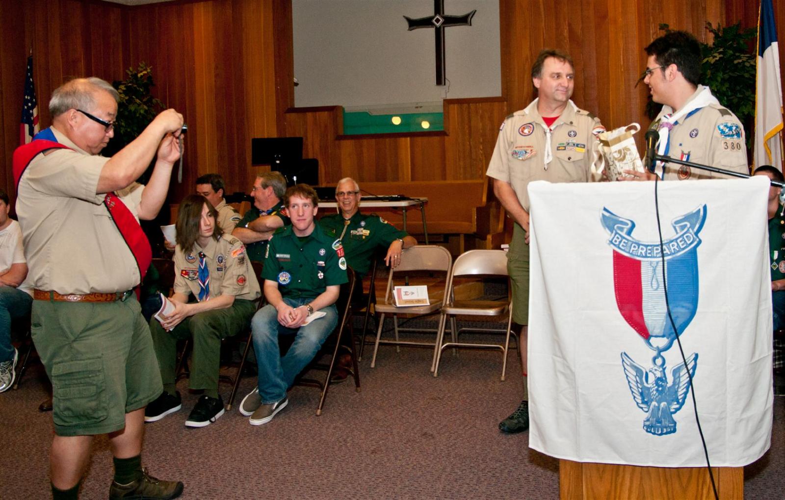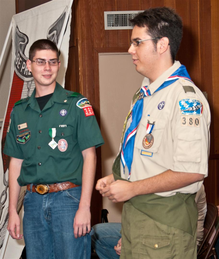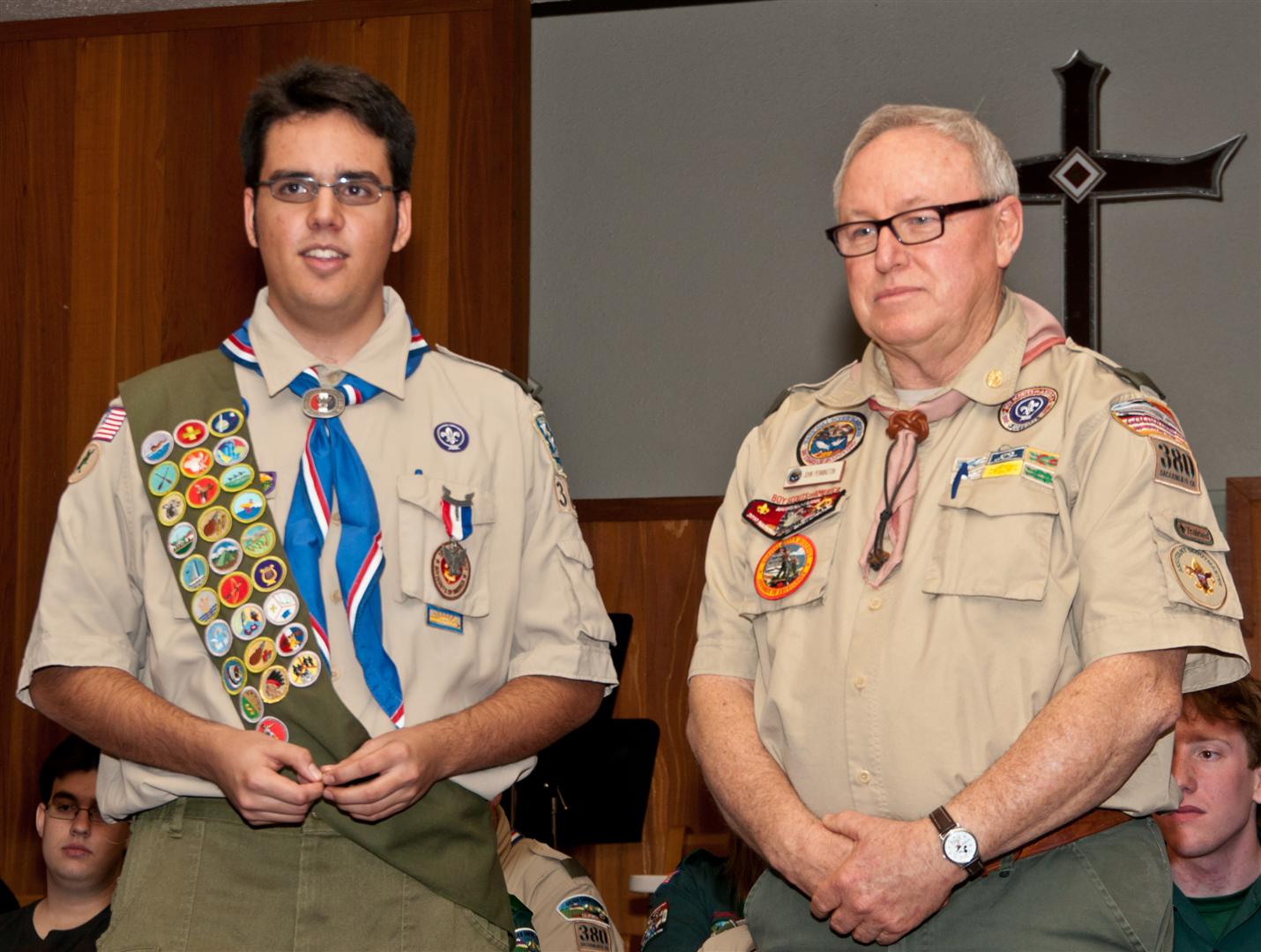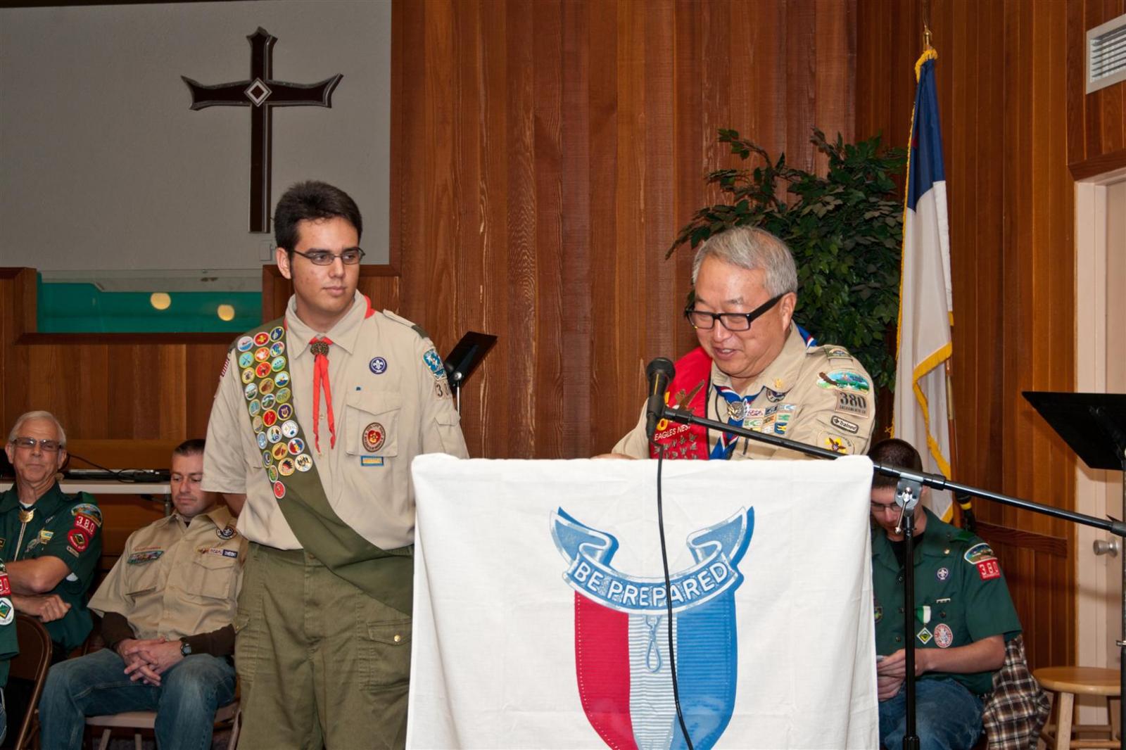 On February 4, I held my Eagle Court of Honor at Emmanuel Baptist Church. At 4:30, the court began and family members and old friends were introduced to the audience. From there, proceeded to the slideshow made by my Mother and I. After the slideshow was done, all the Eagles in audience were invited to the Eagles’ Nest, where they stated when they earned their Eagle award. Soon after that, I was brought out to the front to receive the award. From there I presented the pins to my Parents and Grandparents, as well as the Mentor pins to my mentors. After all the presentations were done, I shared my experience of the Scouting program to the audience and passed some advice to the younger ones still on the Trail to Eagle Scout. Refreshments were served afterwards. I would like to thank everyone who attended my Eagle Court and for those who helped to make it happen. Good luck to those still on the trail and Happy Trails to you.
