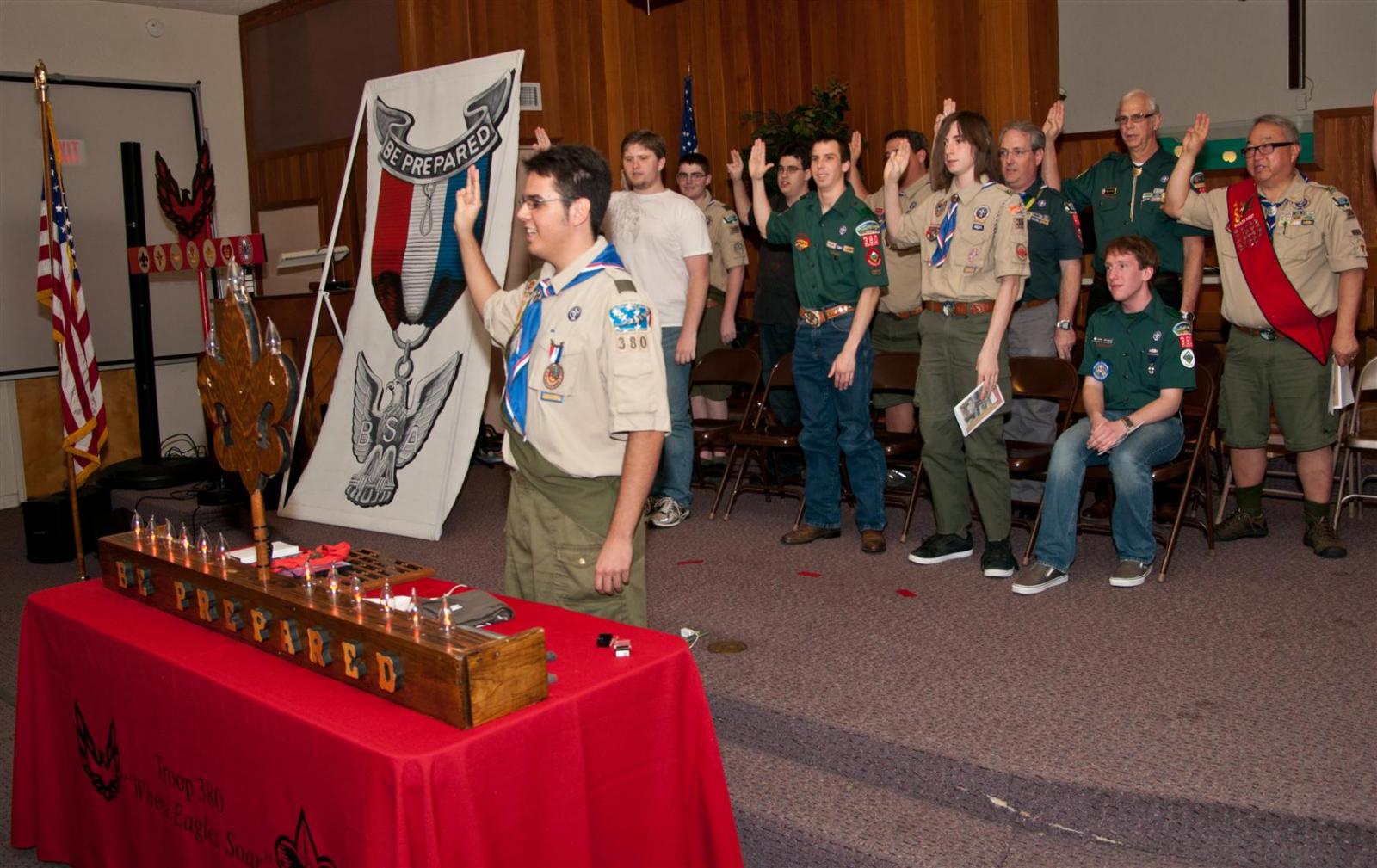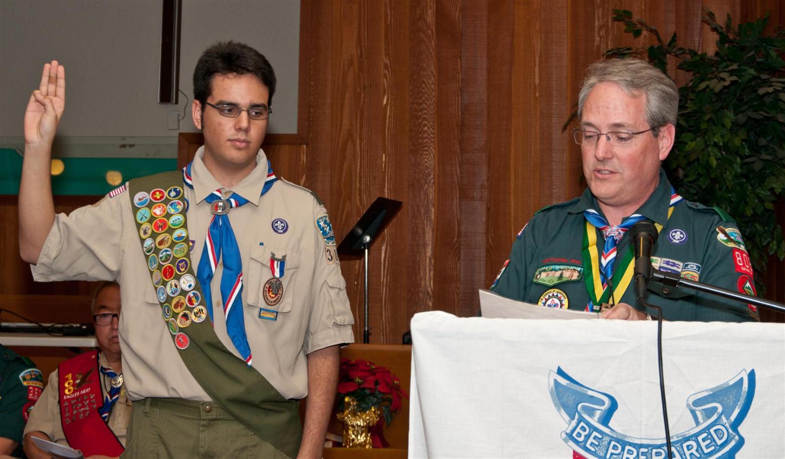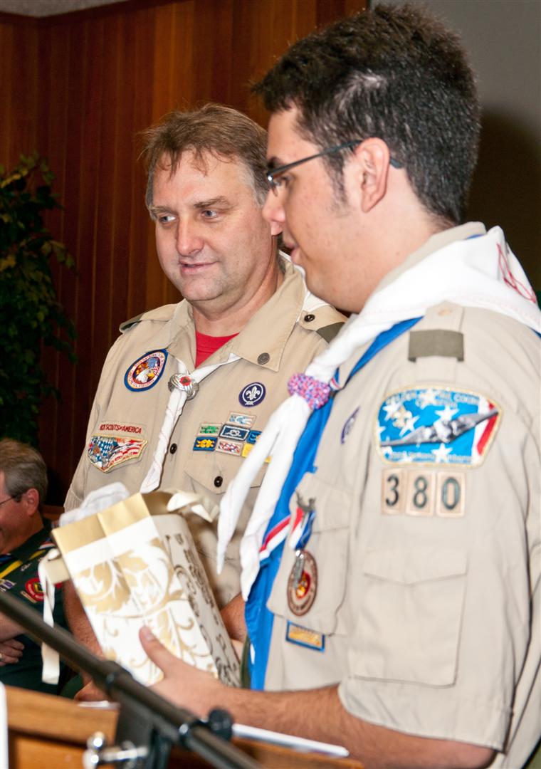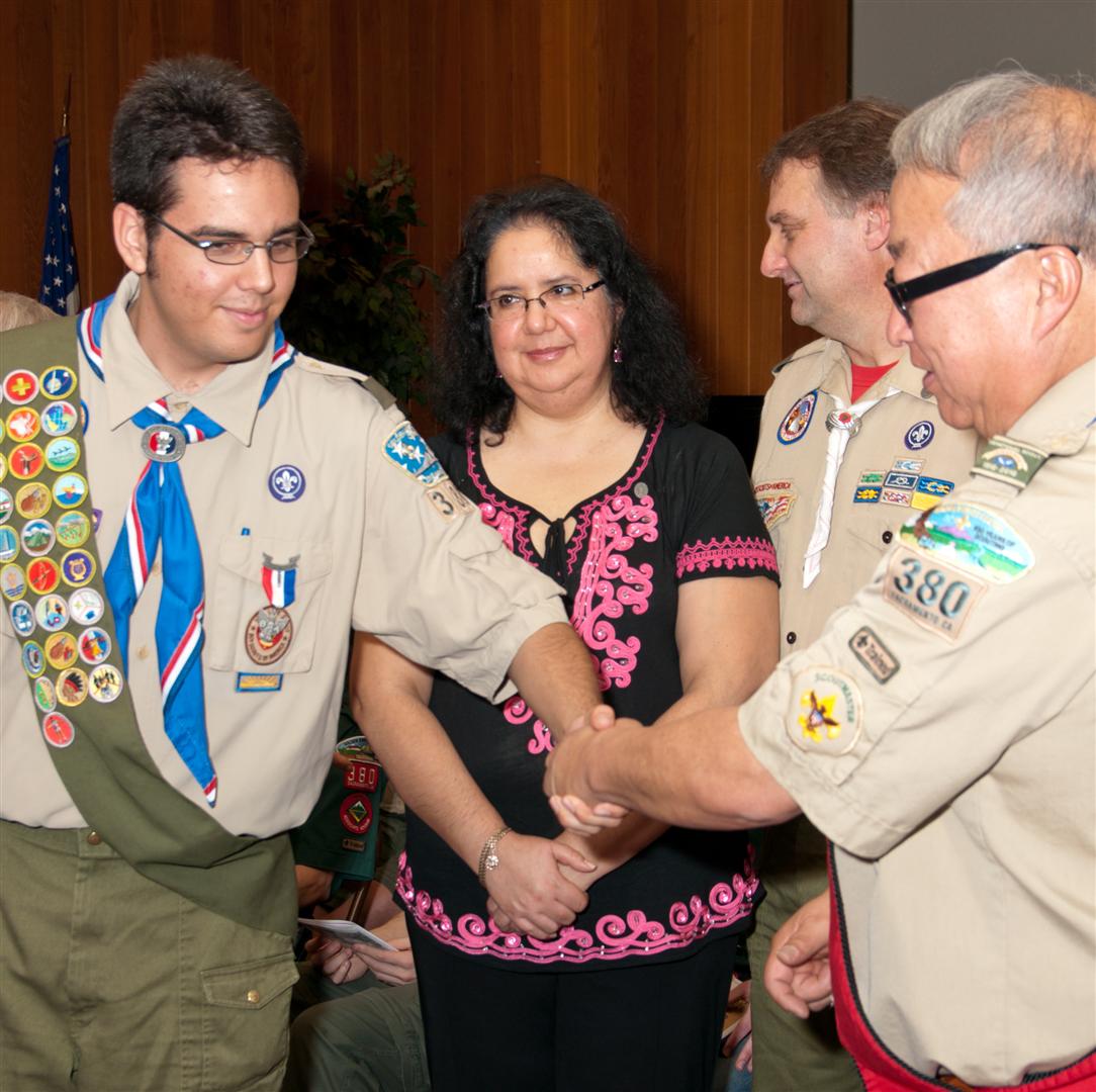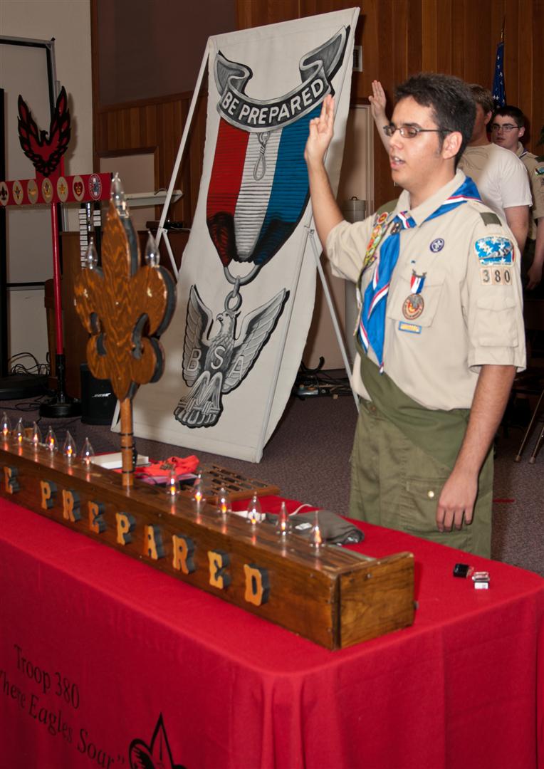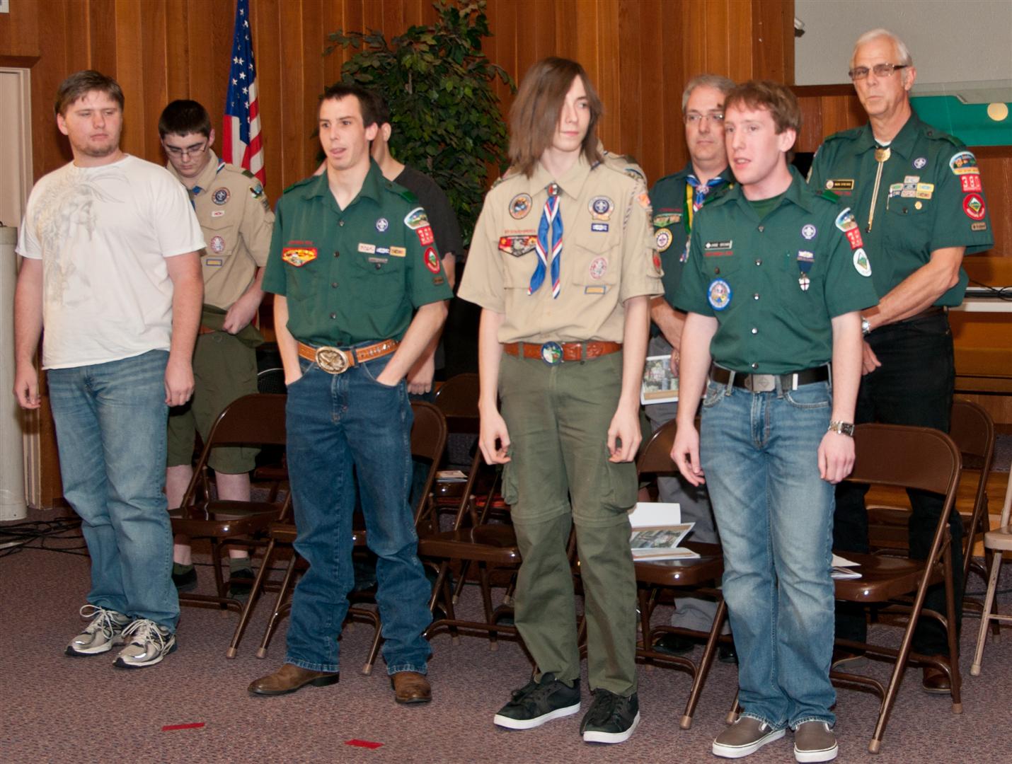 On February 4, I held my Eagle Court of Honor at Emmanuel Baptist Church. At 4:30, the court began and family members and old friends were introduced to the audience. From there, proceeded to the slideshow made by my Mother and I. After the slideshow was done, all the Eagles in audience were invited to the Eagles’ Nest, where they stated when they earned their Eagle award. Soon after that, I was brought out to the front to receive the award. From there I presented the pins to my Parents and Grandparents, as well as the Mentor pins to my mentors. After all the presentations were done, I shared my experience of the Scouting program to the audience and passed some advice to the younger ones still on the Trail to Eagle Scout. Refreshments were served afterwards. I would like to thank everyone who attended my Eagle Court and for those who helped to make it happen. Good luck to those still on the trail and Happy Trails to you.