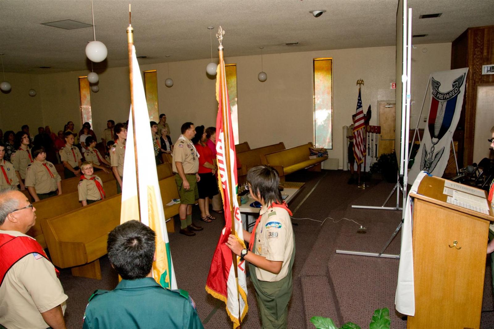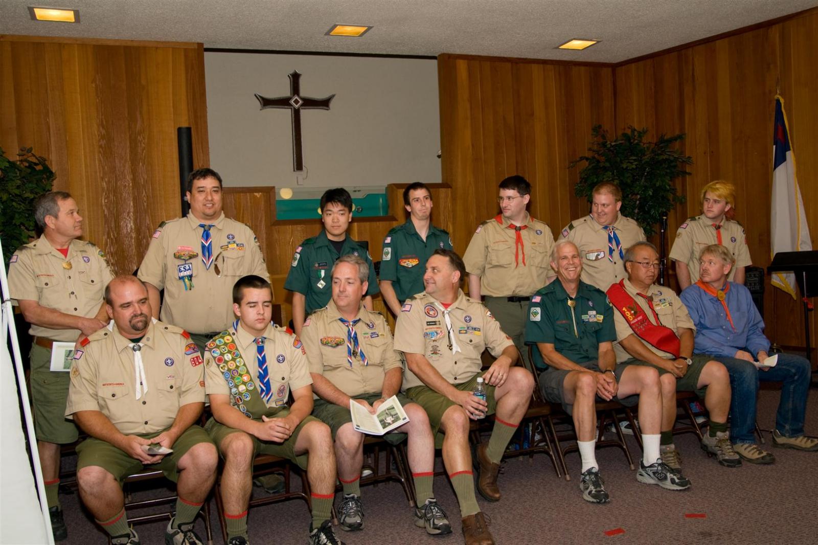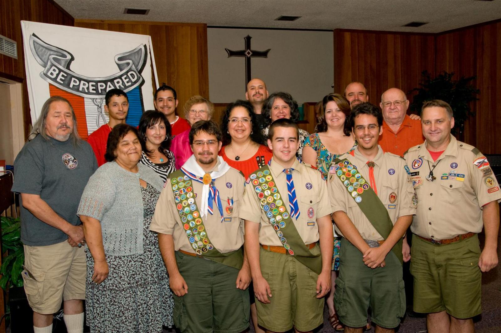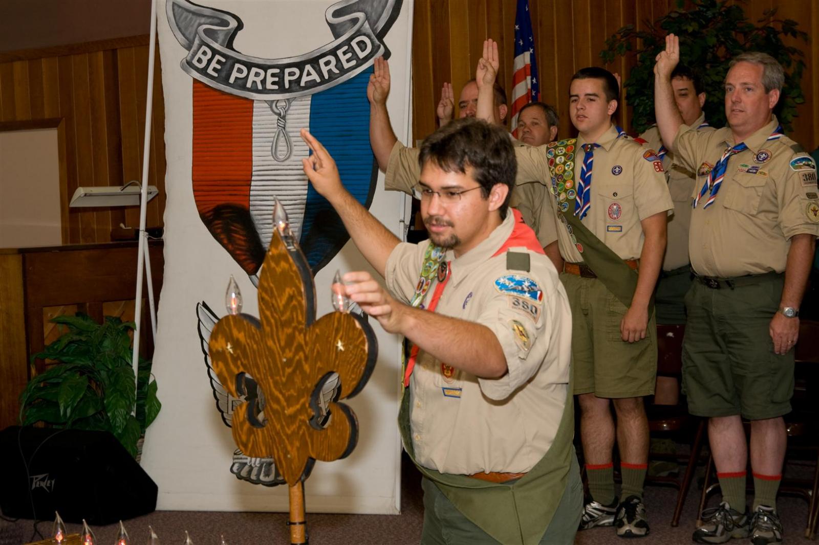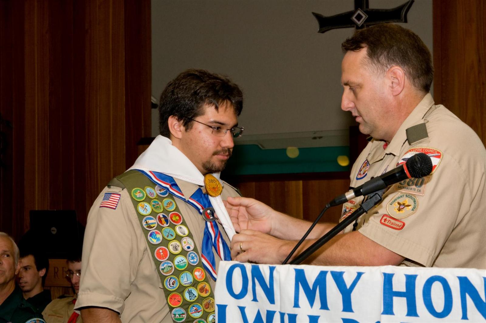 On July 3, 2010, Troop 380 held the Eagle Court of Honor for Corey Reynolds at Emmanuel Baptist Church. At the court of honor Garret R., a cousin of Corey and an Eagle Scout, himself, played trumpet for the opening colors which was followed by a slide show presentation showing some of the major events Corey had participated in. After the slide show was done, previous eagle Scouts were asked to join and form the Eagles’ Nest. The court of honor progressed to the presentation of the Eagle Scout Award to Corey. In addition to being presented the award, Corey and his father both made presentations to people instrumental to Corey earning the award. After the court of honor was concluded, refreshments of cookies, cake, and root beer floats were served. All in all, the evening was happy.