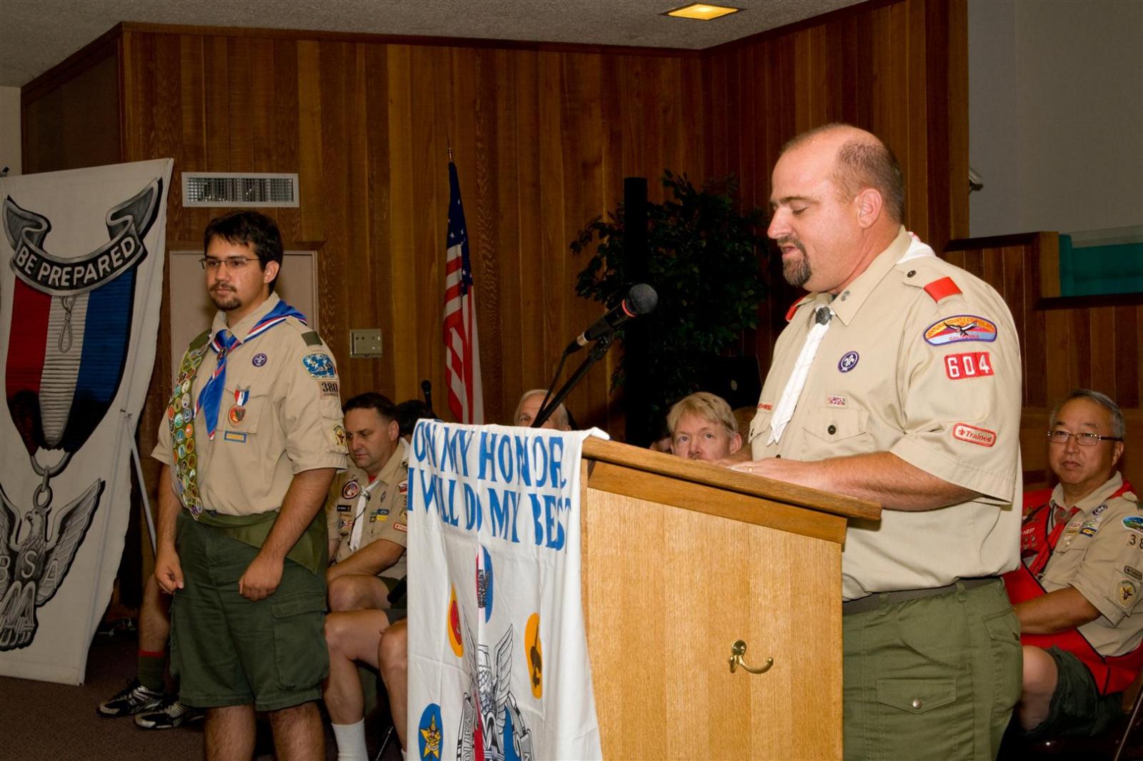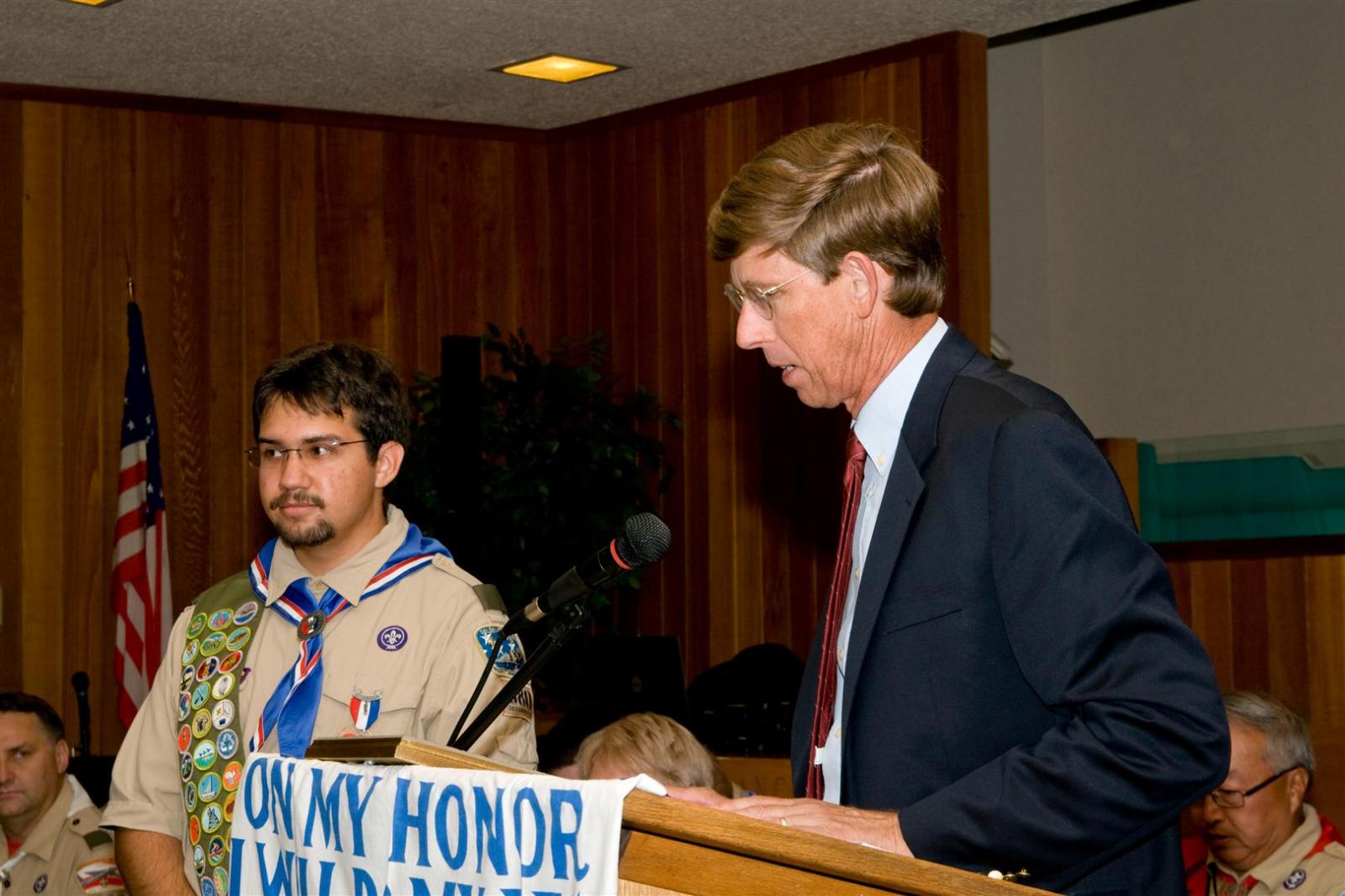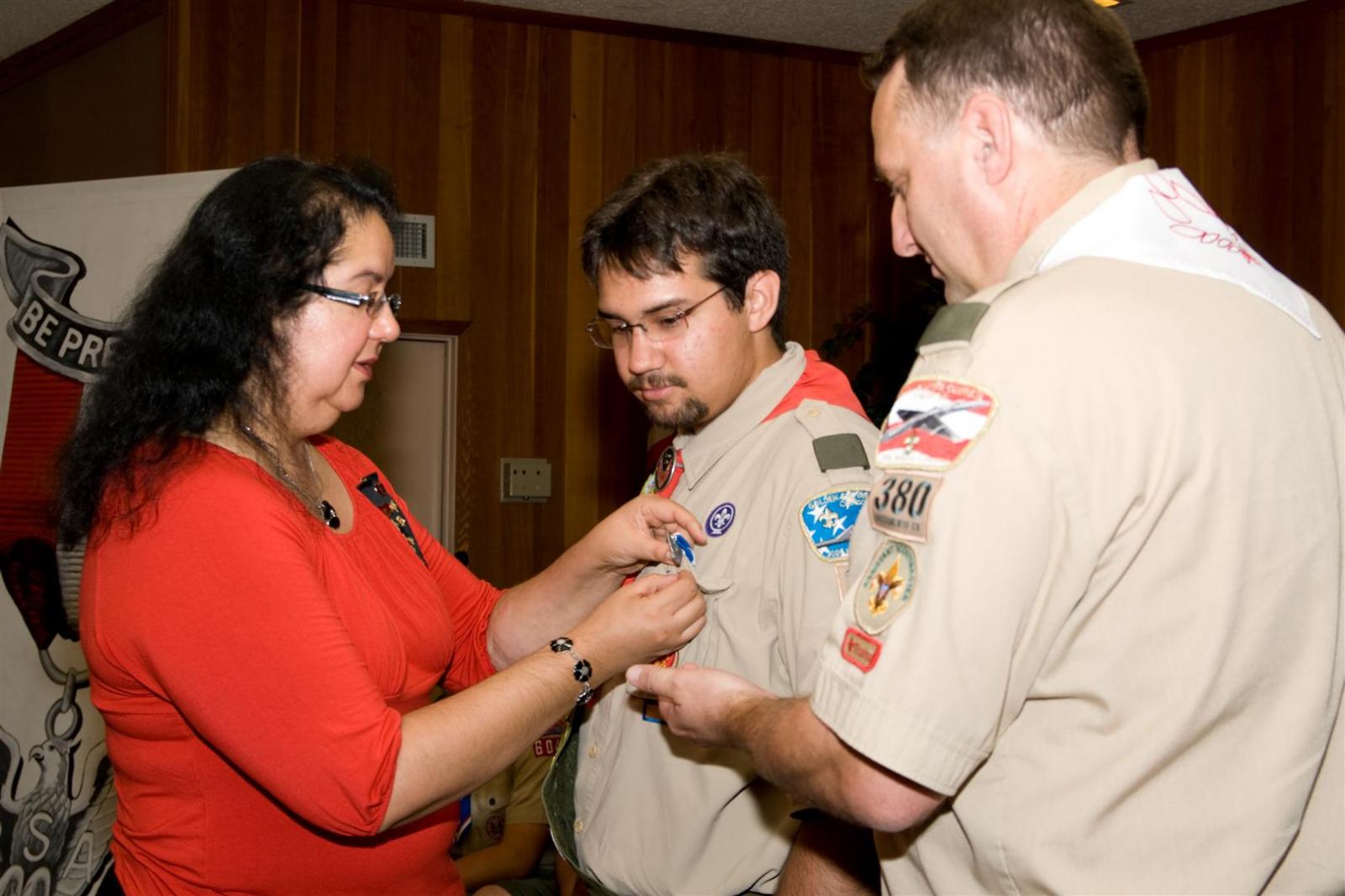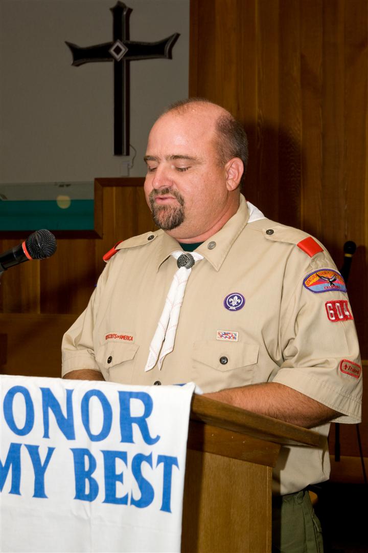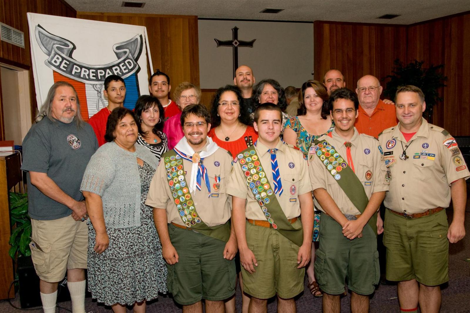 On July 3, 2010, Troop 380 held the Eagle Court of Honor for Corey Reynolds at Emmanuel Baptist Church. At the court of honor Garret R., a cousin of Corey and an Eagle Scout, himself, played trumpet for the opening colors which was followed by a slide show presentation showing some of the major events Corey had participated in. After the slide show was done, previous eagle Scouts were asked to join and form the Eagles’ Nest. The court of honor progressed to the presentation of the Eagle Scout Award to Corey. In addition to being presented the award, Corey and his father both made presentations to people instrumental to Corey earning the award. After the court of honor was concluded, refreshments of cookies, cake, and root beer floats were served. All in all, the evening was happy.
