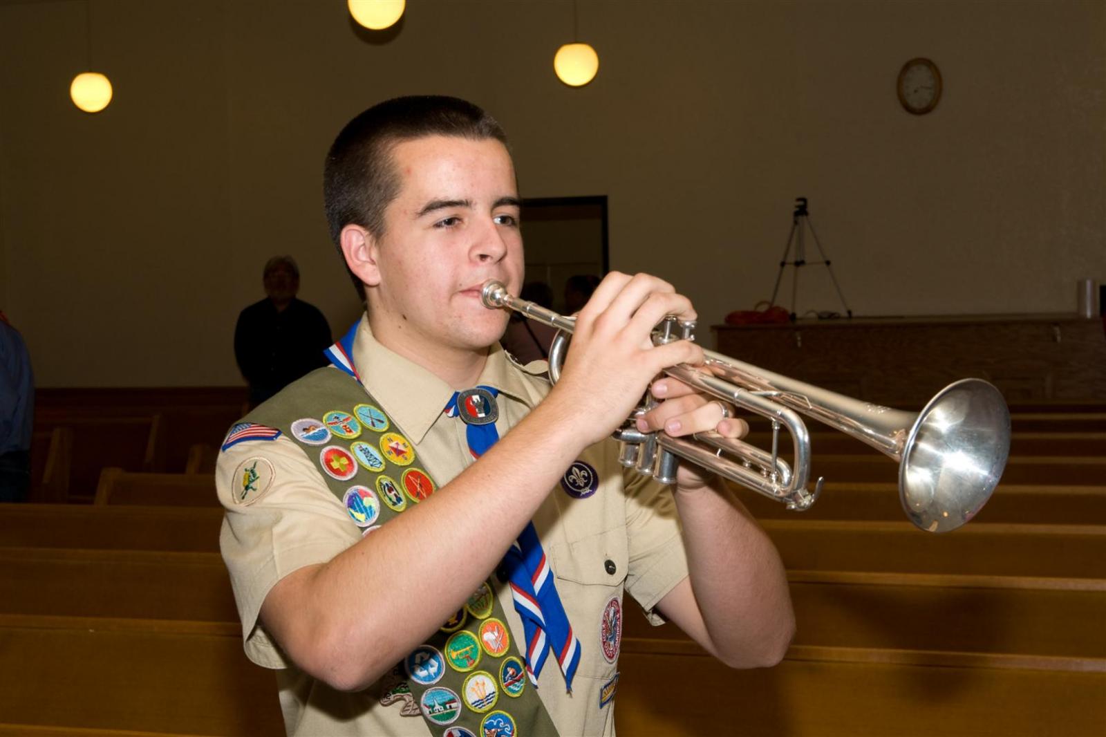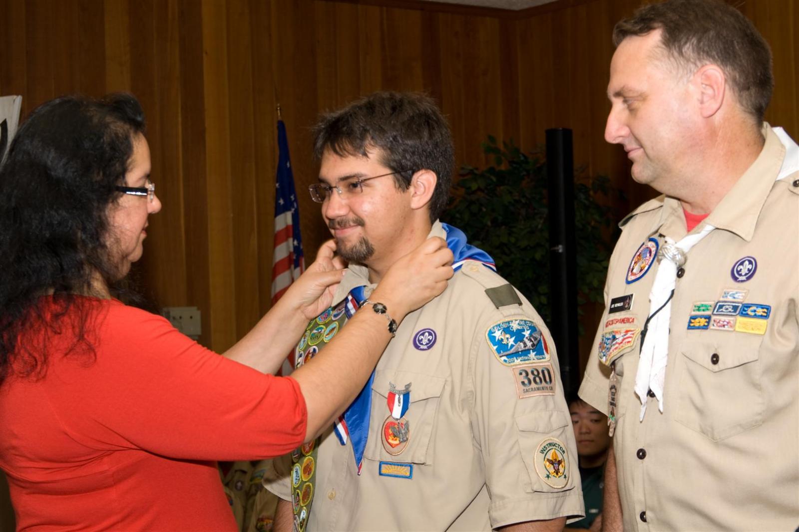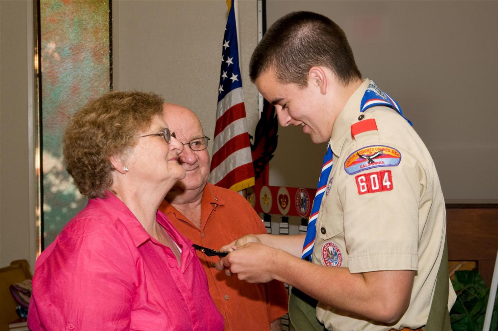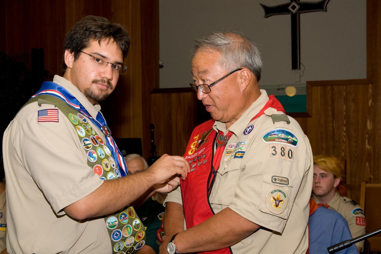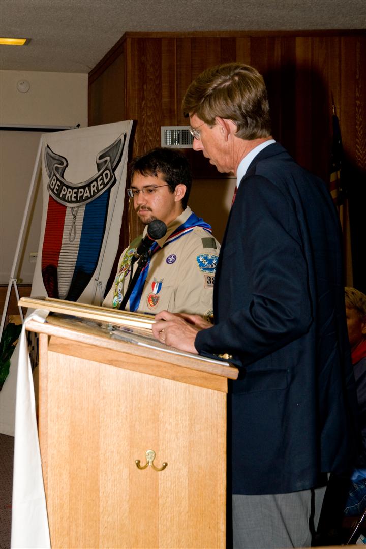 On July 3, 2010, Troop 380 held the Eagle Court of Honor for Corey Reynolds at Emmanuel Baptist Church. At the court of honor Garret R., a cousin of Corey and an Eagle Scout, himself, played trumpet for the opening colors which was followed by a slide show presentation showing some of the major events Corey had participated in. After the slide show was done, previous eagle Scouts were asked to join and form the Eagles’ Nest. The court of honor progressed to the presentation of the Eagle Scout Award to Corey. In addition to being presented the award, Corey and his father both made presentations to people instrumental to Corey earning the award. After the court of honor was concluded, refreshments of cookies, cake, and root beer floats were served. All in all, the evening was happy.