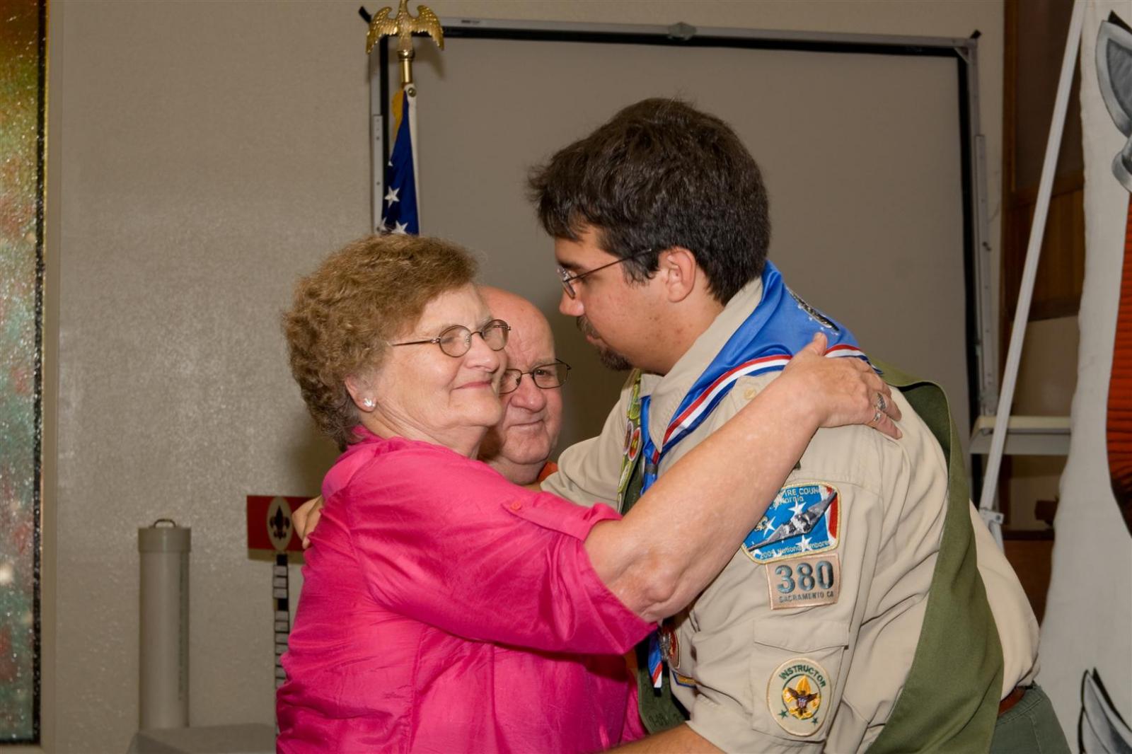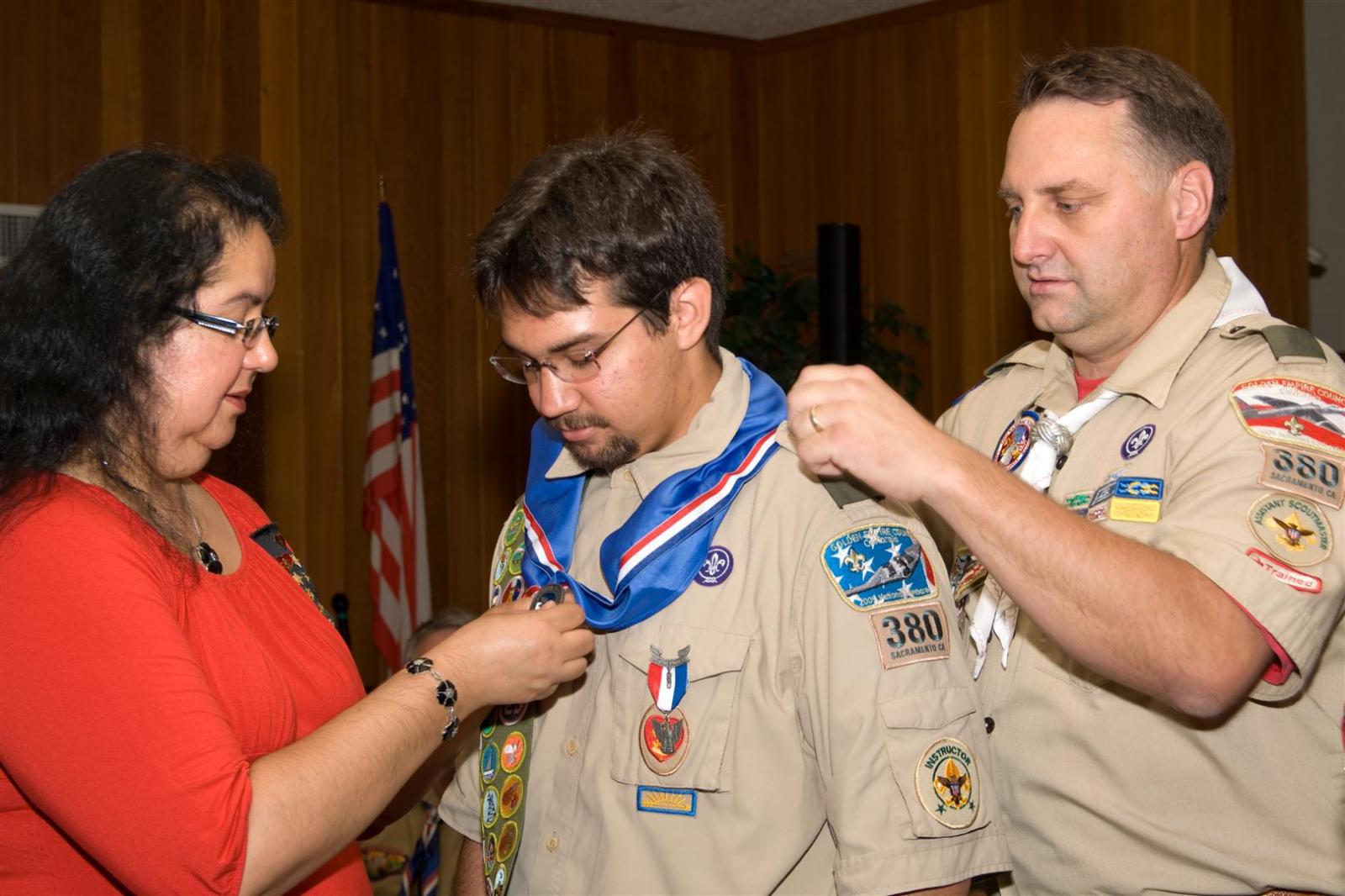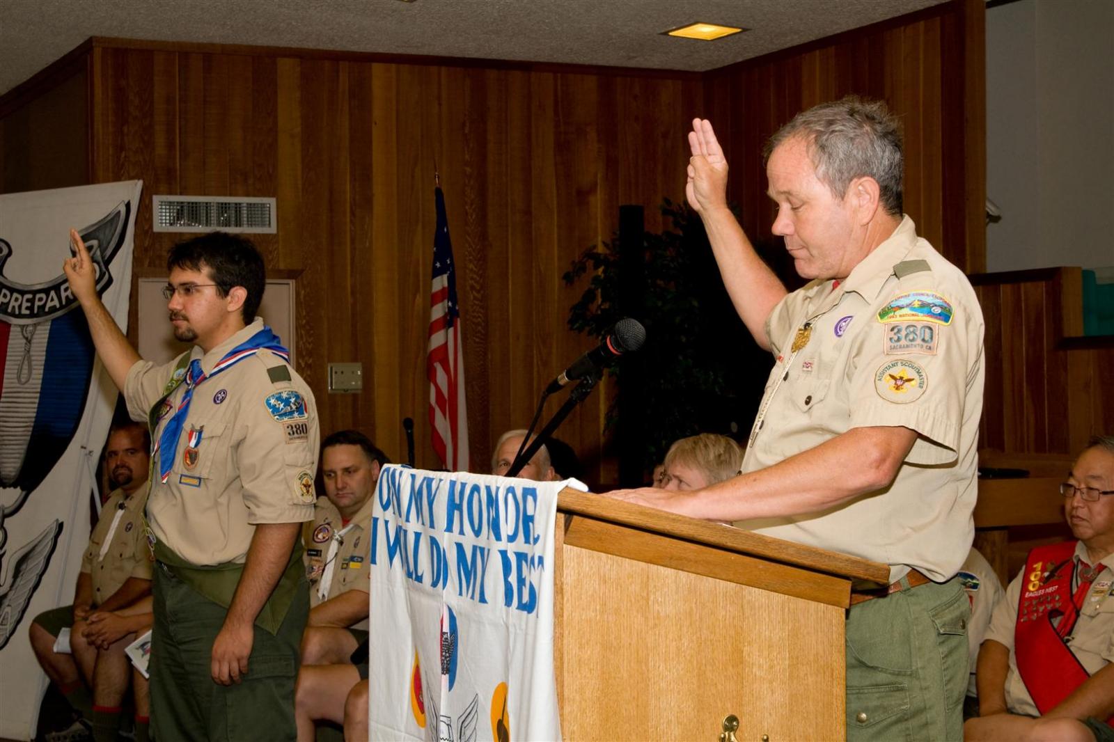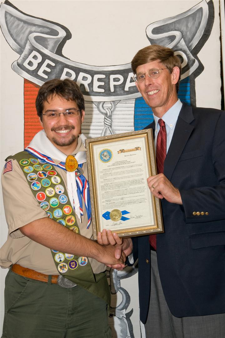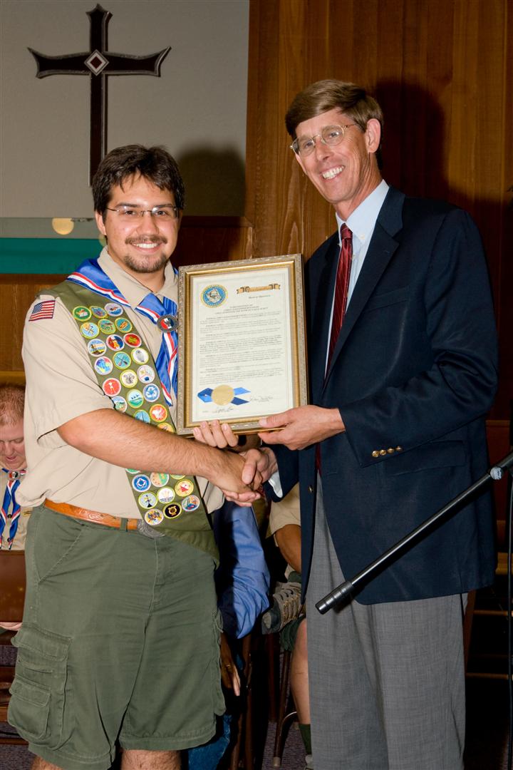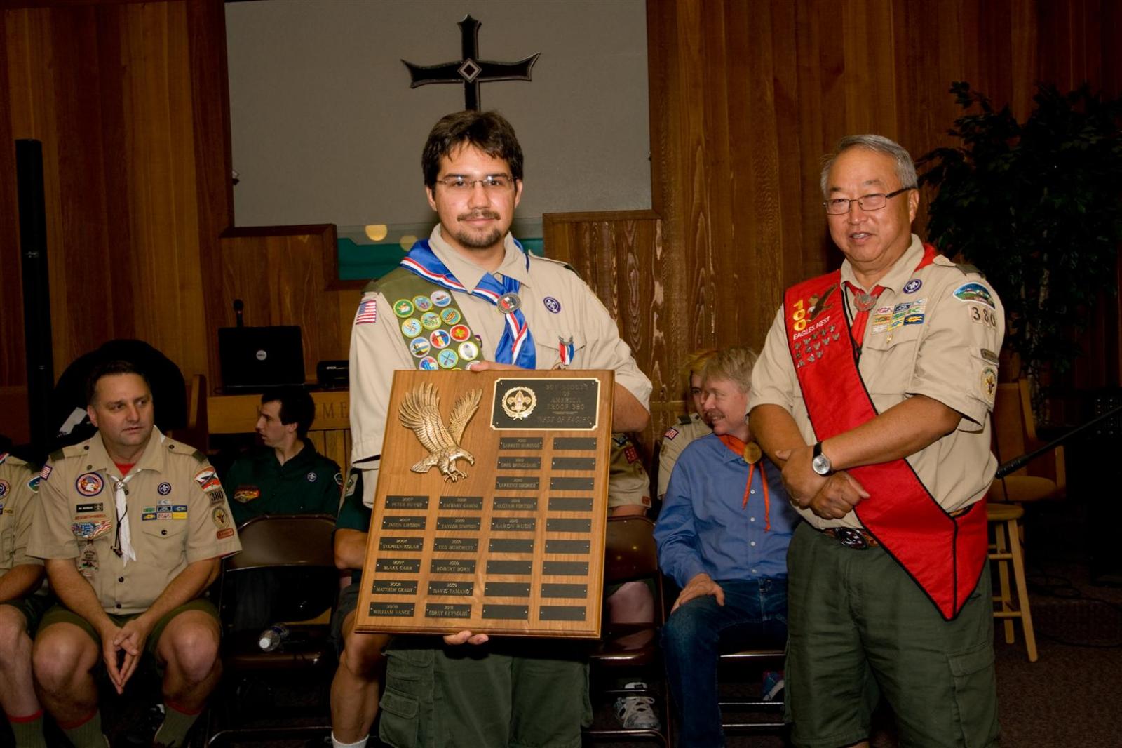 On July 3, 2010, Troop 380 held the Eagle Court of Honor for Corey Reynolds at Emmanuel Baptist Church. At the court of honor Garret R., a cousin of Corey and an Eagle Scout, himself, played trumpet for the opening colors which was followed by a slide show presentation showing some of the major events Corey had participated in. After the slide show was done, previous eagle Scouts were asked to join and form the Eagles’ Nest. The court of honor progressed to the presentation of the Eagle Scout Award to Corey. In addition to being presented the award, Corey and his father both made presentations to people instrumental to Corey earning the award. After the court of honor was concluded, refreshments of cookies, cake, and root beer floats were served. All in all, the evening was happy.