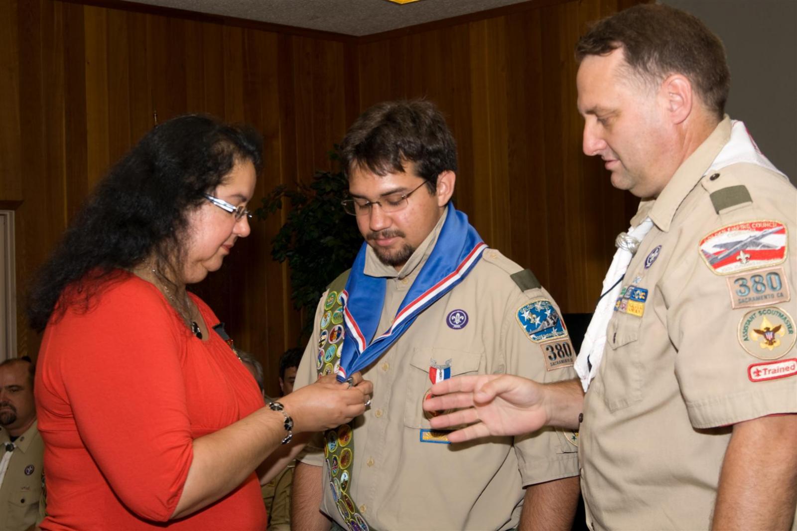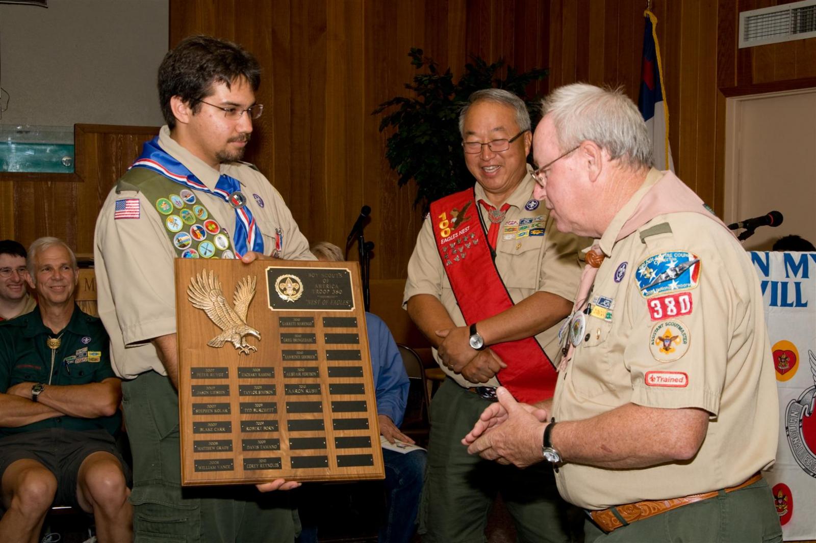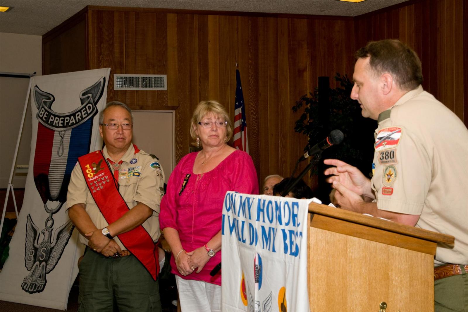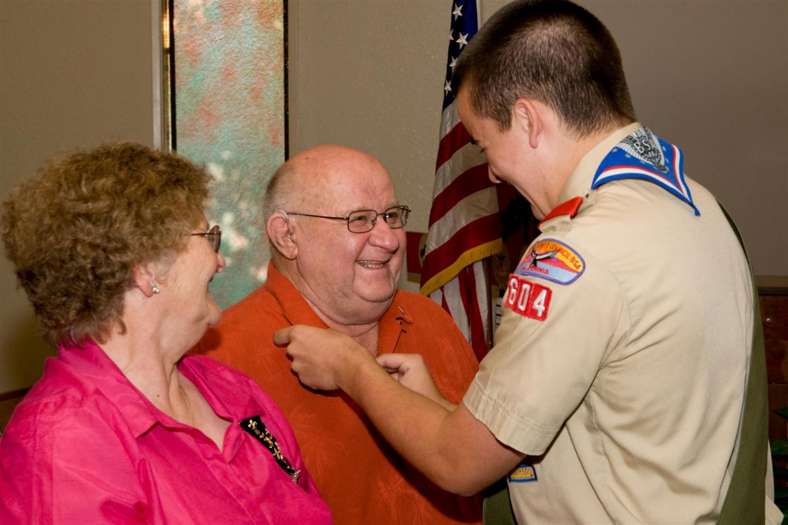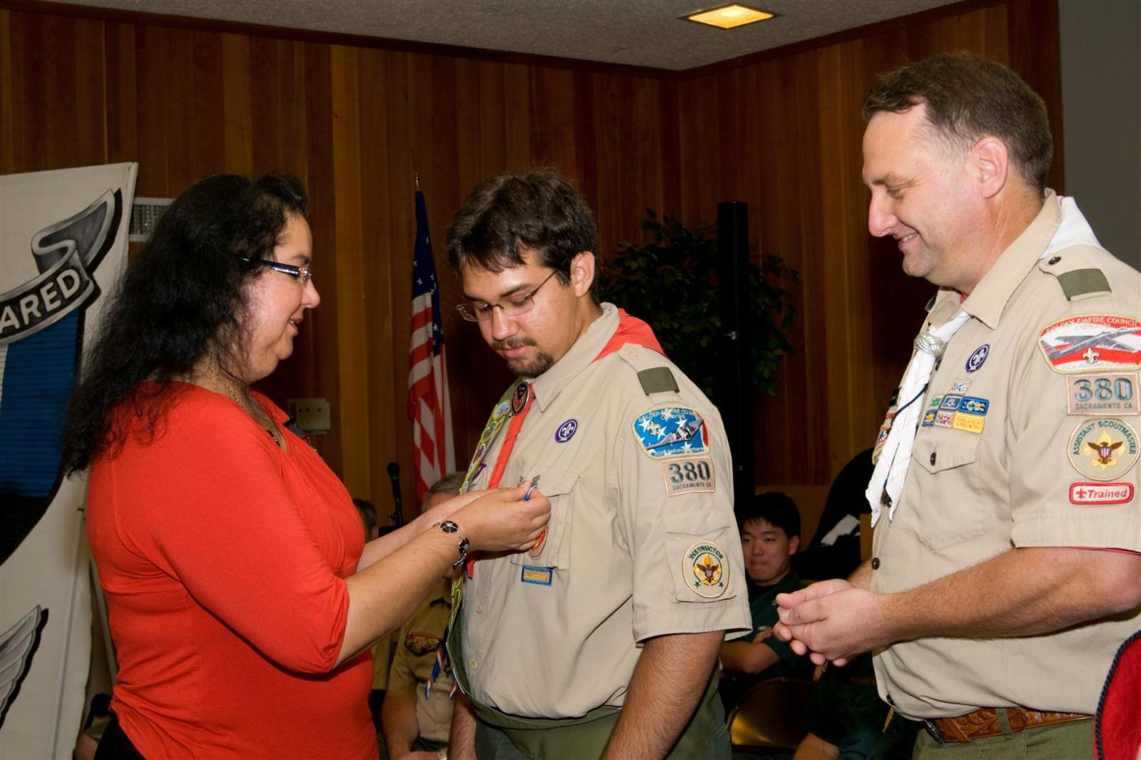 On July 3, 2010, Troop 380 held the Eagle Court of Honor for Corey Reynolds at Emmanuel Baptist Church. At the court of honor Garret R., a cousin of Corey and an Eagle Scout, himself, played trumpet for the opening colors which was followed by a slide show presentation showing some of the major events Corey had participated in. After the slide show was done, previous eagle Scouts were asked to join and form the Eagles’ Nest. The court of honor progressed to the presentation of the Eagle Scout Award to Corey. In addition to being presented the award, Corey and his father both made presentations to people instrumental to Corey earning the award. After the court of honor was concluded, refreshments of cookies, cake, and root beer floats were served. All in all, the evening was happy.