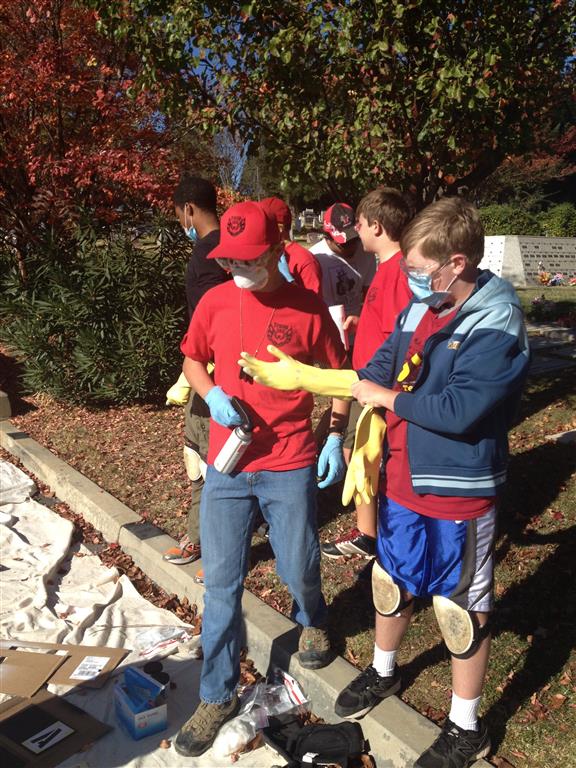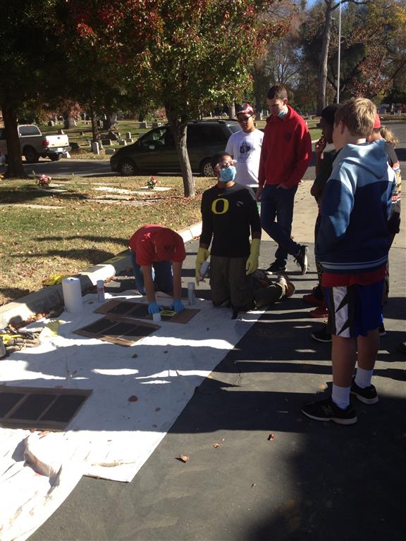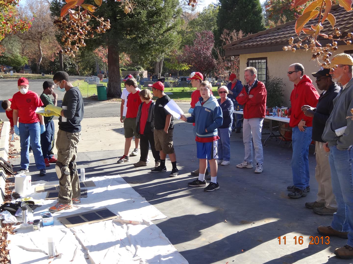 On November 16, 18 scouts and scouters met at the Fair Oaks Cemetery to help with my Eagle Scout Project. The scouts spray painted using stencils and screwed signs onto fences. They were greeted with a small breakfast and with a pizza lunch. The scouts worked from 8 am until 1 pm. It was a great success and a lot of fun. Thank you to all of the scouts who helped me and made this project possible.