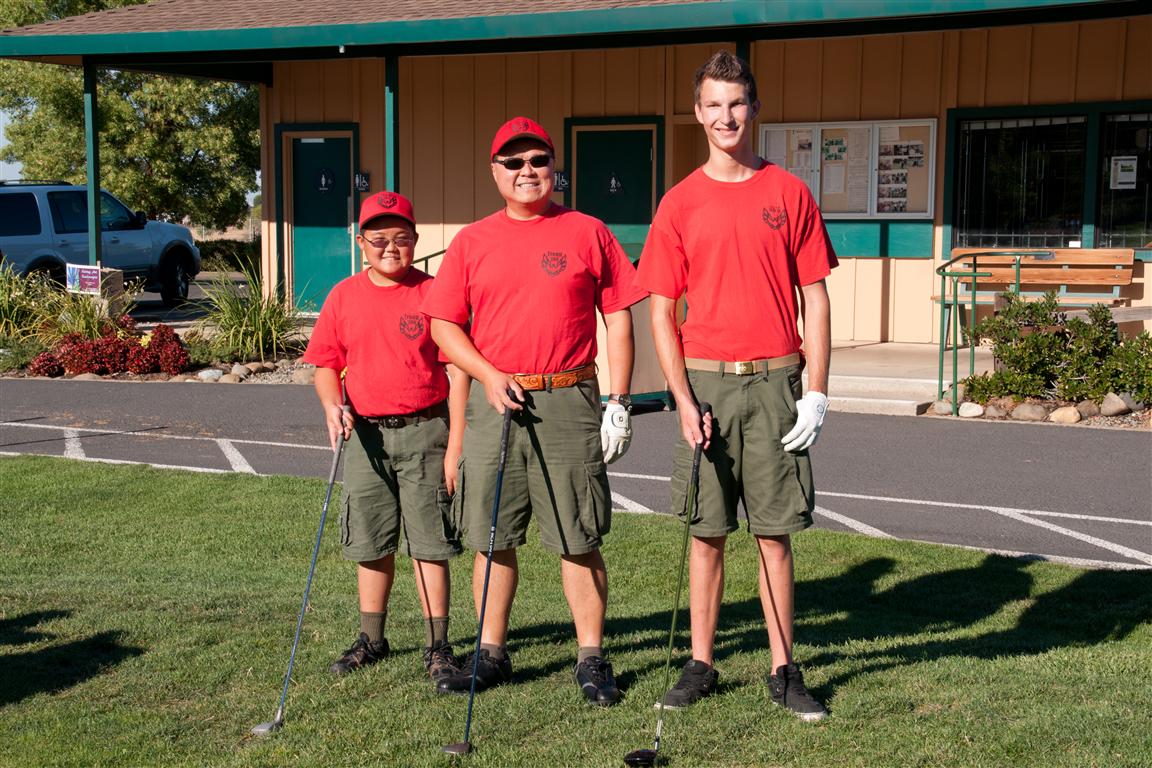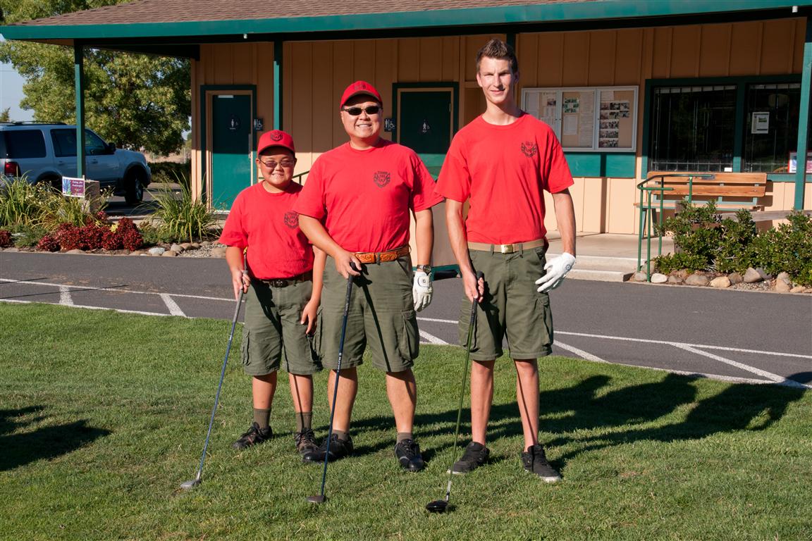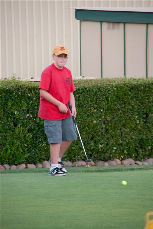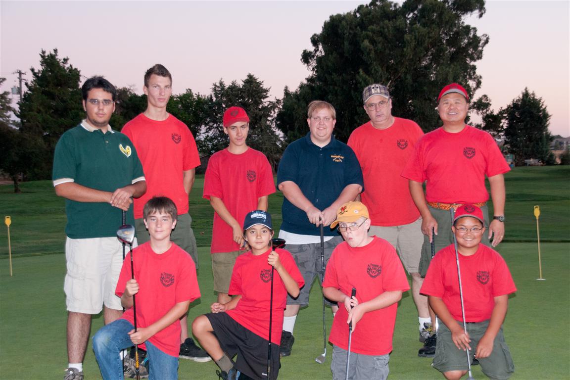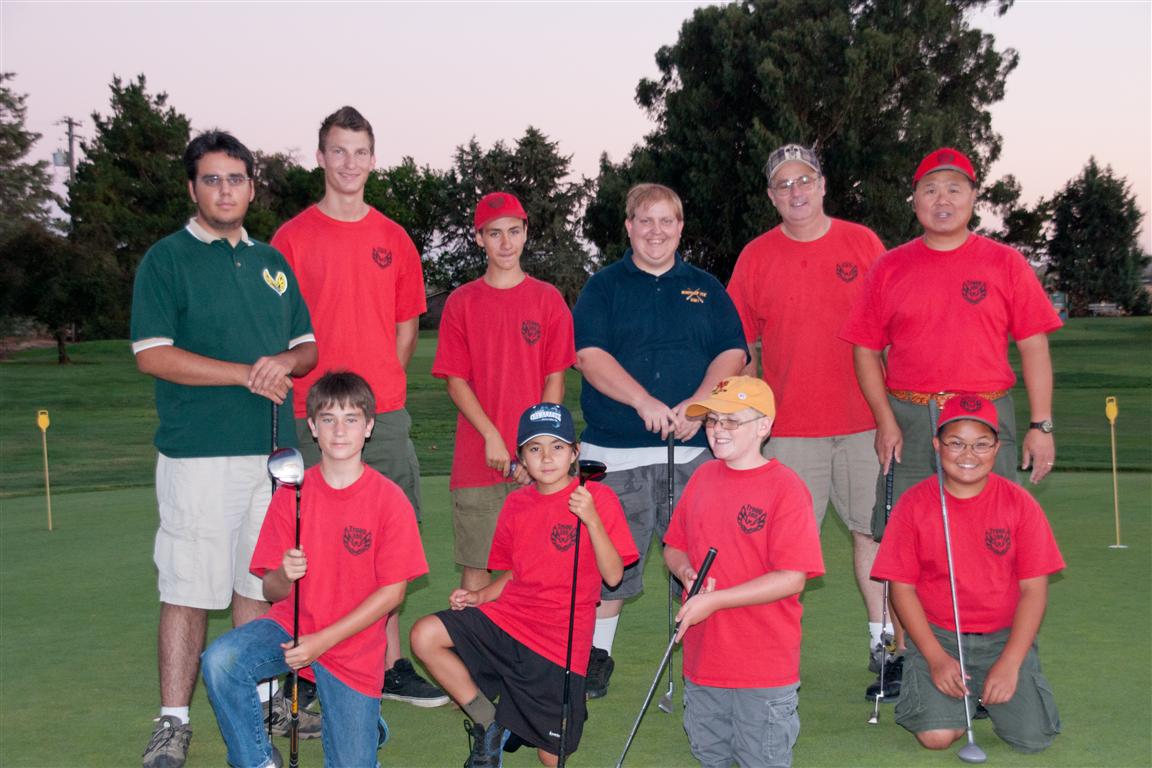 On Wednesday, August 1, thirty-two scouts and scouters arrived at Bradshaw Ranch Golf Course for a night of golfing. Bradshaw Ranch is a nine hole par twenty-seven (you do the math) golf course. Starting tees were issued, a ‘best ball’ format was explained, then everyone was off to their boxes. Congratulations to Frank Shaw for being closest to the pin on Hole 1. Unfortunately, I was not too informative and a scout was not registered at closest. Congratulations go to Alex Mellerski for driving the ball 210 yards on Hole 7 for the longest drive for the day. At the end, the scouts tried their hand at a putting competition. Congratulations to Alden Brock and Wei Hsieh for completing the course with only 13 strokes. Our top team score goes to Team 7, Wei and Brian Hsieh and Charlie Potter with a combined effort of 29. Thanks to Dave, Chris, Charles, and Johnie for cooking hotdogs and serving chips.