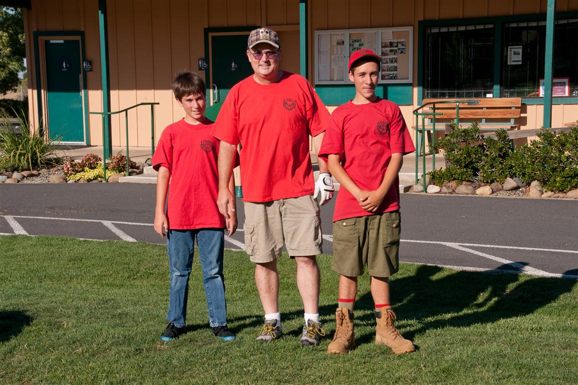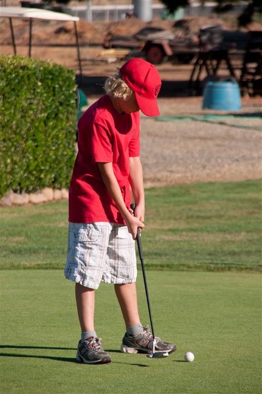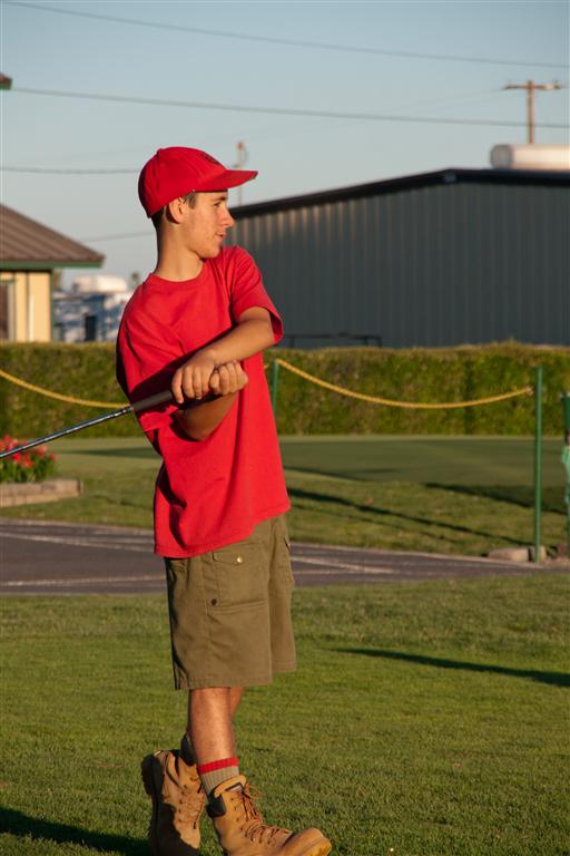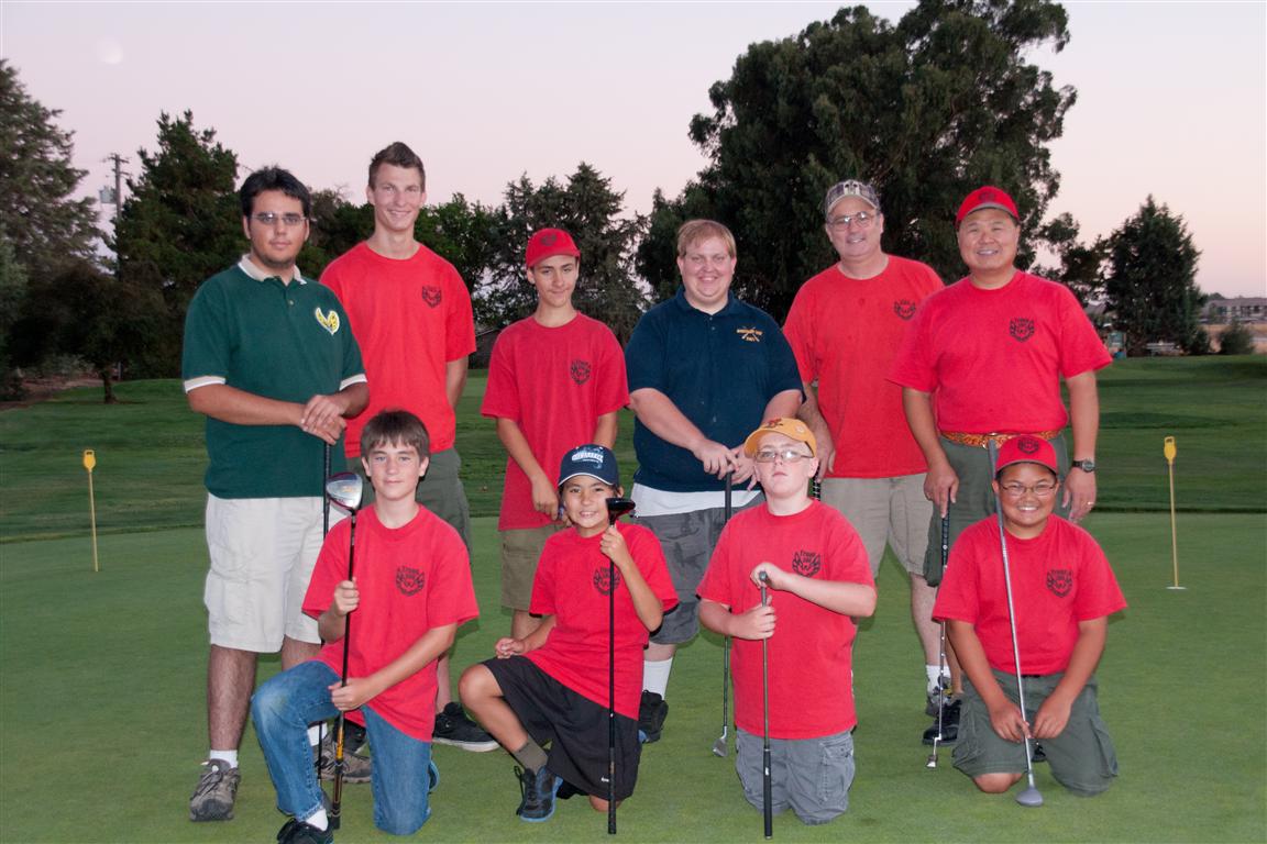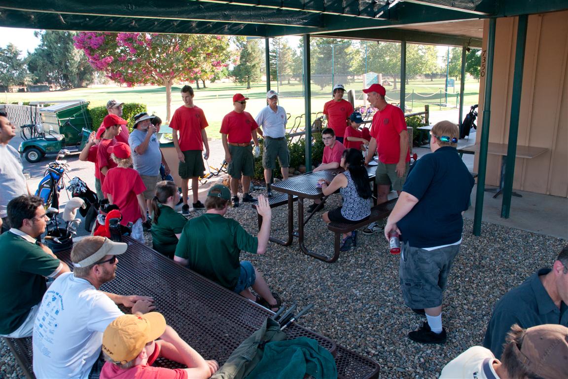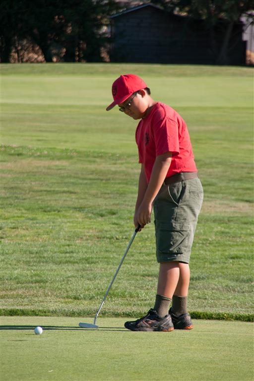 On Wednesday, August 1, thirty-two scouts and scouters arrived at Bradshaw Ranch Golf Course for a night of golfing. Bradshaw Ranch is a nine hole par twenty-seven (you do the math) golf course. Starting tees were issued, a ‘best ball’ format was explained, then everyone was off to their boxes. Congratulations to Frank Shaw for being closest to the pin on Hole 1. Unfortunately, I was not too informative and a scout was not registered at closest. Congratulations go to Alex Mellerski for driving the ball 210 yards on Hole 7 for the longest drive for the day. At the end, the scouts tried their hand at a putting competition. Congratulations to Alden Brock and Wei Hsieh for completing the course with only 13 strokes. Our top team score goes to Team 7, Wei and Brian Hsieh and Charlie Potter with a combined effort of 29. Thanks to Dave, Chris, Charles, and Johnie for cooking hotdogs and serving chips.
