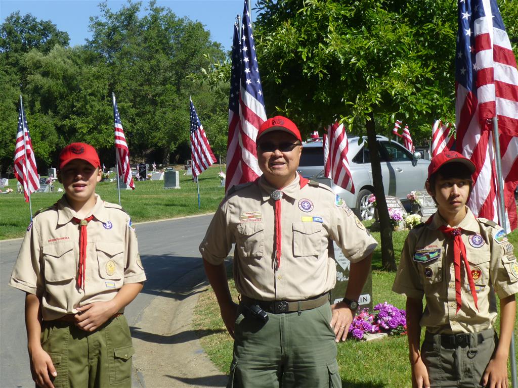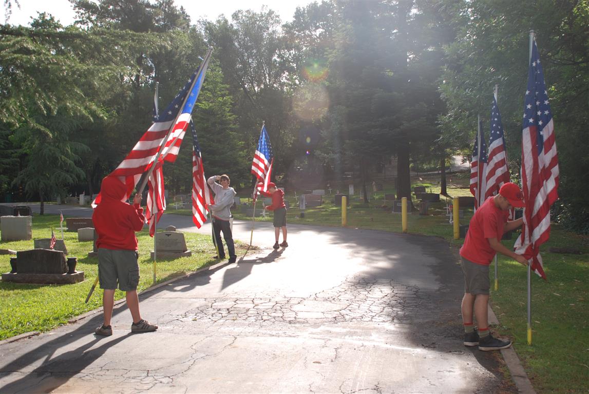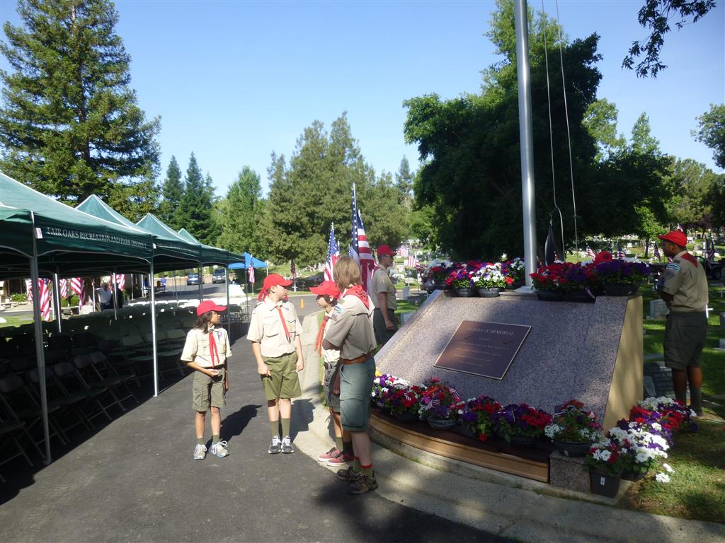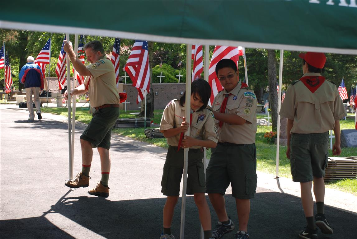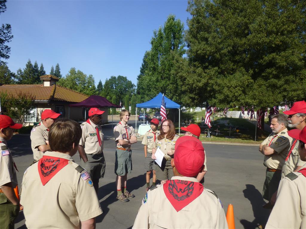 Troop 380 was at the Fair Oaks Cemetery on May 25th and 27th. Troop 380 did the flag ceremony on the morning of May 25th and also directed the parking and handed out programs and afterwards folded chairs and took down the awnings. We helped take down and put up the Avenue of Flags on the 25th afternoon and the morning and afternoon of 27th. There were 35 Scouts and Scouters who helped during the weekend. Troop 380 got lots of compliments from the staff and the people who attended the ceremony. Troop 380 does this annually to remember our fallen hero’s Thank you to everyone who attended and helped with this wonderful event.