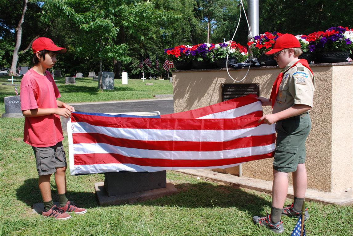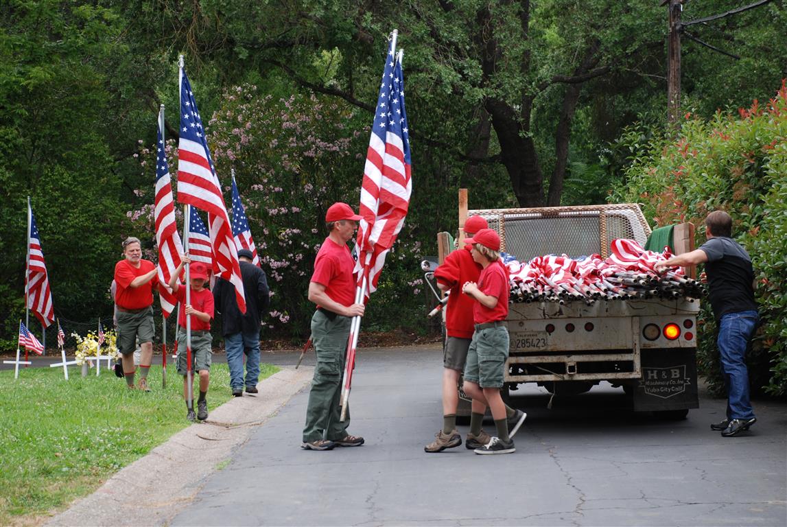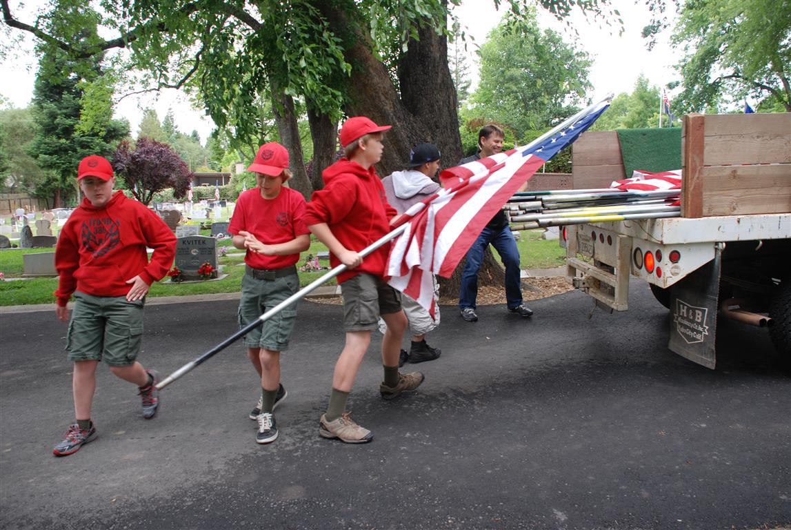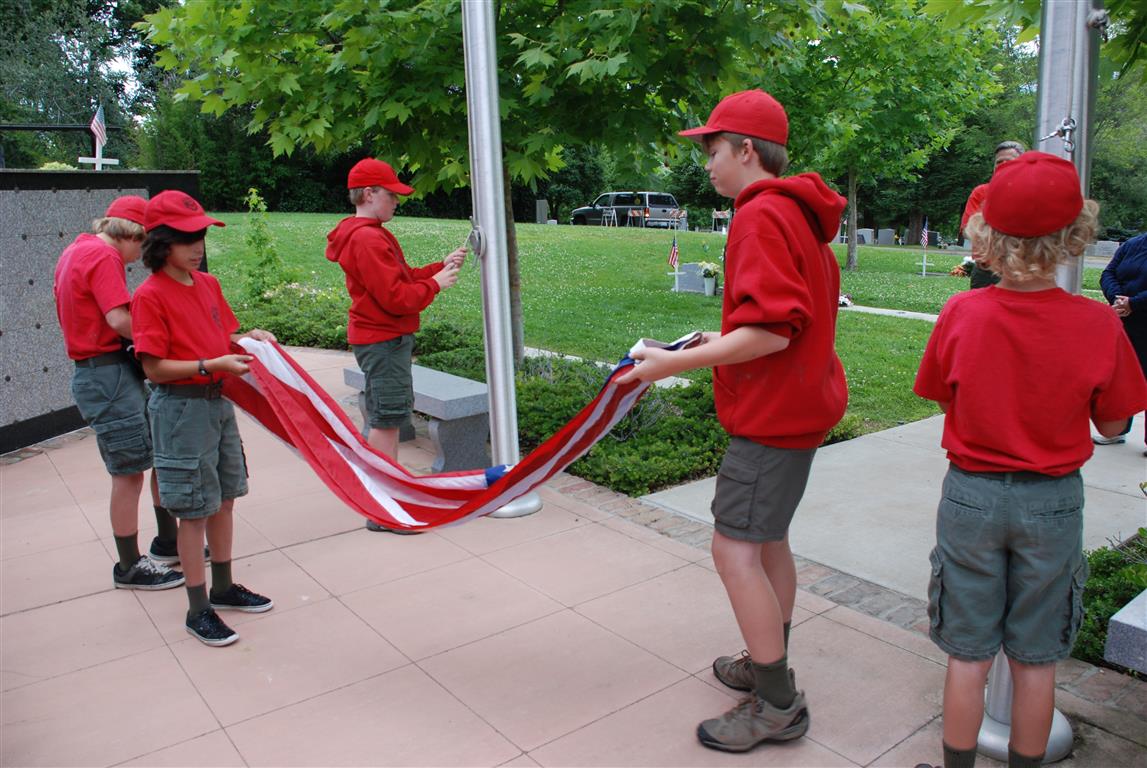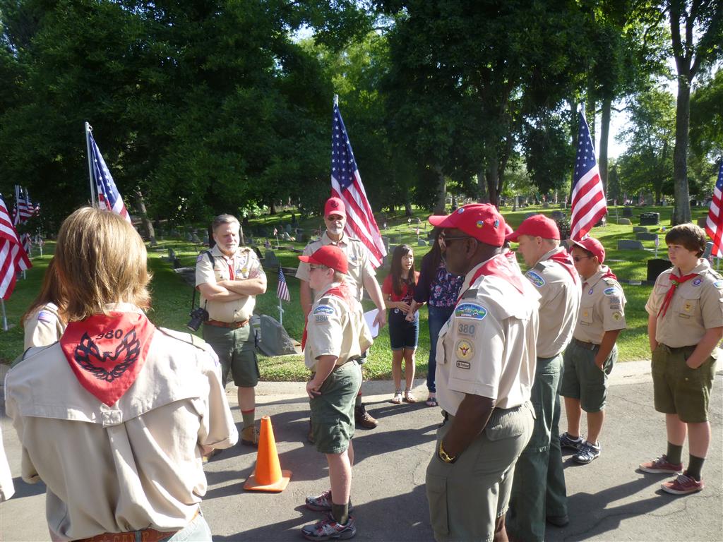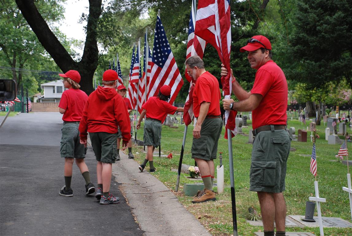 Troop 380 was at the Fair Oaks Cemetery on May 25th and 27th. Troop 380 did the flag ceremony on the morning of May 25th and also directed the parking and handed out programs and afterwards folded chairs and took down the awnings. We helped take down and put up the Avenue of Flags on the 25th afternoon and the morning and afternoon of 27th. There were 35 Scouts and Scouters who helped during the weekend. Troop 380 got lots of compliments from the staff and the people who attended the ceremony. Troop 380 does this annually to remember our fallen hero’s Thank you to everyone who attended and helped with this wonderful event.