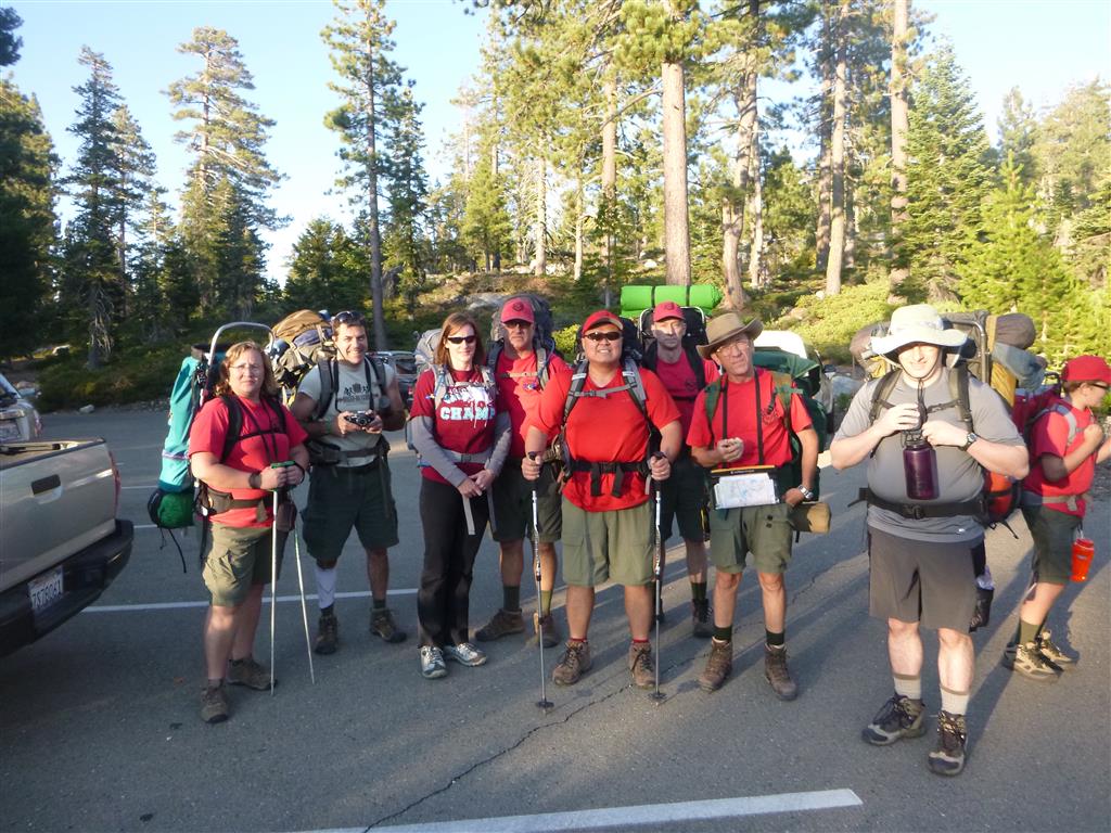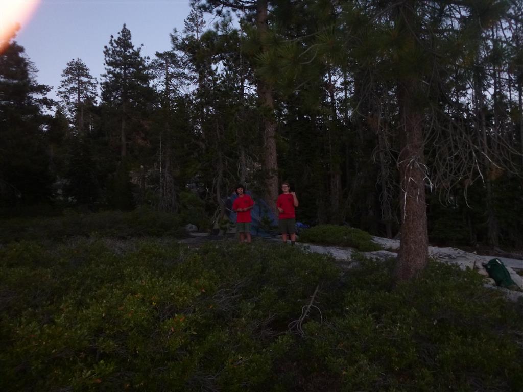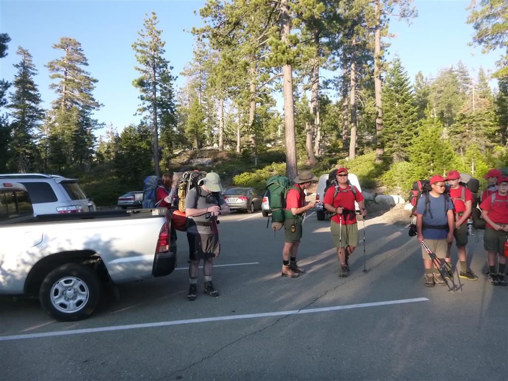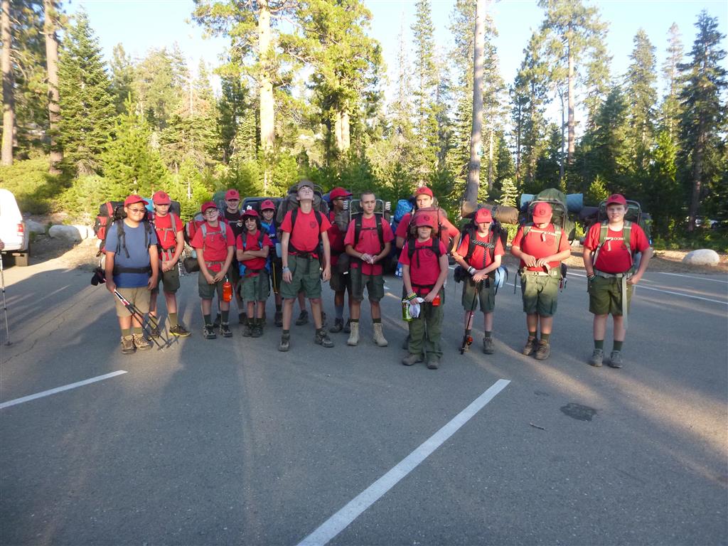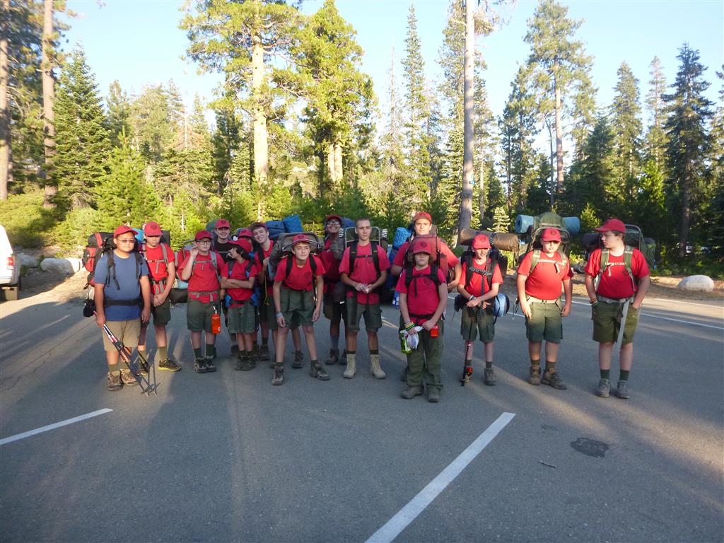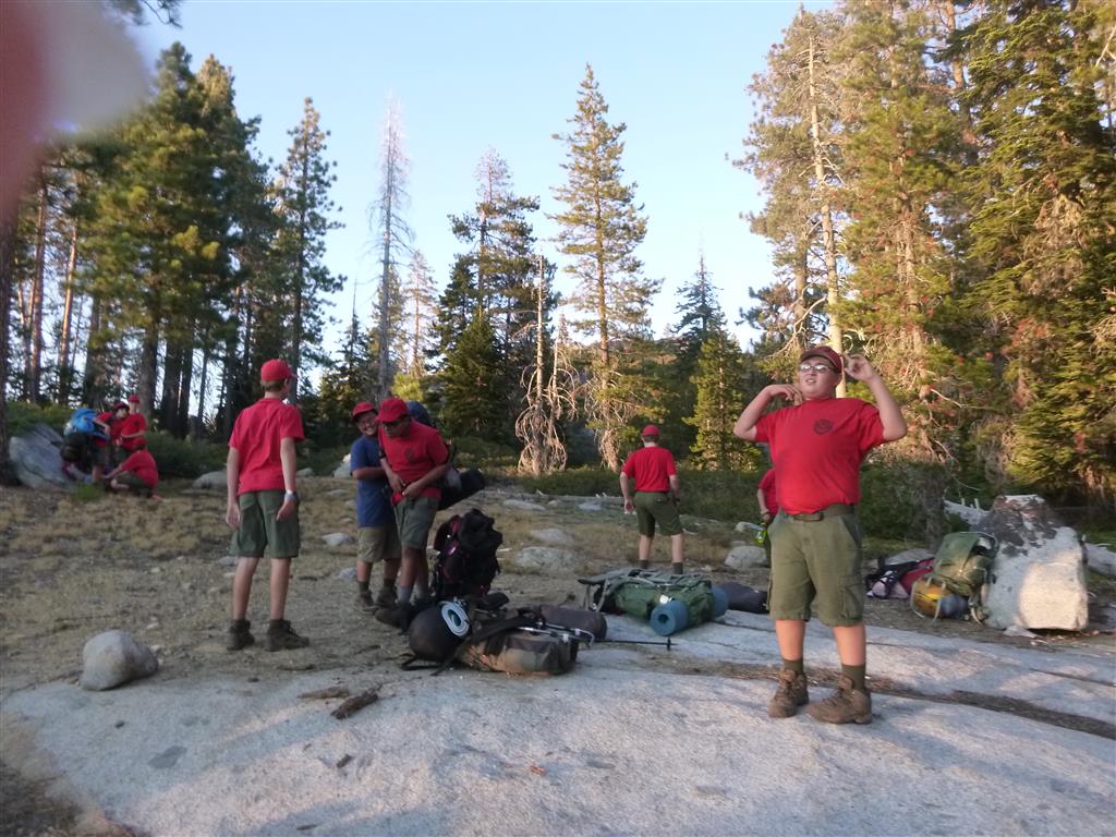 On Friday, August 9th, 16 scouts and 10 adults met at Dave’s house to get everyone situated for the ride to Loon Lake. We got there safely and hiked about a mile in to our campsite and set up tents well before dark. The next morning we packed up and group B set out with 7 scouts and 5 adults, hiking over rough terrain to reach our destination at Rockbound Lake in Desolation Wilderness. Meanwhile, group A, after getting a leisurely start, arrived around 1:30 PM (which is about the same time group B got to our camp) at Lake Winifred at almost 7000 ft. elevation. After setting up camp, some scouts in group B went swimming while others went fishing. Almost everyone enjoyed Mountain House dinners. Group A took a walk around the lake, collecting trash, and including a scramble up and down a rock outcrop with wonderful views down to Rockbound Lake as well as of the whole of Lake Winifred and their campsite. Some scouts slept out under the stars to watch the Perseid Meteor shower in fantastic conditions under the dark and moonless sky. Group B got up at 6:00 AM the next morning and hit the trail by 7:30, commendable speed breaking camp. We met up with group A at 9:00 on Sunday, and hiked with them on the trail back to the parking lot. We got there around noon, and Jon Traum and I held a Scout’s own. After a lot of traffic, we finally made it to the In N’ Out in Placerville for a quick lunch. We then went back to Dave’s house and returned all the gear after drying the tents. Thank you to everyone for making this trip a great one and for practicing the principles of Leave No Trace!