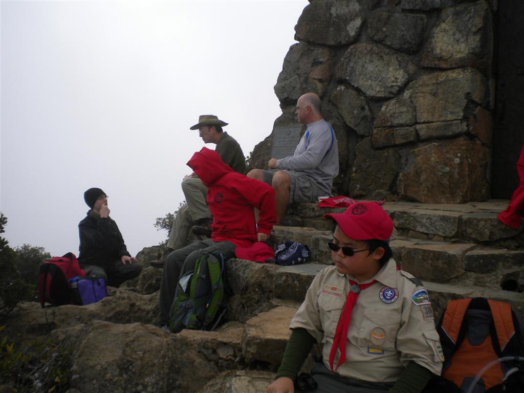 On Sunday, December 18, 2011, several Scouts and Scout leaders completed the Mt. Tamalpais Rim of the Bay hike. We started the hike near the Cushing Memorial Amphitheatre. Built by the Civilian Conservation Corps in the 1930s, this natural stone amphitheater seats 3,500 people and features the Mountain Play produced every Spring for almost 100 years. We headed on to the West Point Inn where we took some pictures and rested. There are no military cadets there. The name comes from the fact that it was built at the Mt. Tamalpais Scenic Railroad’s western most point. Near the summit, we visited the Gravity Car Barn, a museum dedicated to the Mt. Tamalpais Scenic Railroad, also called the “Crookedist Railroad in the World,” with 281 turns and curves and 8.19 miles of track. Finally, at the summit we ate lunch with a spectacular view of fog and the occasional passing cloud. You can see the photos from our trip on the Troop 380 website. I’d like to thank all of the adult leaders who drove and Matthew Brown who filled in at the last minute as the scout leader.