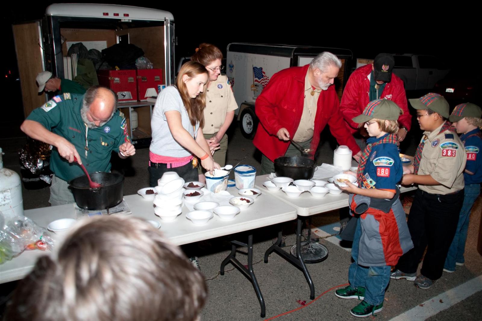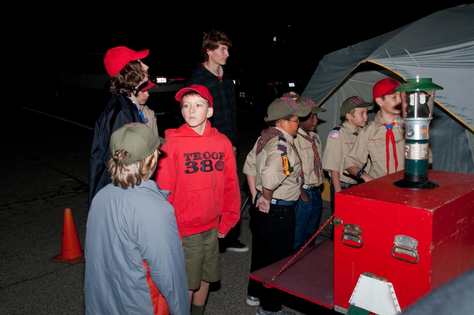 On November 8th we hosted our troop Open House. We invited Webelos from local packs and sent out fliers to the nearby schools. We had twenty one families stop in to check us out. I want to thank all the adults who stepped up and helped the Scouts run their stations, who drove trailers so we could show off our stuff and to everyone who helped put on a great open house.