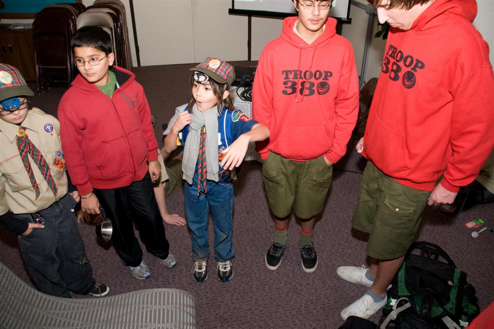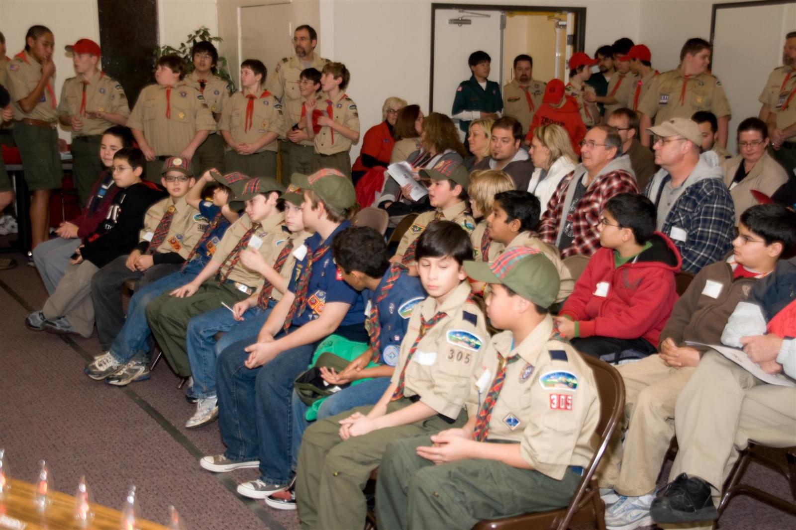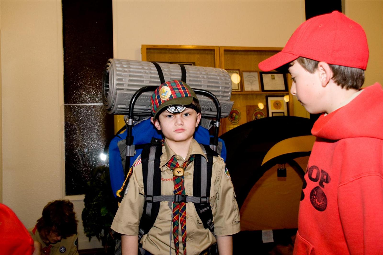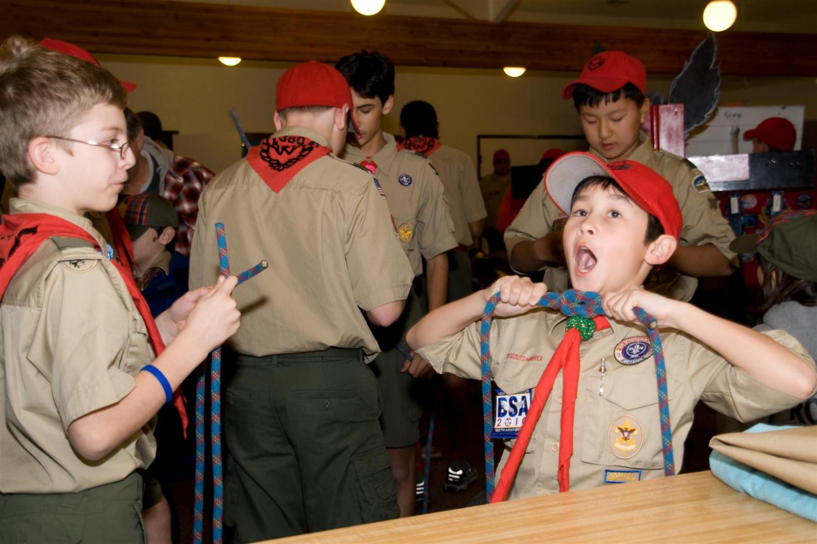 The Webelos Open House was held at the church on January 11. The troop was asked to be there at 6:00 to 6:30 pm. There were displays set up in the chapel and the Cub Scouts were greeted by greeters and shown some new knots. The meeting started at 7:00, and we carried on with flags and upcoming events like a regular meeting. We then showed a slide show of our previous campouts to the Webelos and their parents, and afterwards, the parents were sent into the chapel to discuss details while the Webelos stayed with us to do the program. We had 6 different stations for the Webelos to check out. There were 4 groups of Cub Scouts, each led by a leader. We did rotations every 10 minutes or so. The six areas were first aid, uniform, Dutch-oven cooking, car lot, gear and knots. After we finished with program, we had all of the Scouts go and get a quick bite to eat then we circled up. By now, the parents were coming back from the chapel. We did a closing circle like we would in a regular meeting, thanked the Webelos for coming, sang Scout Vespers, and cleaned up and went home around 8:45 p.m.