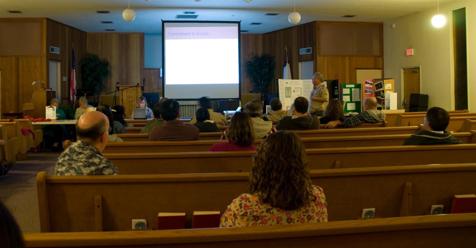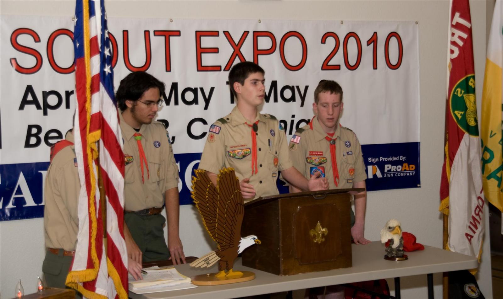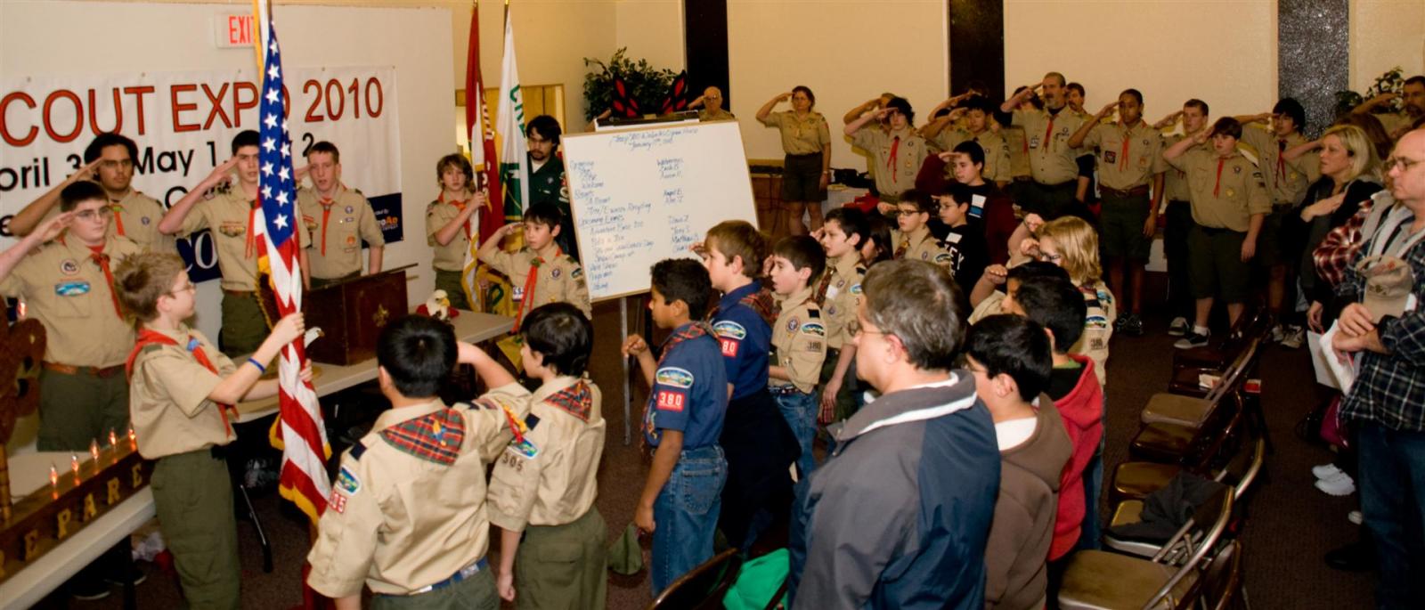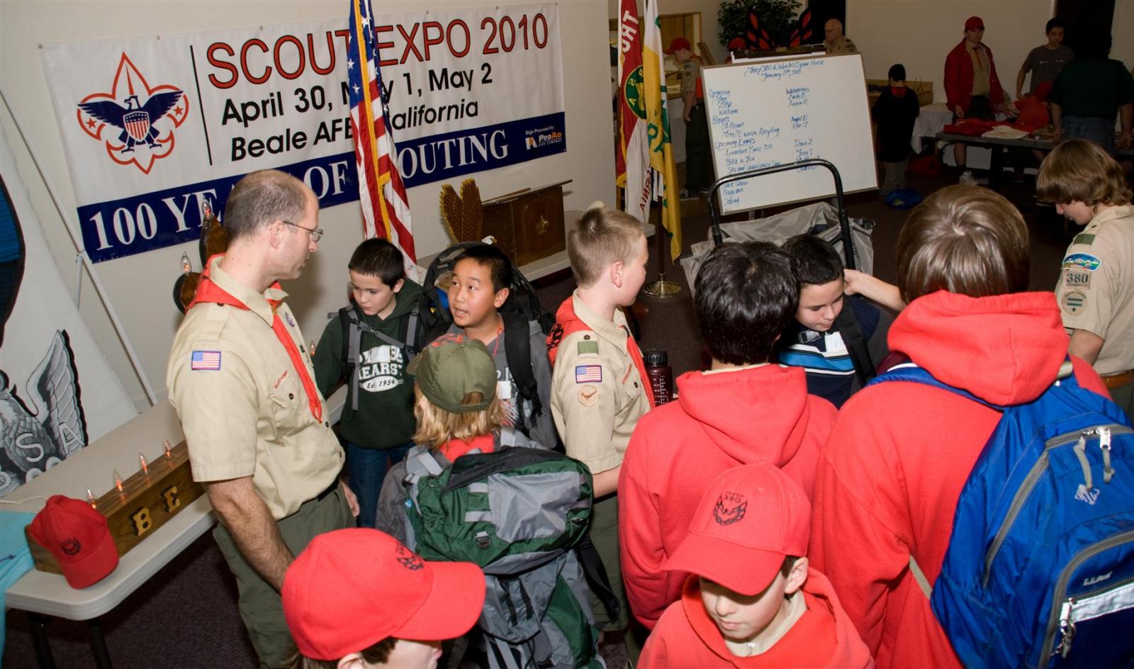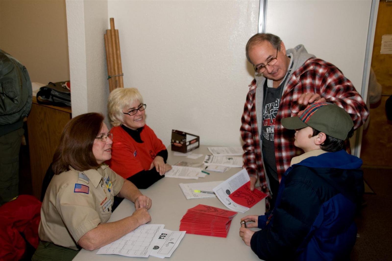 The Webelos Open House was held at the church on January 11. The troop was asked to be there at 6:00 to 6:30 pm. There were displays set up in the chapel and the Cub Scouts were greeted by greeters and shown some new knots. The meeting started at 7:00, and we carried on with flags and upcoming events like a regular meeting. We then showed a slide show of our previous campouts to the Webelos and their parents, and afterwards, the parents were sent into the chapel to discuss details while the Webelos stayed with us to do the program. We had 6 different stations for the Webelos to check out. There were 4 groups of Cub Scouts, each led by a leader. We did rotations every 10 minutes or so. The six areas were first aid, uniform, Dutch-oven cooking, car lot, gear and knots. After we finished with program, we had all of the Scouts go and get a quick bite to eat then we circled up. By now, the parents were coming back from the chapel. We did a closing circle like we would in a regular meeting, thanked the Webelos for coming, sang Scout Vespers, and cleaned up and went home around 8:45 p.m.