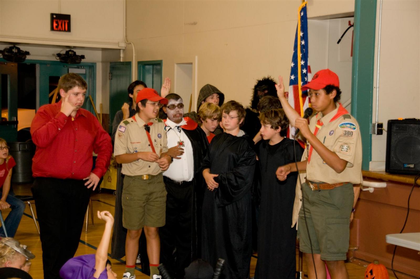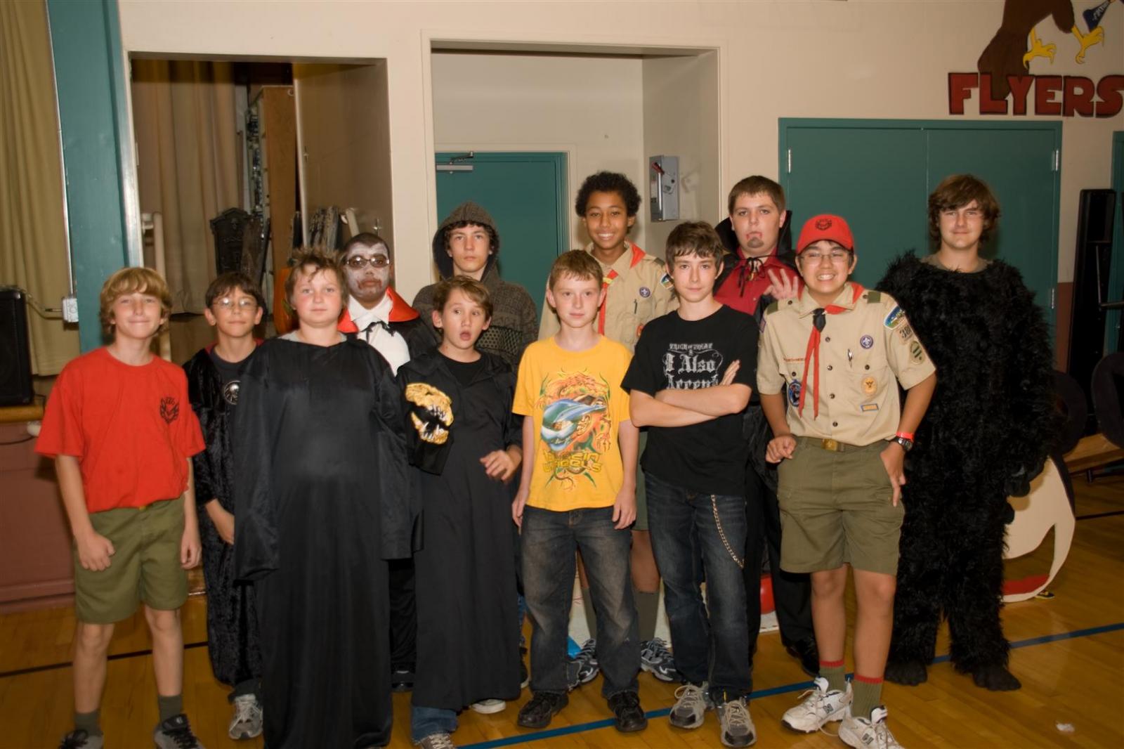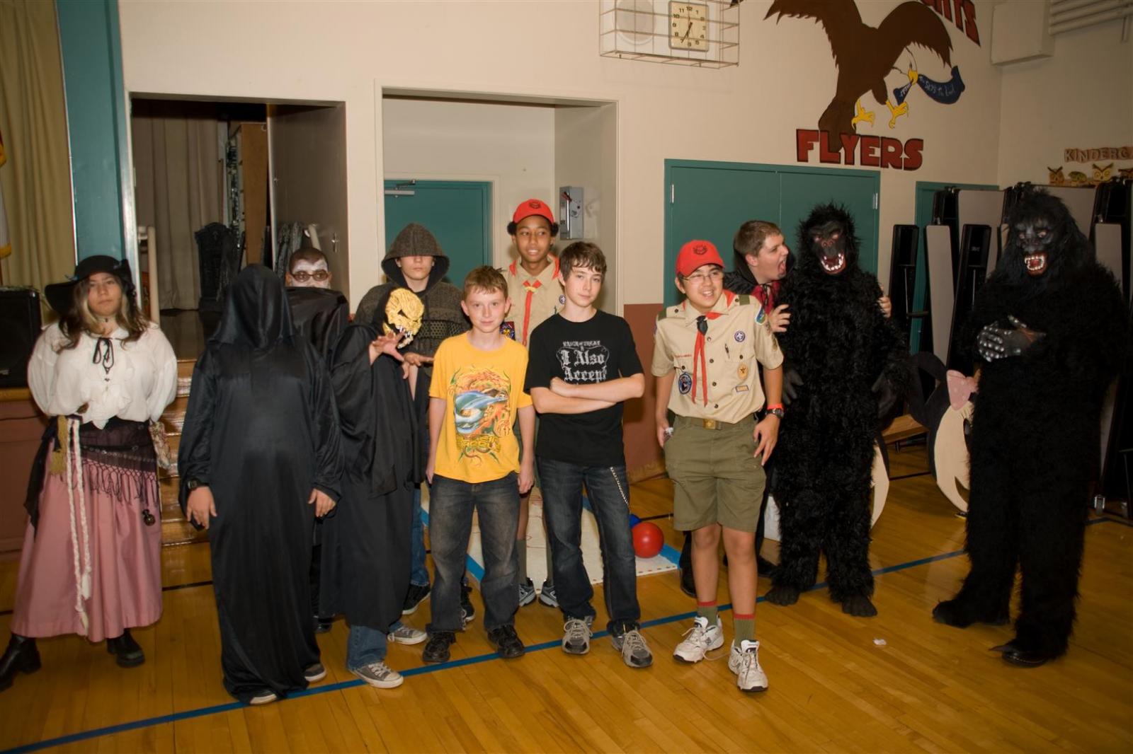 Troop 380 hosted a haunted house for Packs 380 and 808 on October 16, 2009. The 12 Scouts in attendance wore their spookiest costumes, helped with the games and provided the scare factor for the haunted house. From the looks on the faces of the Cub scouts, their siblings and friends, it appears to have been a great success. Thanks to Mark Woosley for building the haunted house complete with scary surprises.