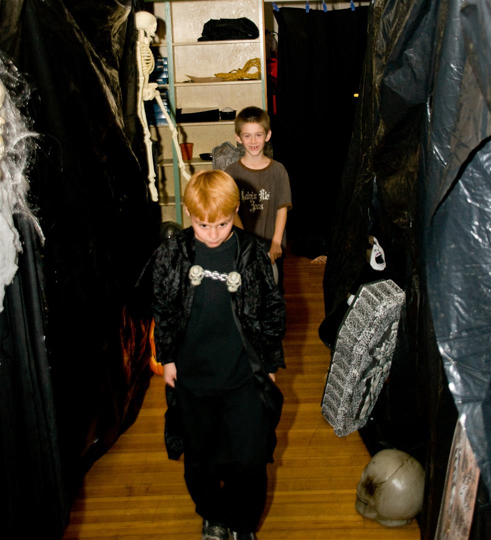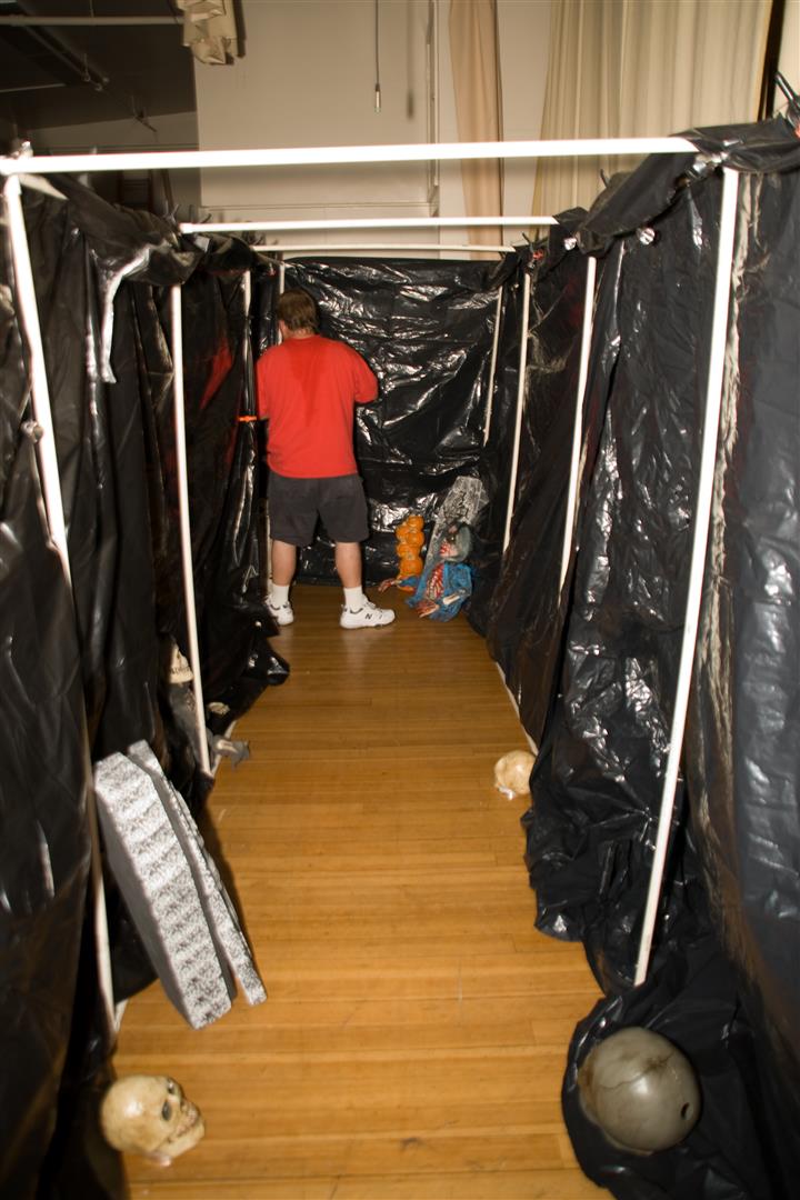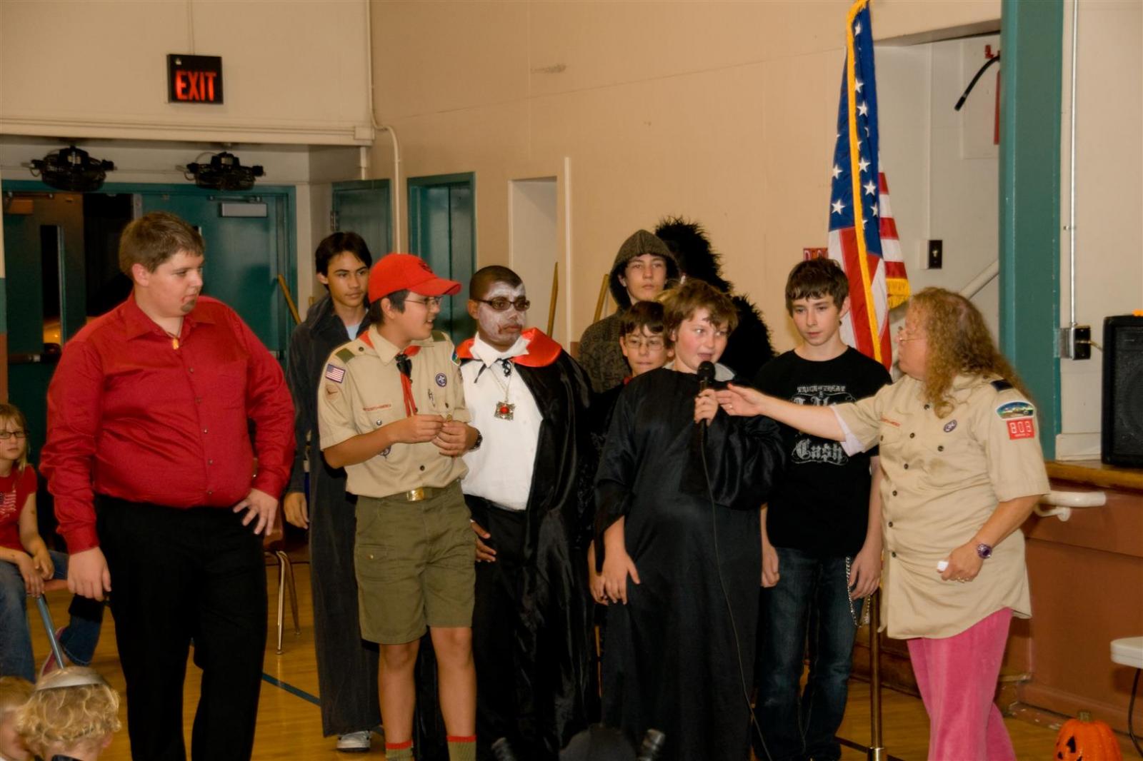Troop 380 hosted a haunted house for Packs 380 and 808 on October 16, 2009. The 12 Scouts in attendance wore their spookiest costumes, helped with the games and provided the scare factor for the haunted house. From the looks on the faces of the Cub scouts, their siblings and friends, it appears to have been a great success. Thanks to Mark Woosley for building the haunted house complete with scary surprises.