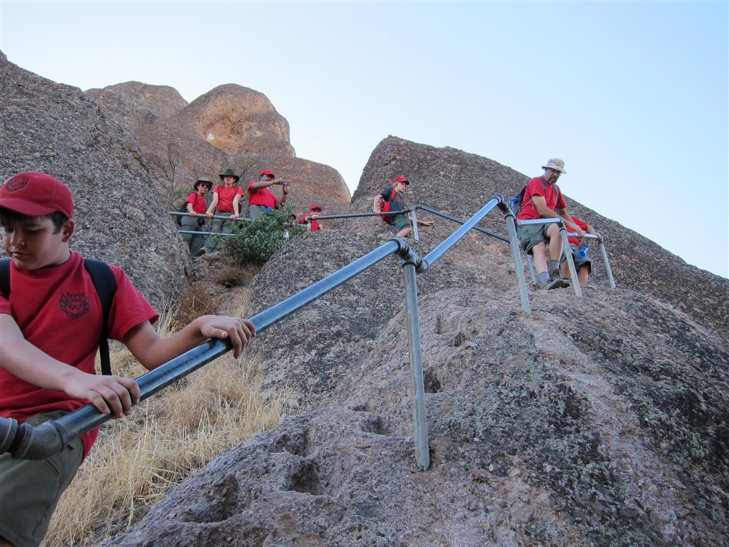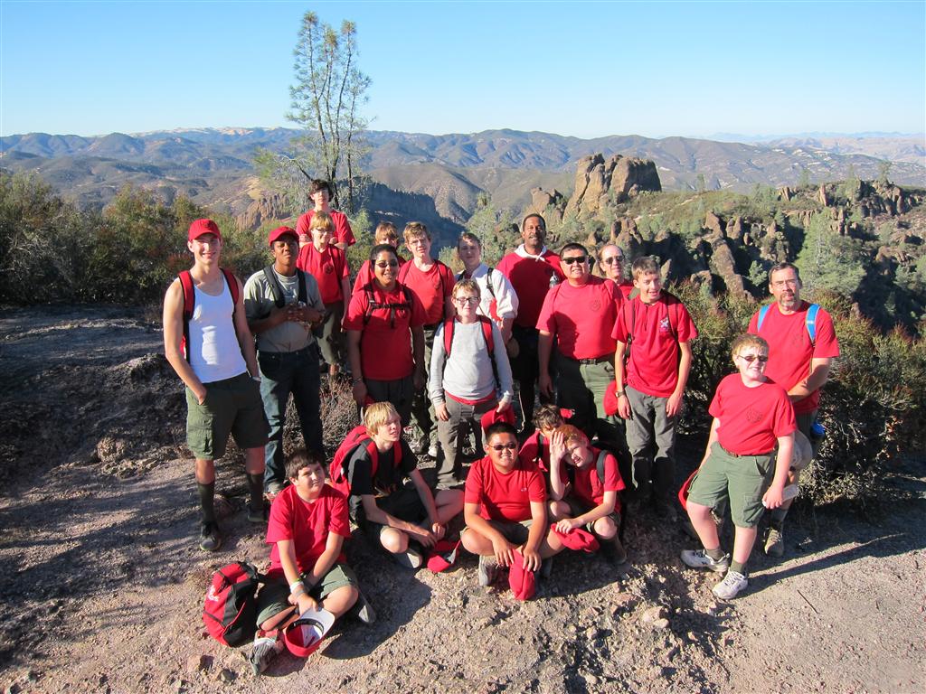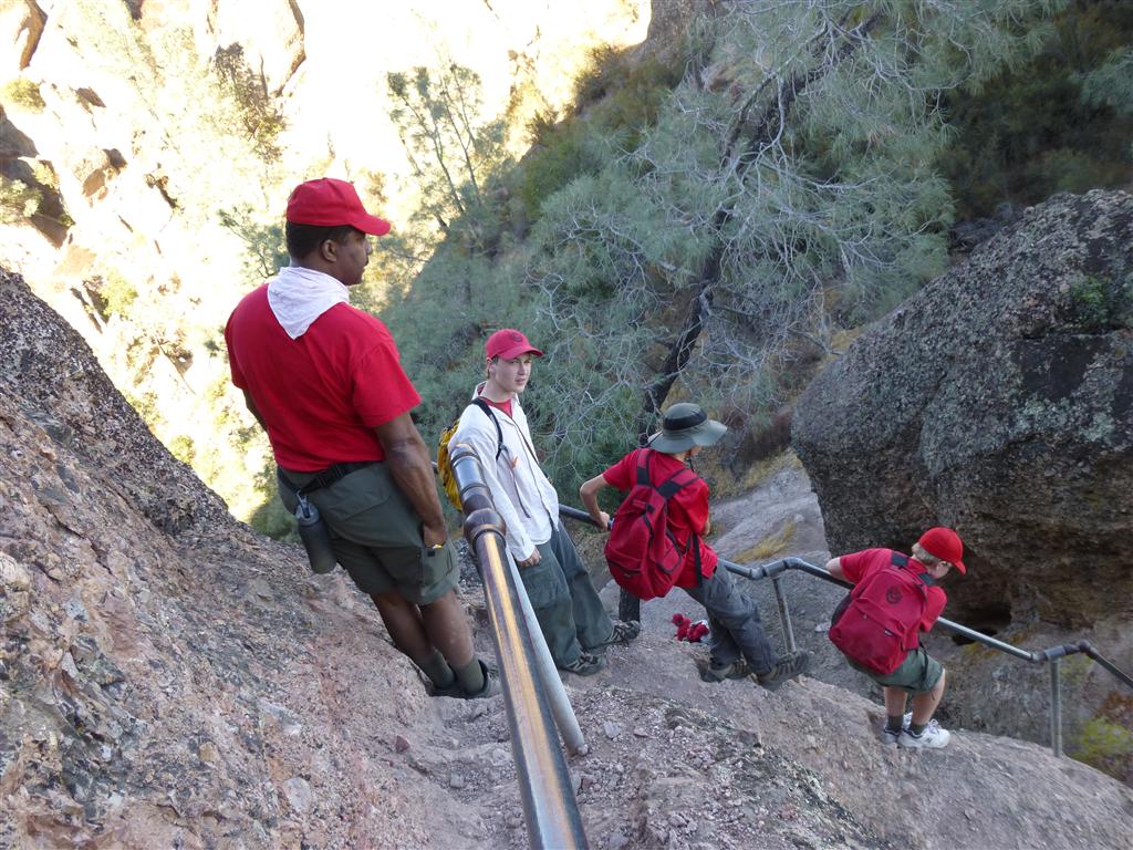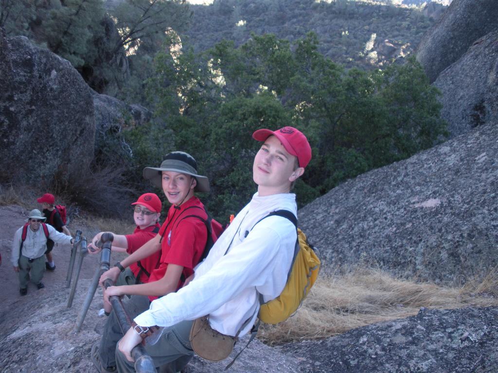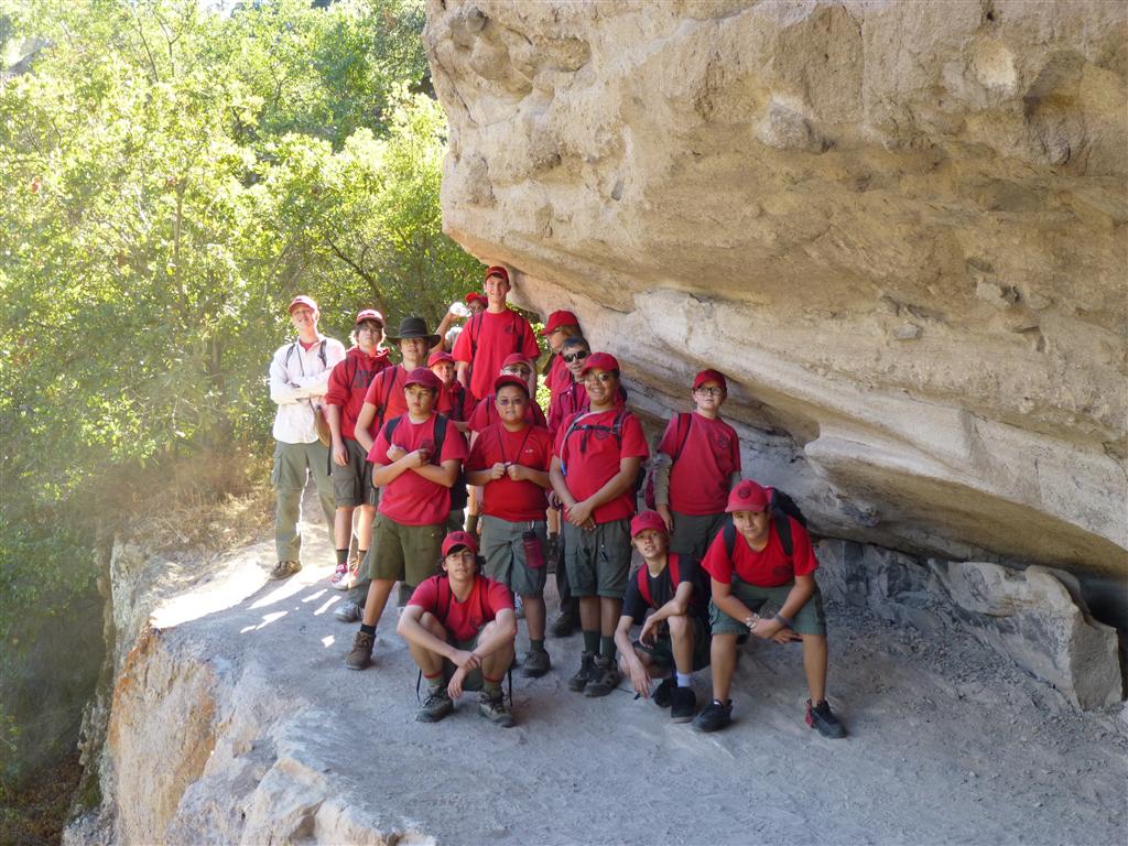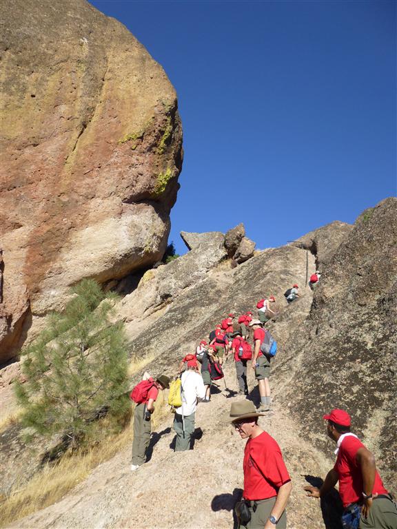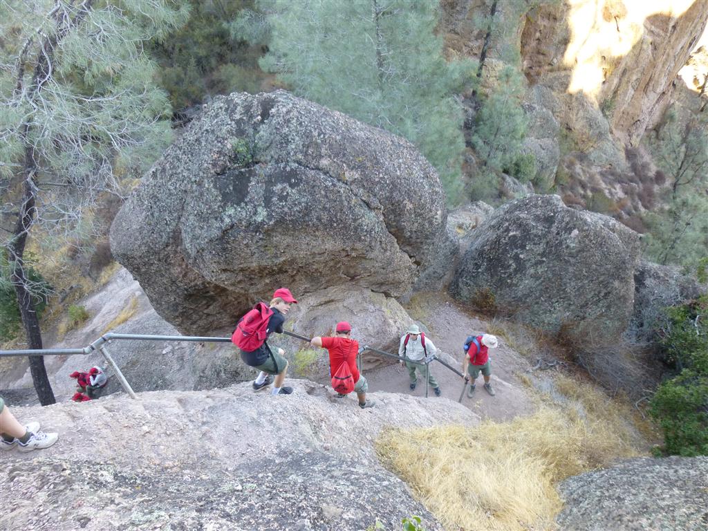 After spending the weekend in Monterey Bay, on Veterans Day, 16 scouts and 5 adults drove to Pinnacles National Monument and completed a 6.1 mile rim of the bay hike. We started in the Bear Gulch parking lot, hiked through the caves (thanks for the flashlight Evan!) and took a breather at the Bear Gulch reservoir. We then hiked uphill to the rim portion of the trail and then back down for an early dinner of sandwiches and chips. We saw no condors, but our resident geologist Ben Heningburg pointed out various rock, ash and mud formations along the way. A thanks goes out to Adam Boles our scout leader and the other adult leaders who helped make this hike happen.