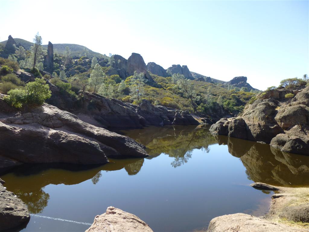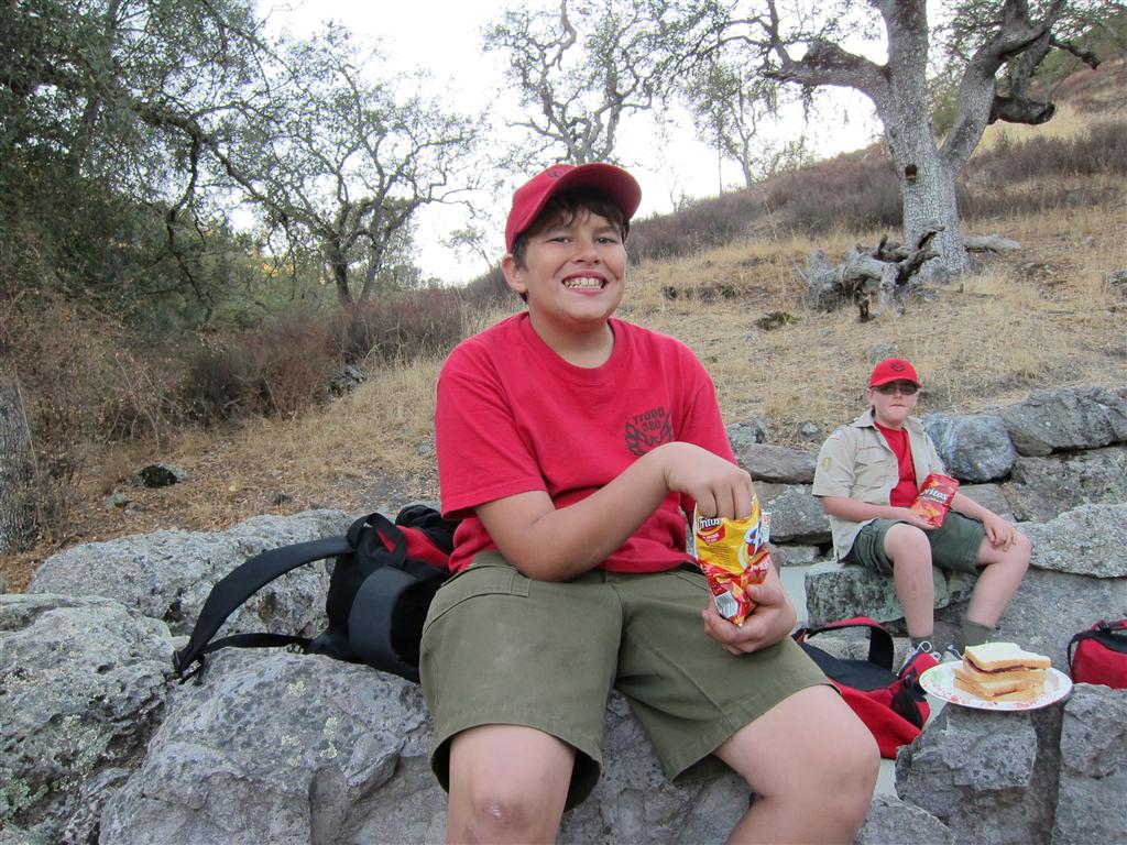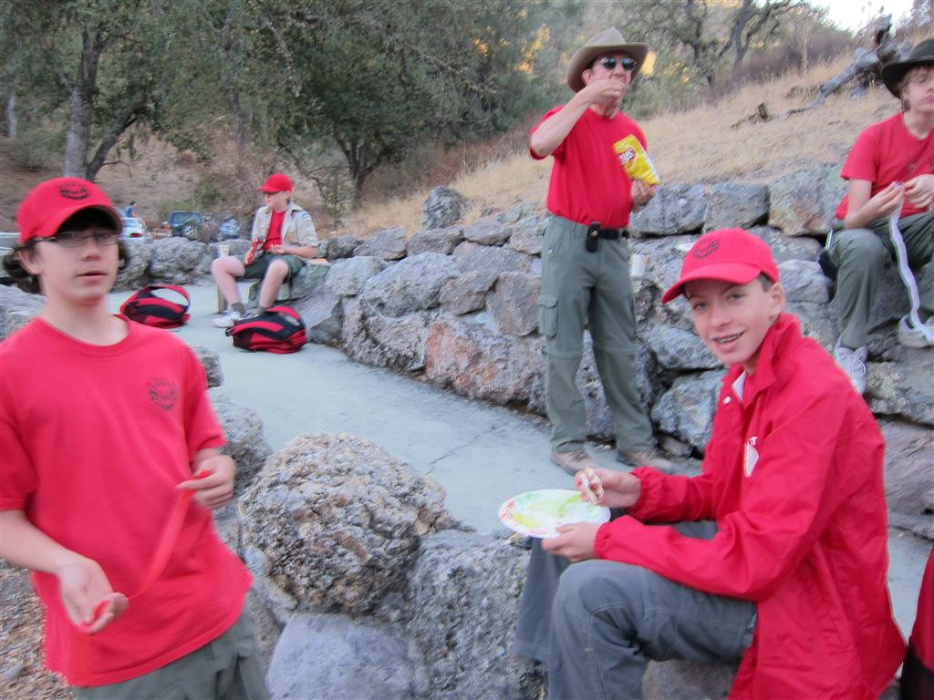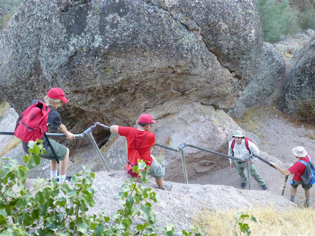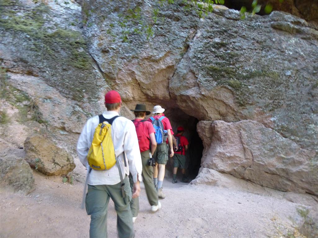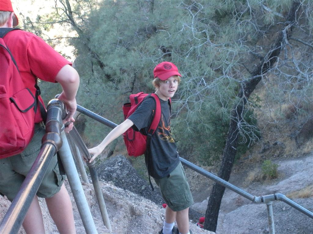 After spending the weekend in Monterey Bay, on Veterans Day, 16 scouts and 5 adults drove to Pinnacles National Monument and completed a 6.1 mile rim of the bay hike. We started in the Bear Gulch parking lot, hiked through the caves (thanks for the flashlight Evan!) and took a breather at the Bear Gulch reservoir. We then hiked uphill to the rim portion of the trail and then back down for an early dinner of sandwiches and chips. We saw no condors, but our resident geologist Ben Heningburg pointed out various rock, ash and mud formations along the way. A thanks goes out to Adam Boles our scout leader and the other adult leaders who helped make this hike happen.
