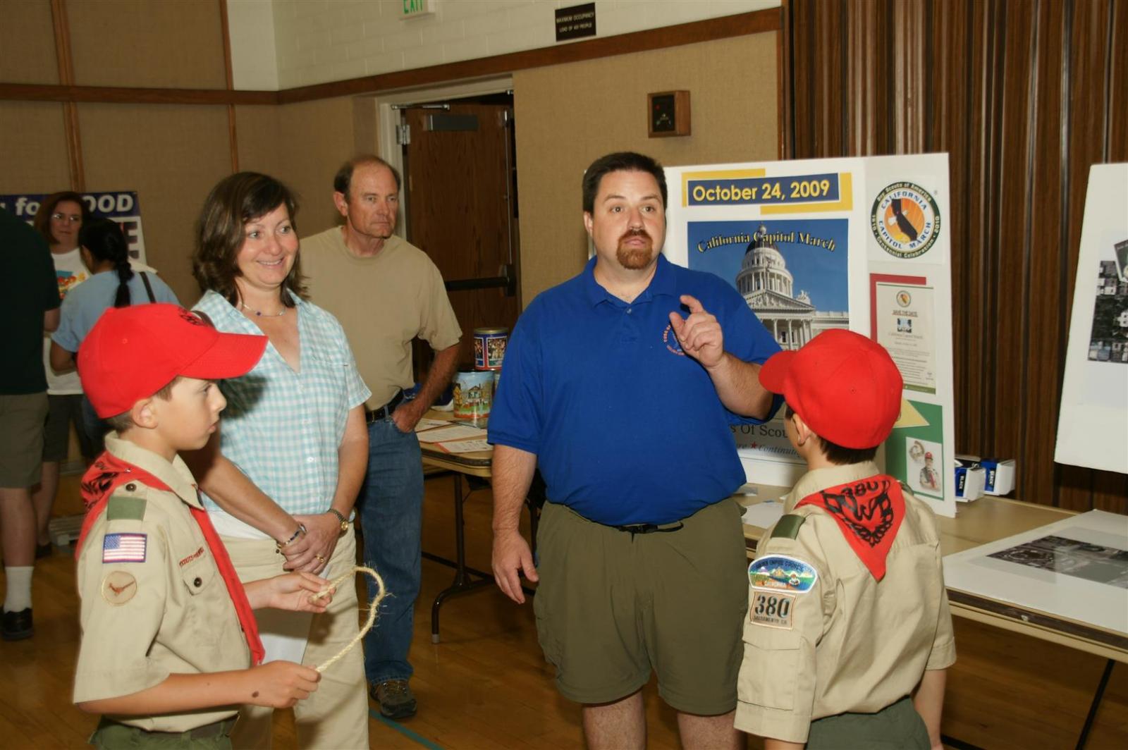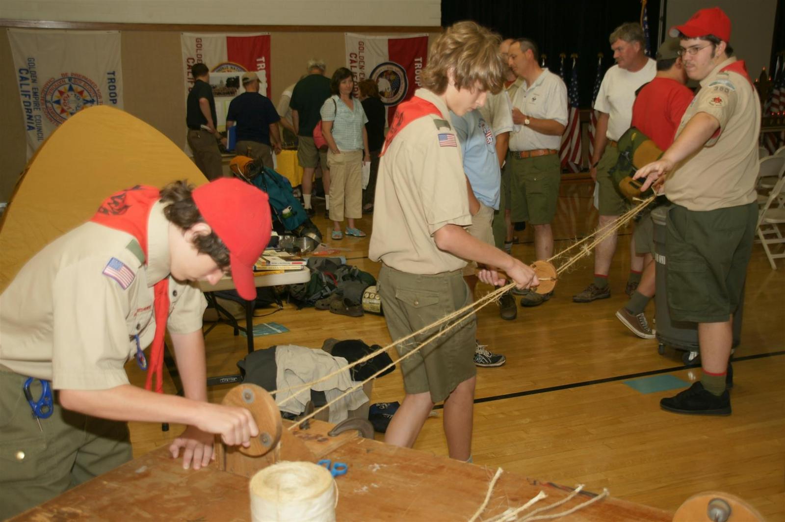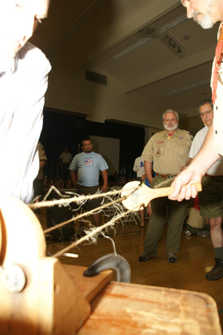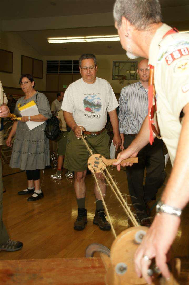 Troop and Pack leaders from the Rio Del Oro (RDO) district came to the roundtable and watched a presentation. Scouts demonstrated several skills such as rope making. Other activities like Dutch oven cooking and box car racing were presented. Finally, posters on Scouting activities such as the California Capital March were shown.