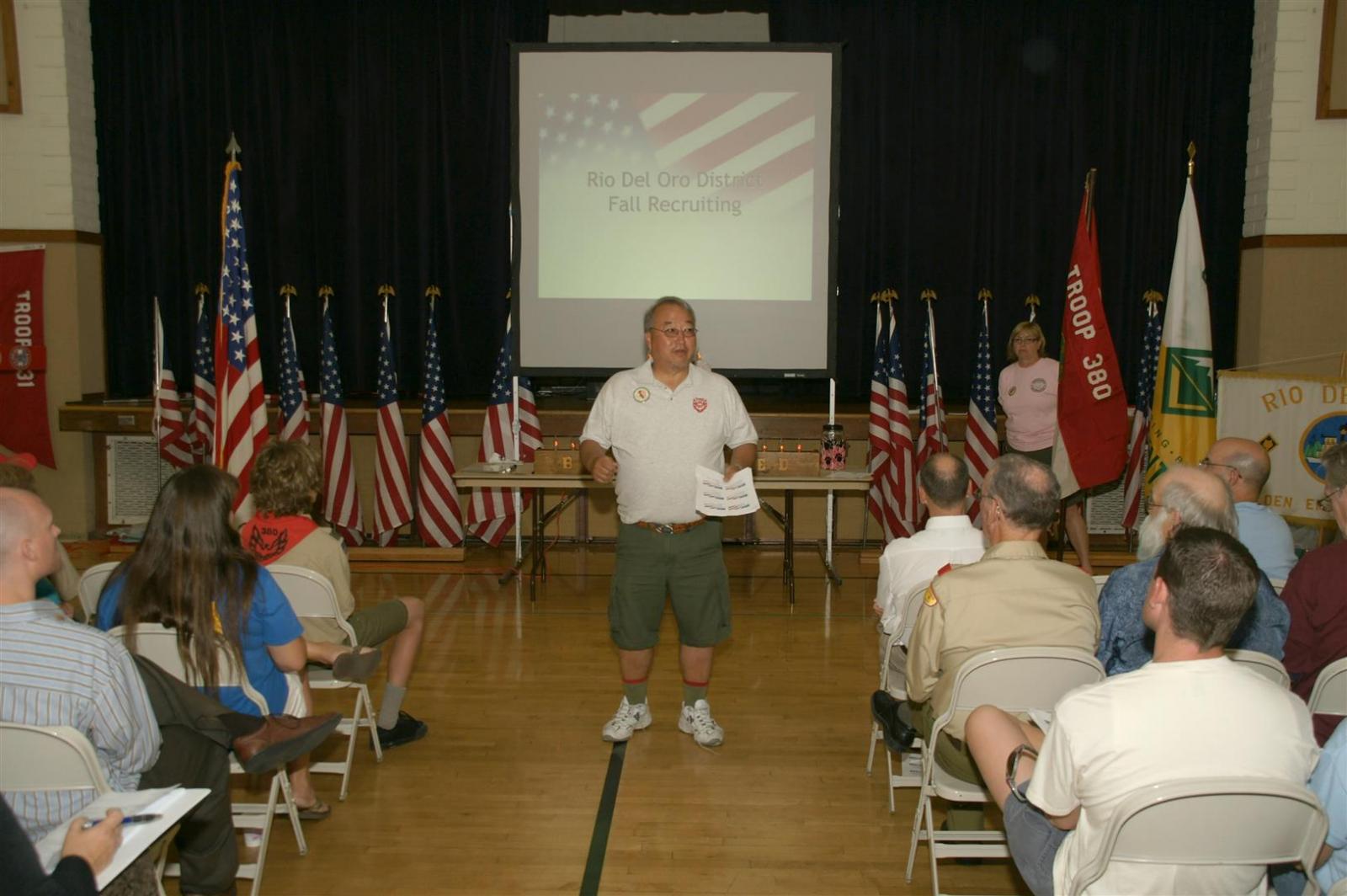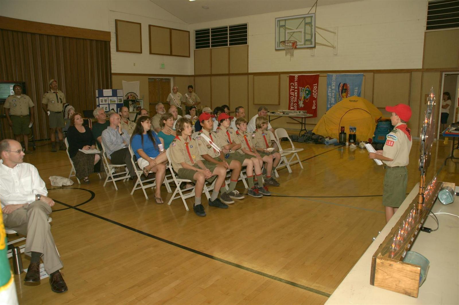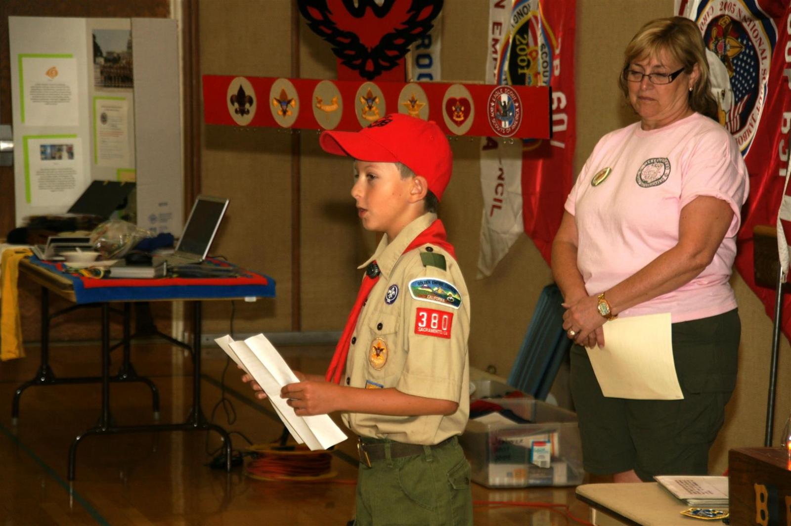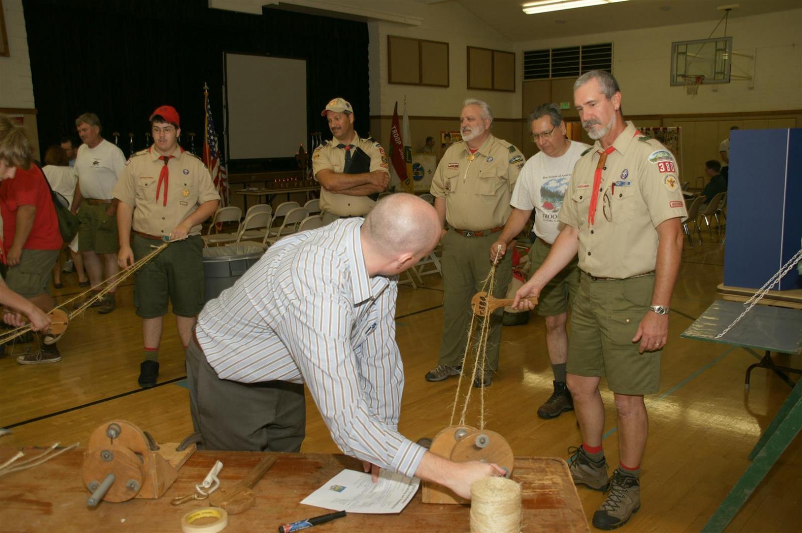 Troop and Pack leaders from the Rio Del Oro (RDO) district came to the roundtable and watched a presentation. Scouts demonstrated several skills such as rope making. Other activities like Dutch oven cooking and box car racing were presented. Finally, posters on Scouting activities such as the California Capital March were shown.