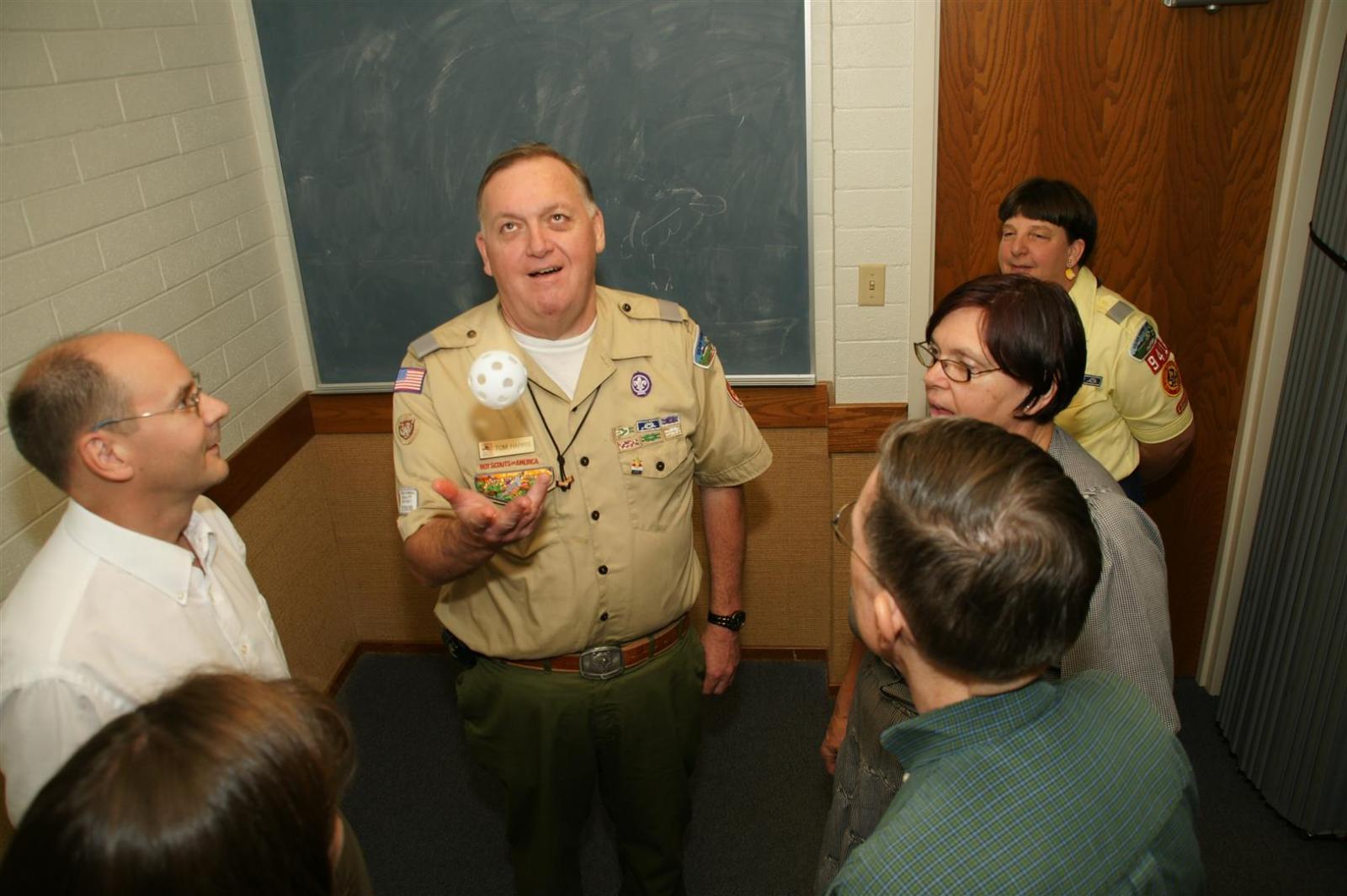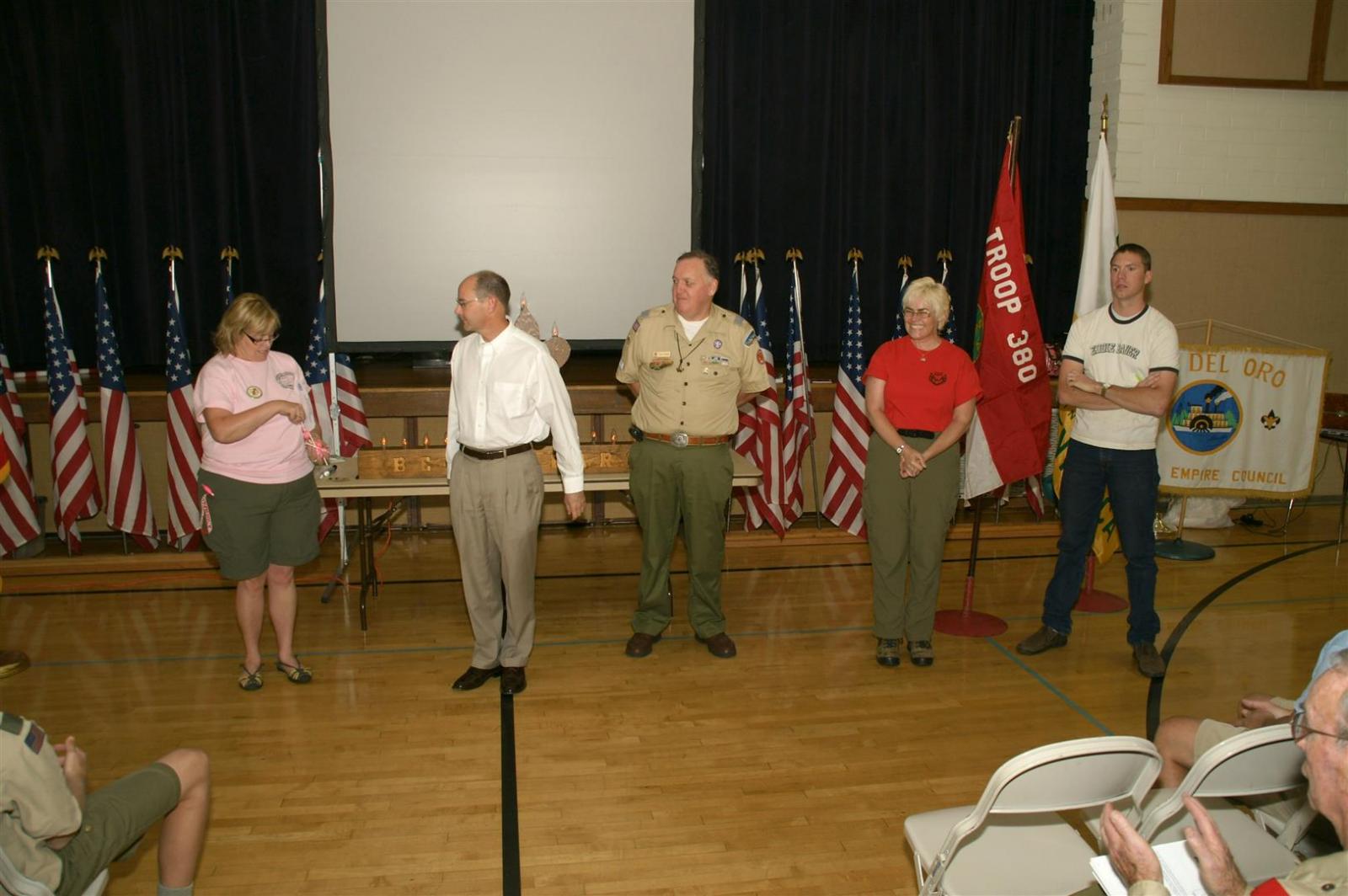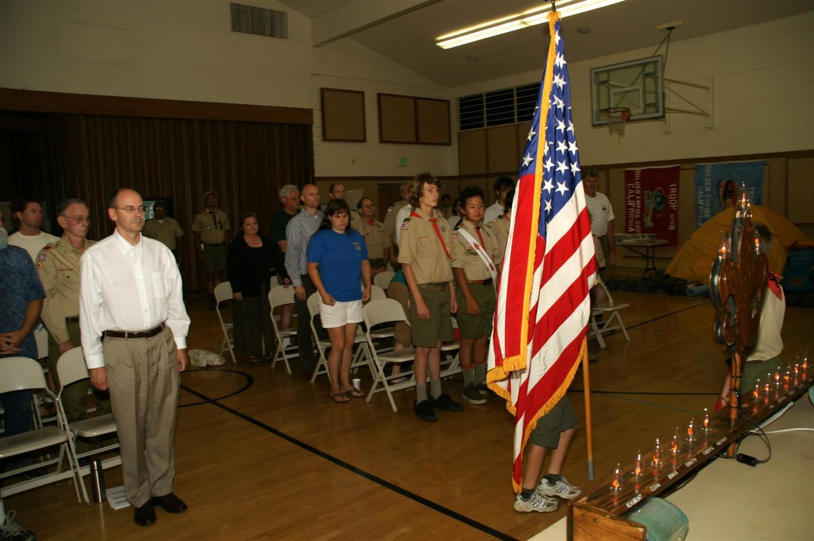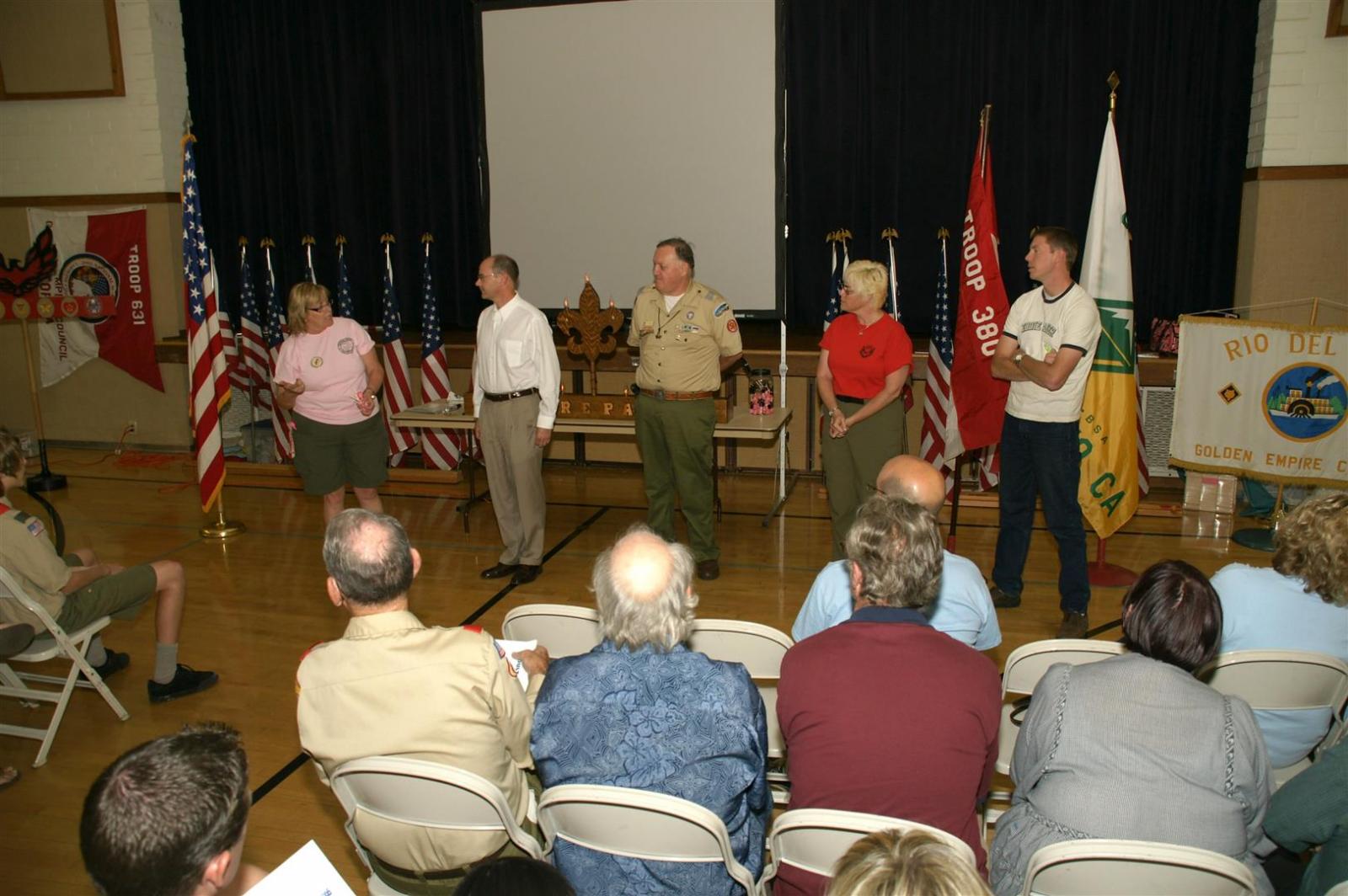 Troop and Pack leaders from the Rio Del Oro (RDO) district came to the roundtable and watched a presentation. Scouts demonstrated several skills such as rope making. Other activities like Dutch oven cooking and box car racing were presented. Finally, posters on Scouting activities such as the California Capital March were shown.