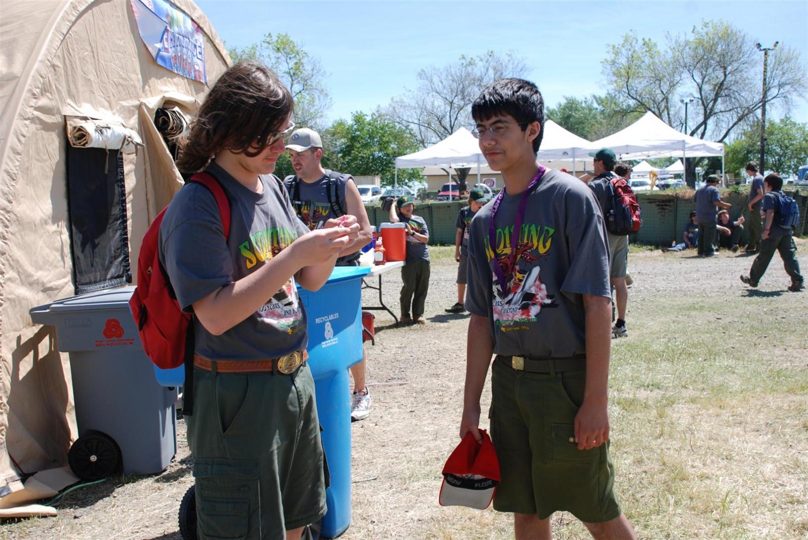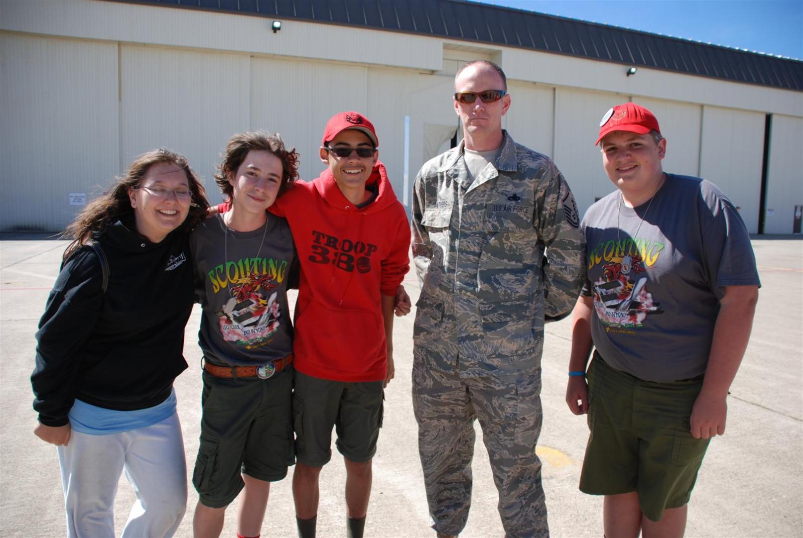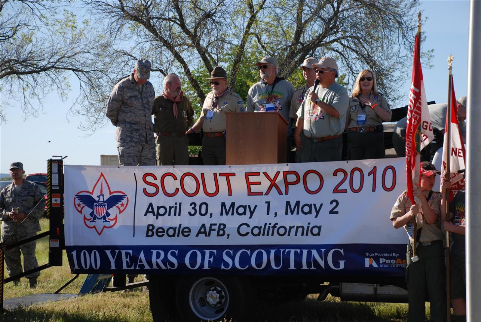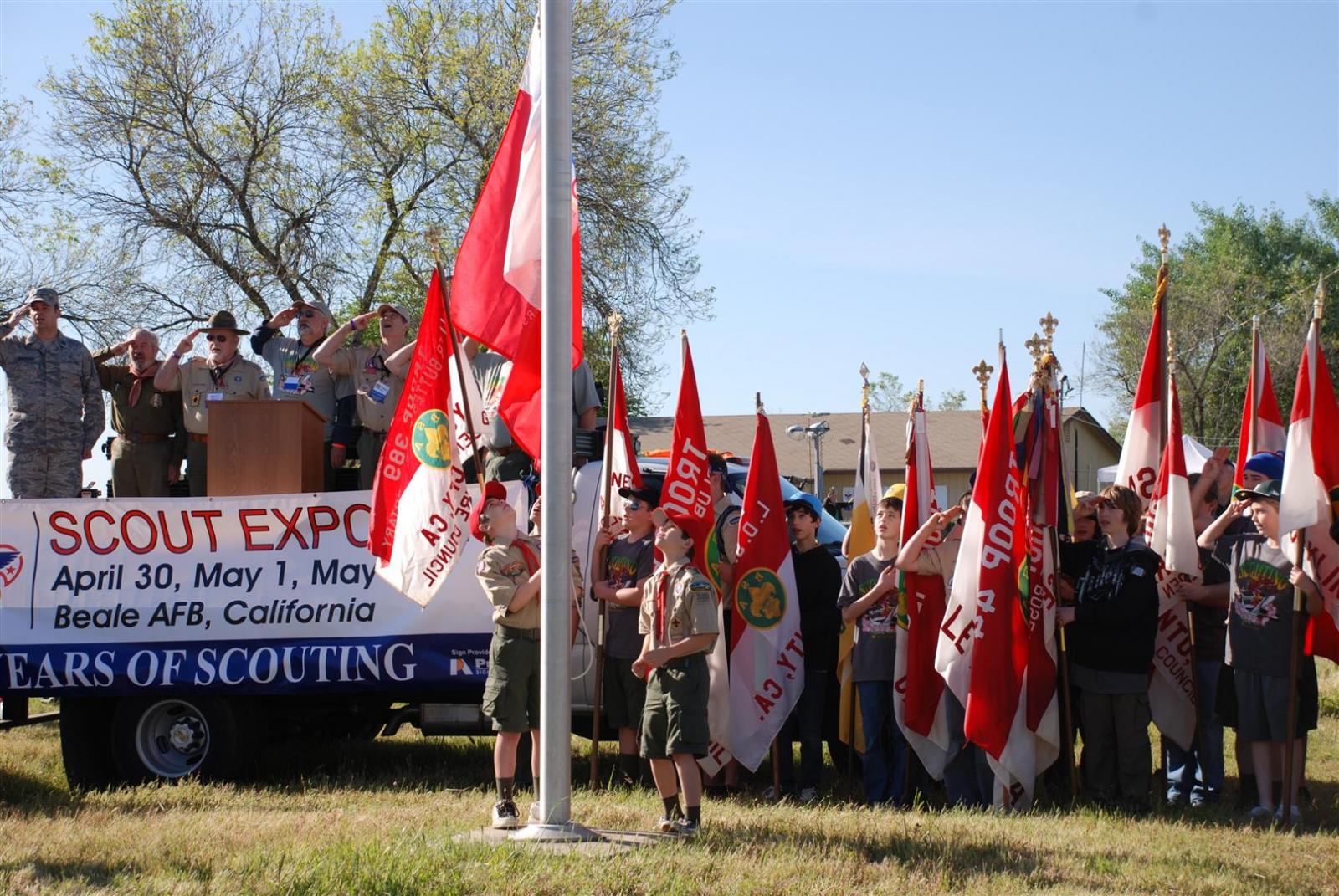 On April 30, forty-nine Scouts and 10 adults from Troop 380, descended on Beale AFB for the Scout Expo 2010. We arrived at Beale at 6:30 PM. We would have been earlier if it were not for the expert directions provided by MapQuest and our fearless Scoutmaster Michael Kuykendall. Attempting the North entry of the Base, the intrepid crew was denied entrance. Quick thinking ASM Mark Woosley maneuvered a perfect U-turn and the Troop was on their way. Once arriving at the front gate, we had no problems entering and soon found Dragon Town, the site of the Scout Expo. Troop 380 sprang into action and with little trouble arranged the tents into a faultless ―double U‖ at the gate to SR-71.