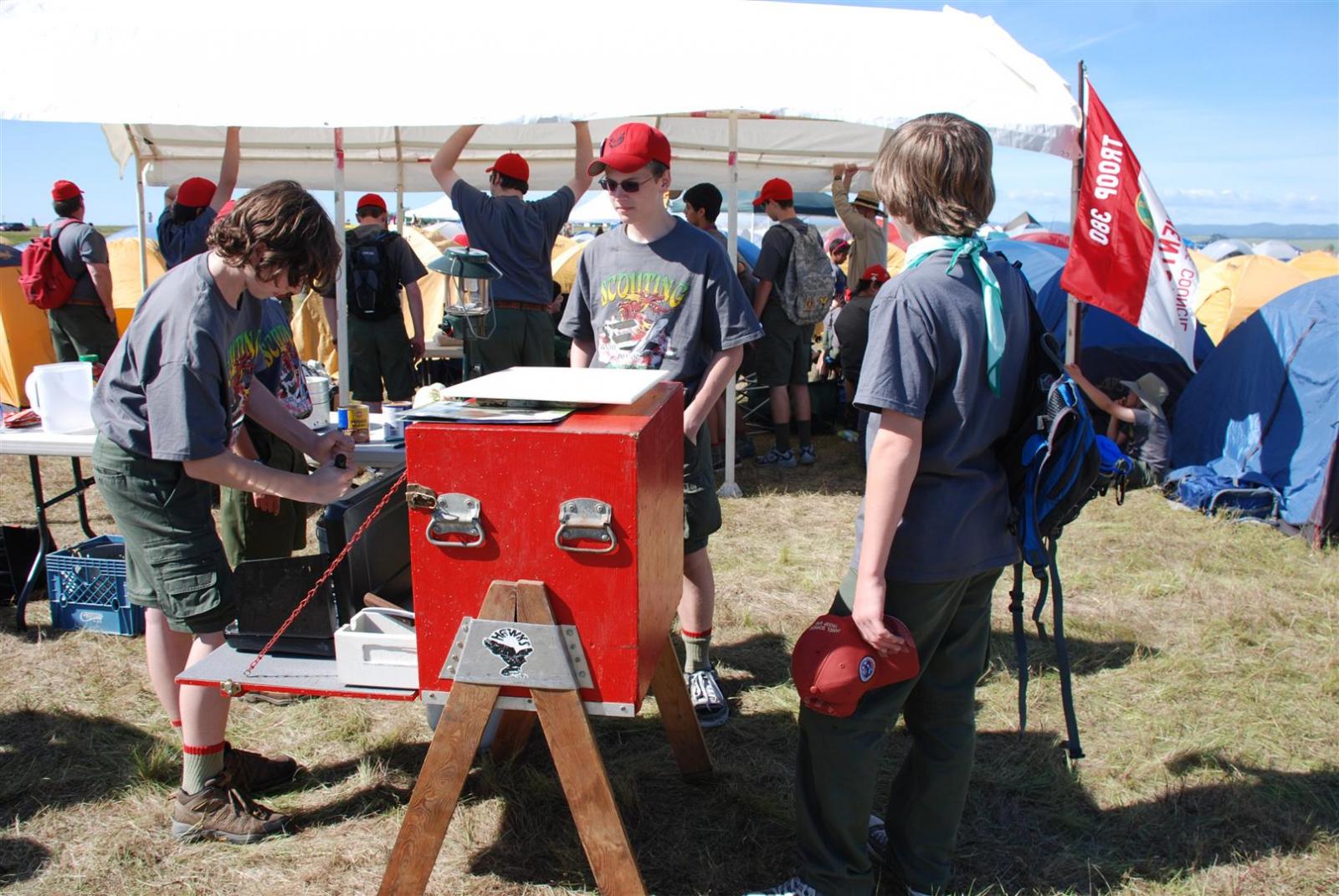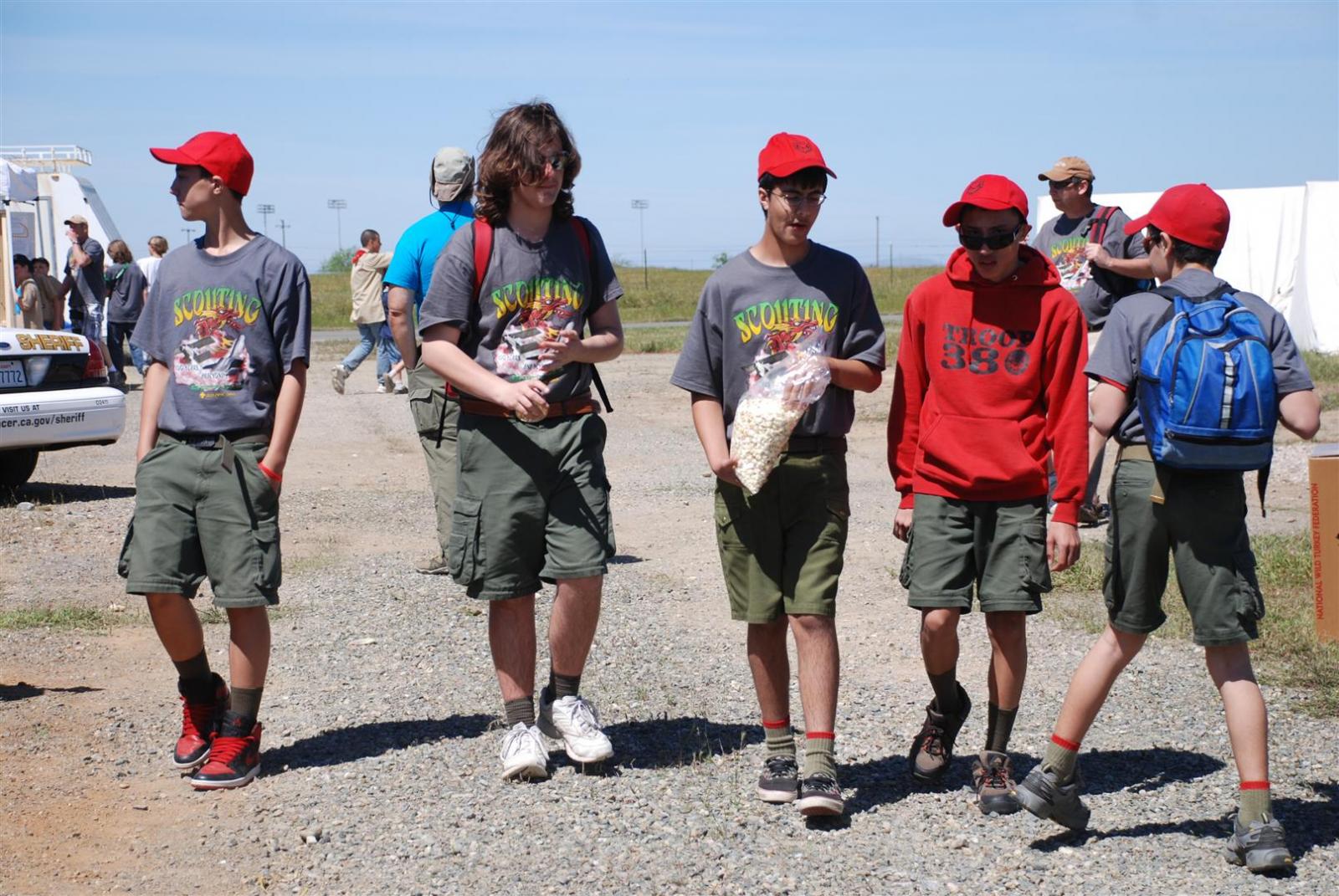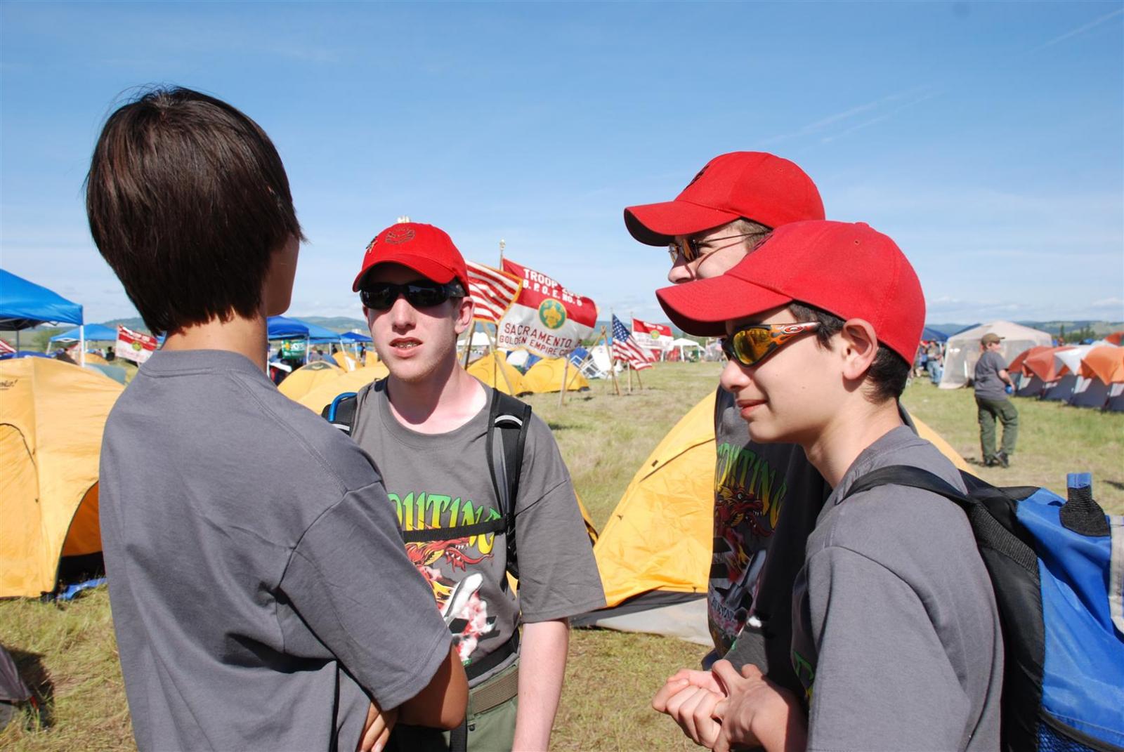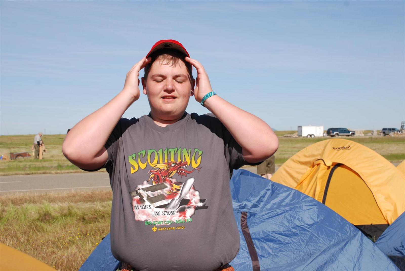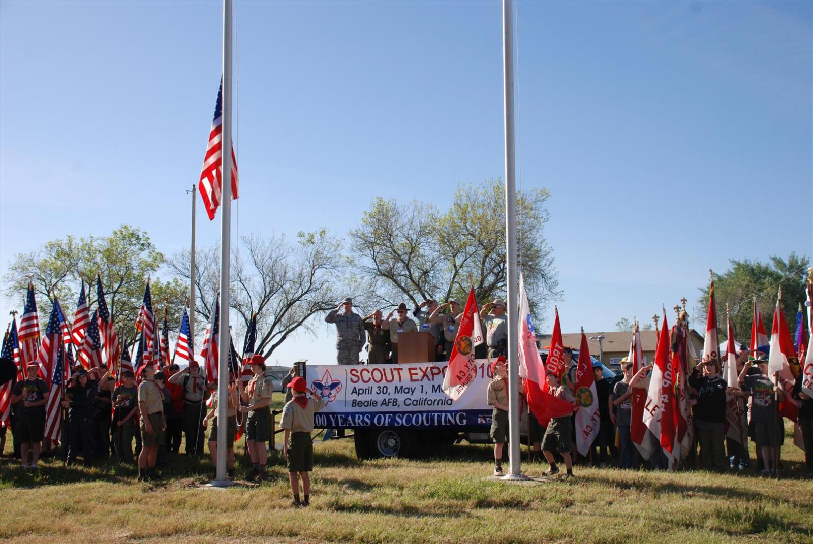On April 30, forty-nine Scouts and 10 adults from Troop 380, descended on Beale AFB for the Scout Expo 2010. We arrived at Beale at 6:30 PM. We would have been earlier if it were not for the expert directions provided by MapQuest and our fearless Scoutmaster Michael Kuykendall. Attempting the North entry of the Base, the intrepid crew was denied entrance. Quick thinking ASM Mark Woosley maneuvered a perfect U-turn and the Troop was on their way. Once arriving at the front gate, we had no problems entering and soon found Dragon Town, the site of the Scout Expo. Troop 380 sprang into action and with little trouble arranged the tents into a faultless ―double U‖ at the gate to SR-71.