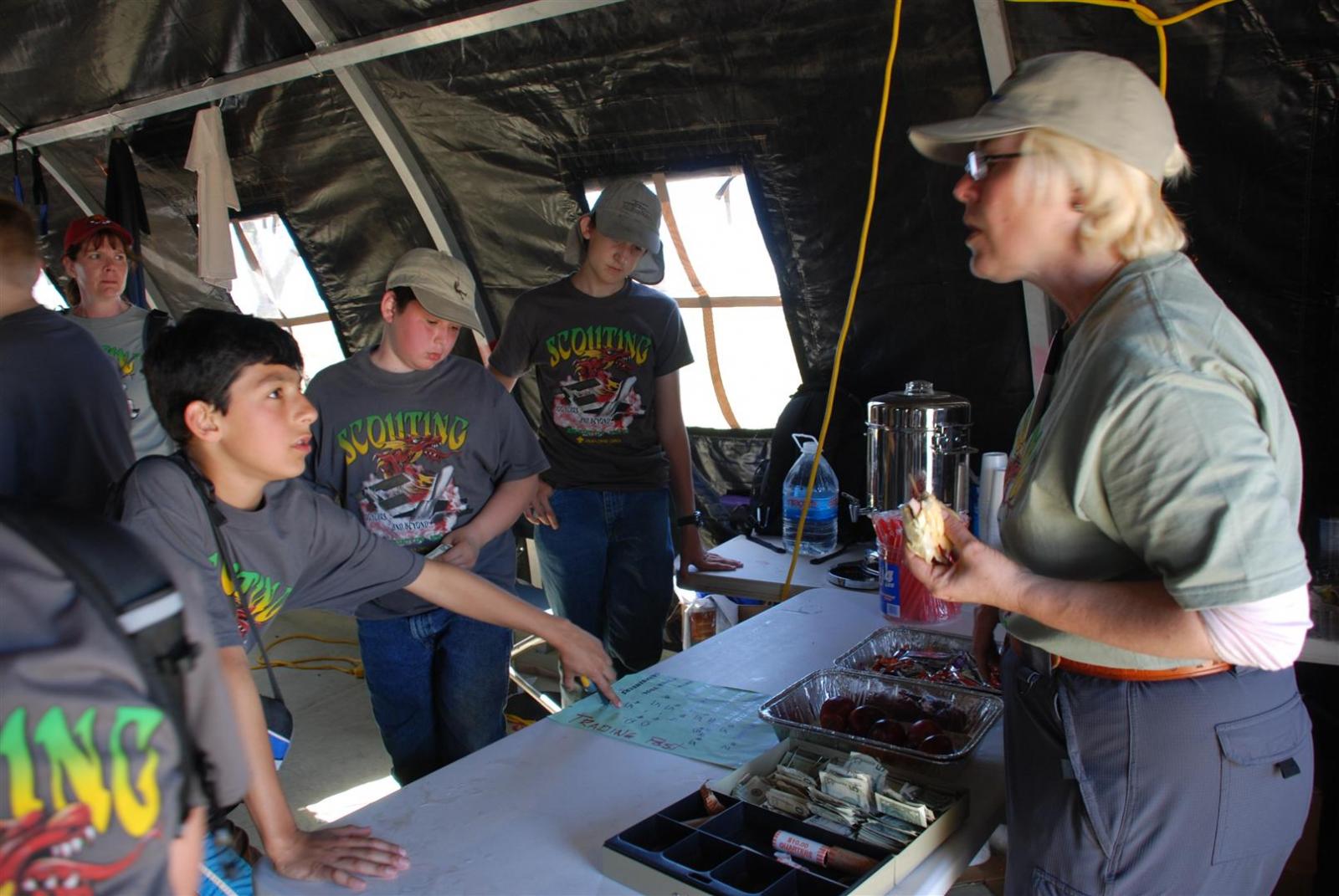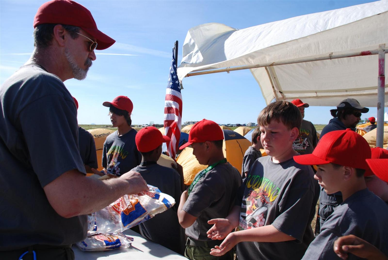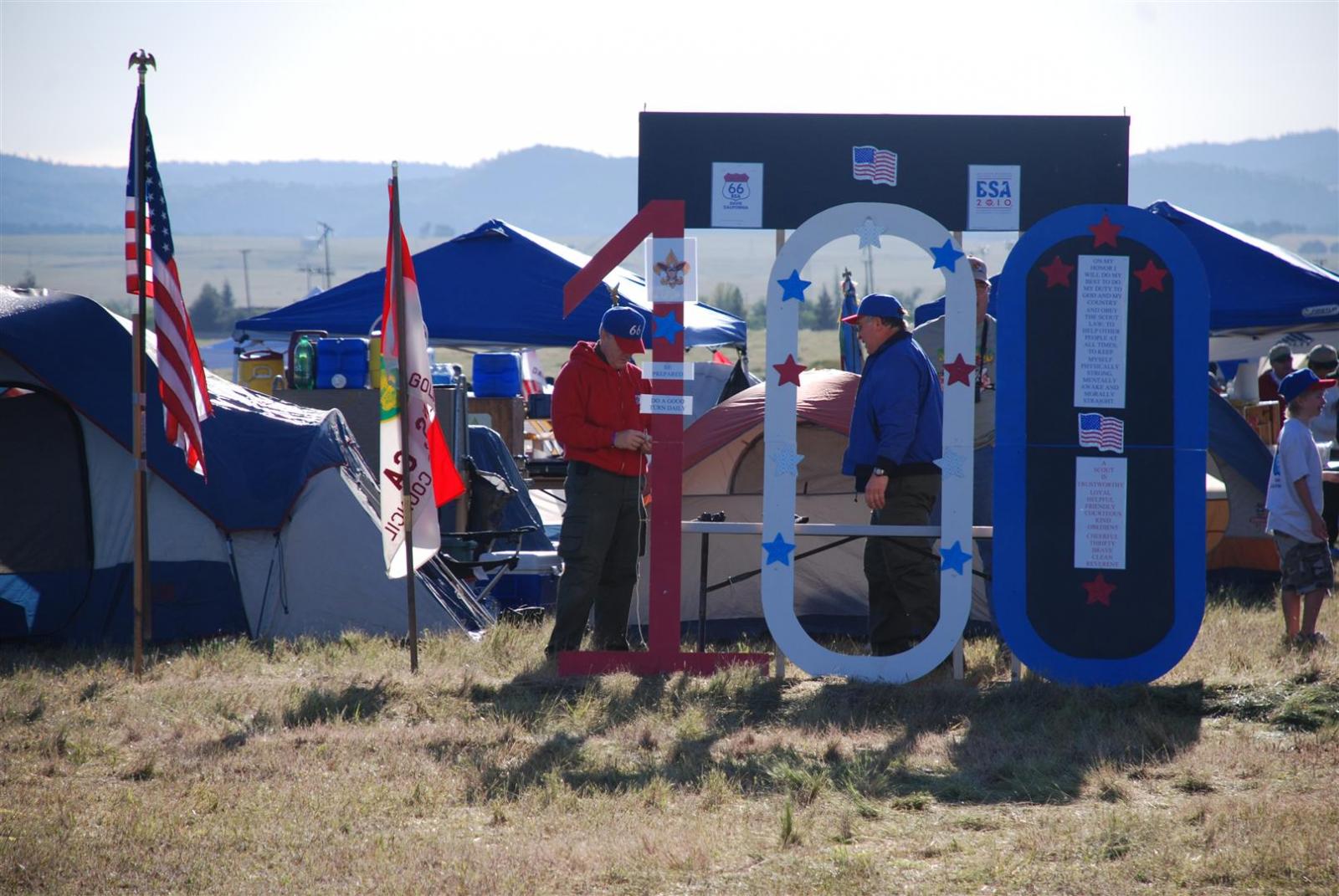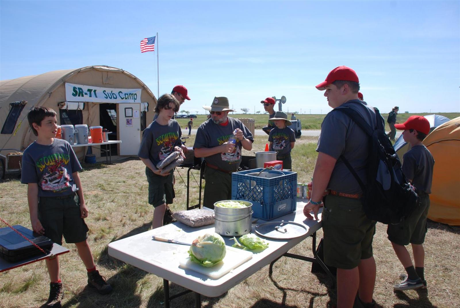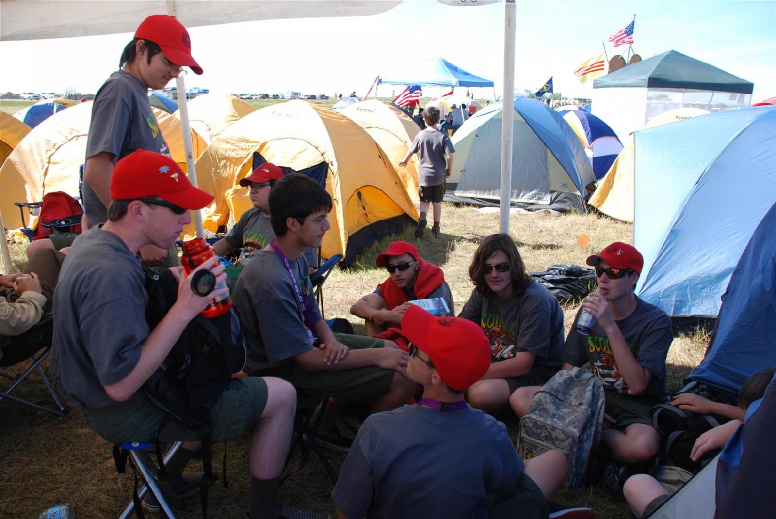 On April 30, forty-nine Scouts and 10 adults from Troop 380, descended on Beale AFB for the Scout Expo 2010. We arrived at Beale at 6:30 PM. We would have been earlier if it were not for the expert directions provided by MapQuest and our fearless Scoutmaster Michael Kuykendall. Attempting the North entry of the Base, the intrepid crew was denied entrance. Quick thinking ASM Mark Woosley maneuvered a perfect U-turn and the Troop was on their way. Once arriving at the front gate, we had no problems entering and soon found Dragon Town, the site of the Scout Expo. Troop 380 sprang into action and with little trouble arranged the tents into a faultless ―double U‖ at the gate to SR-71.