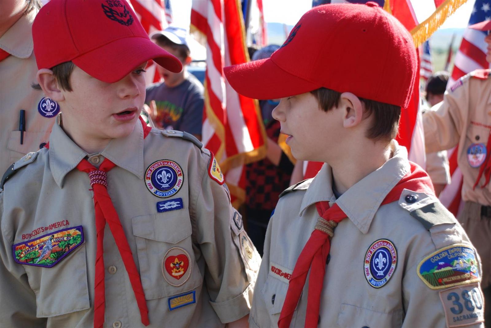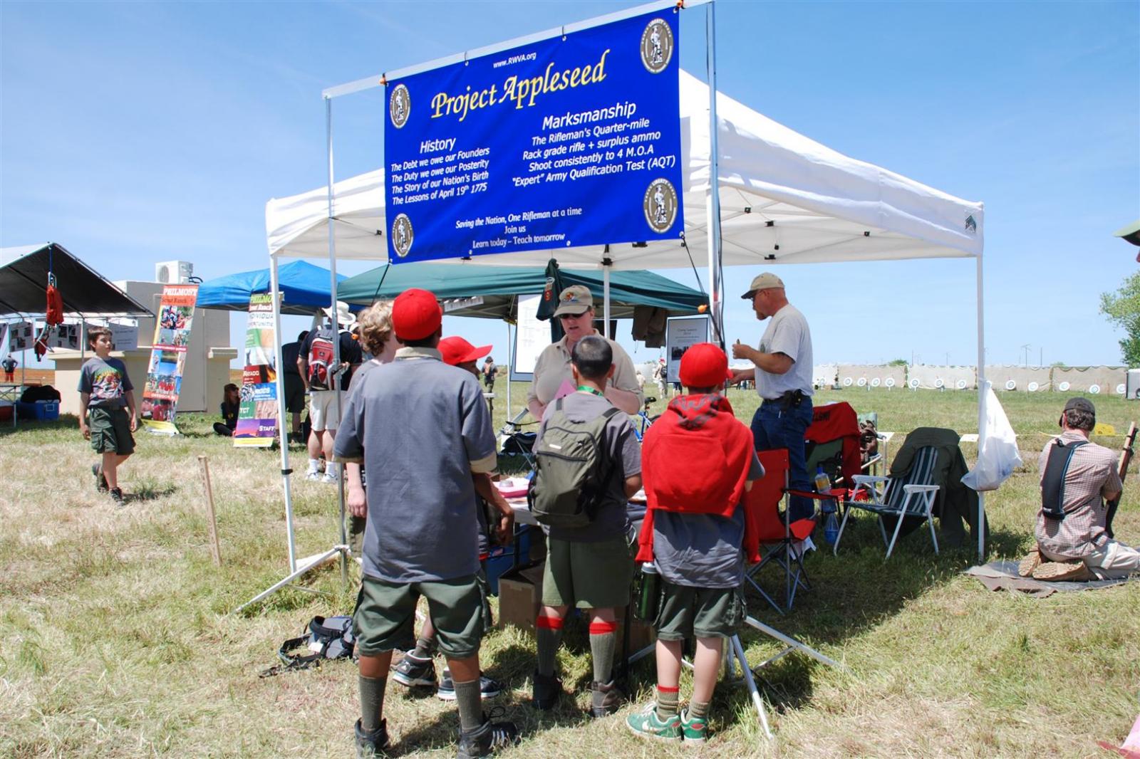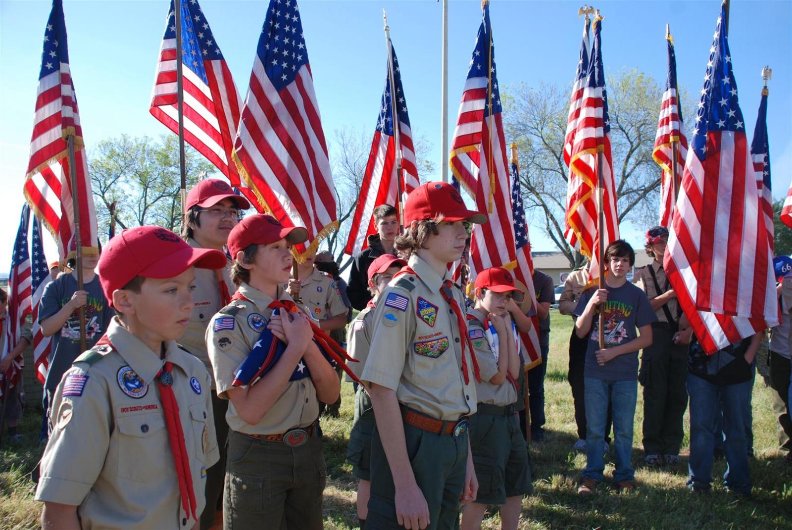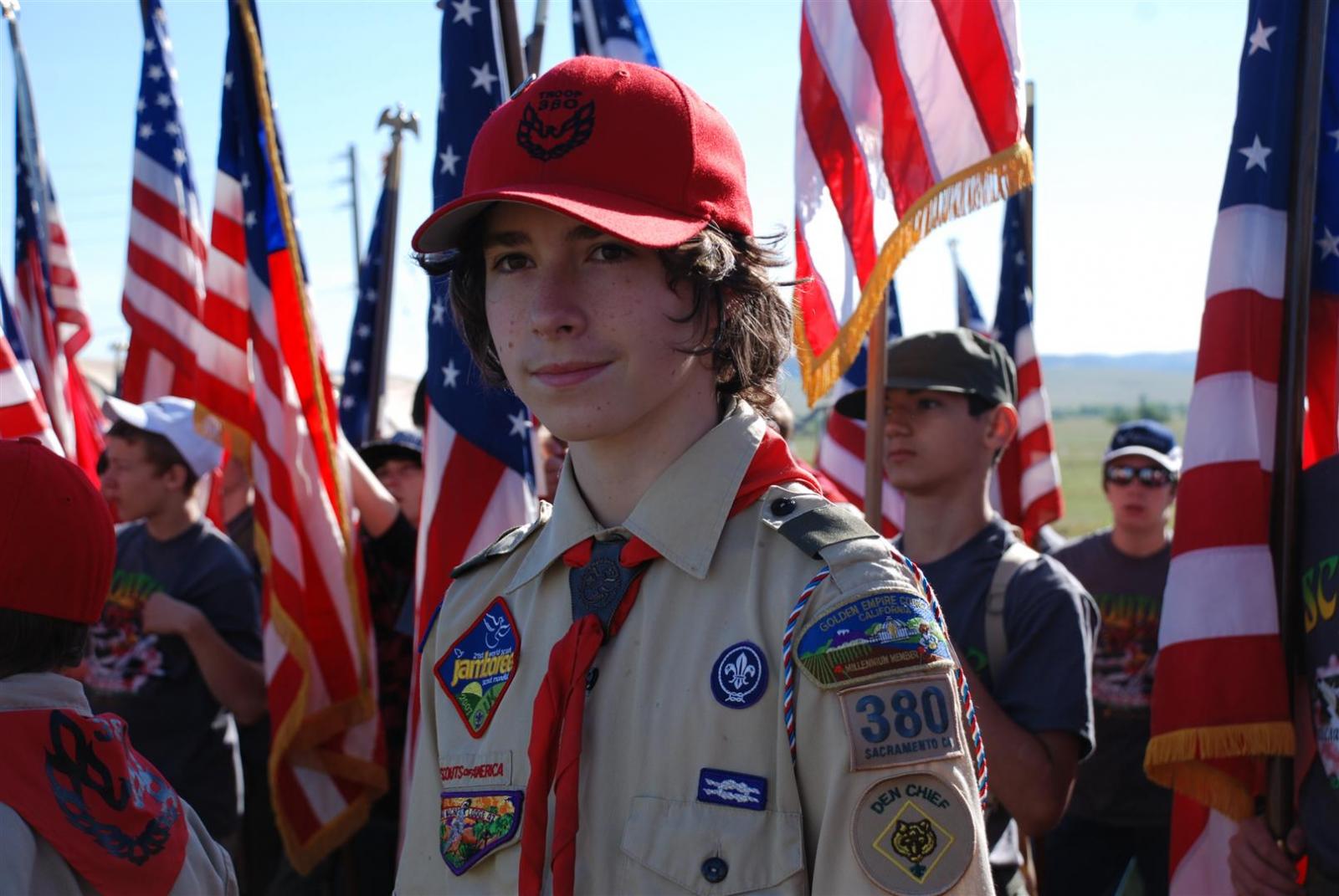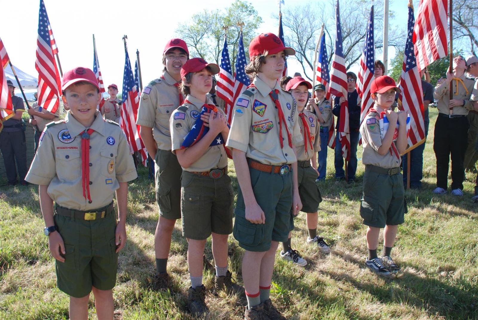 Saturday awoke to the sound of revelry. A hearty breakfast of oats, mini-wheats, and milk was served. Tickets were passed out for lunch at the Trading Post. The Troop participated in opening flags. The rest of the day was spent hiking to the flight line for a static display, merit badge alley, BMX biking, shooting bow/arrow, .22, and throwing tomahawks. Dinner was Mexican Tacos. The evening concluded with a stroll to the flight line for the arena show. A number of Troop 380 Scouts were a part of the show.
