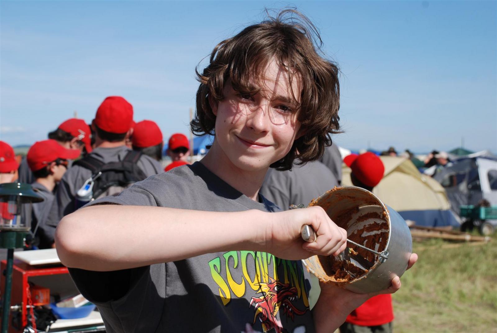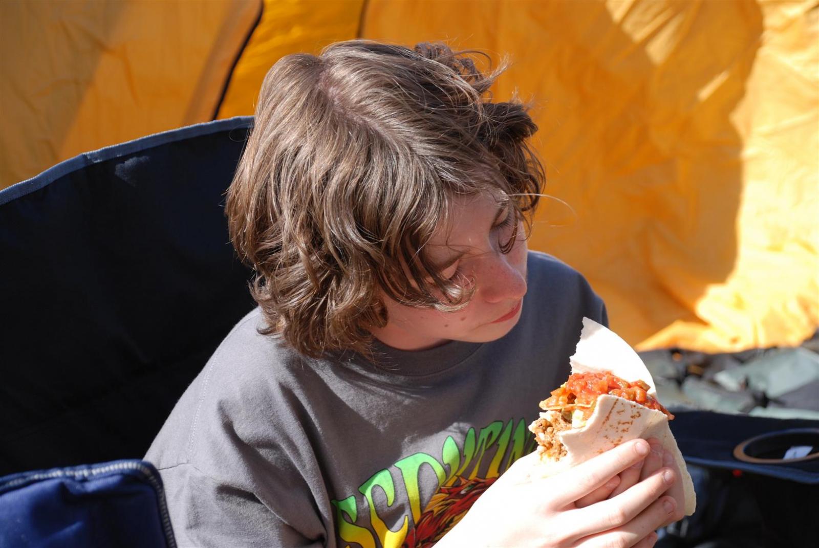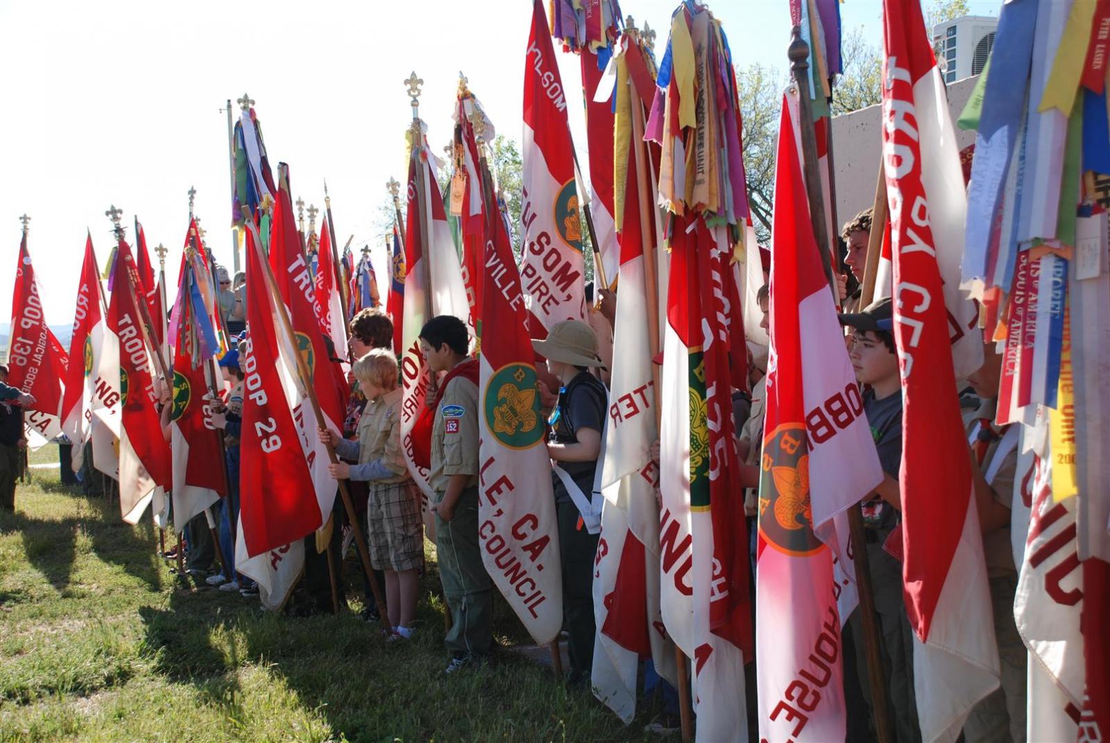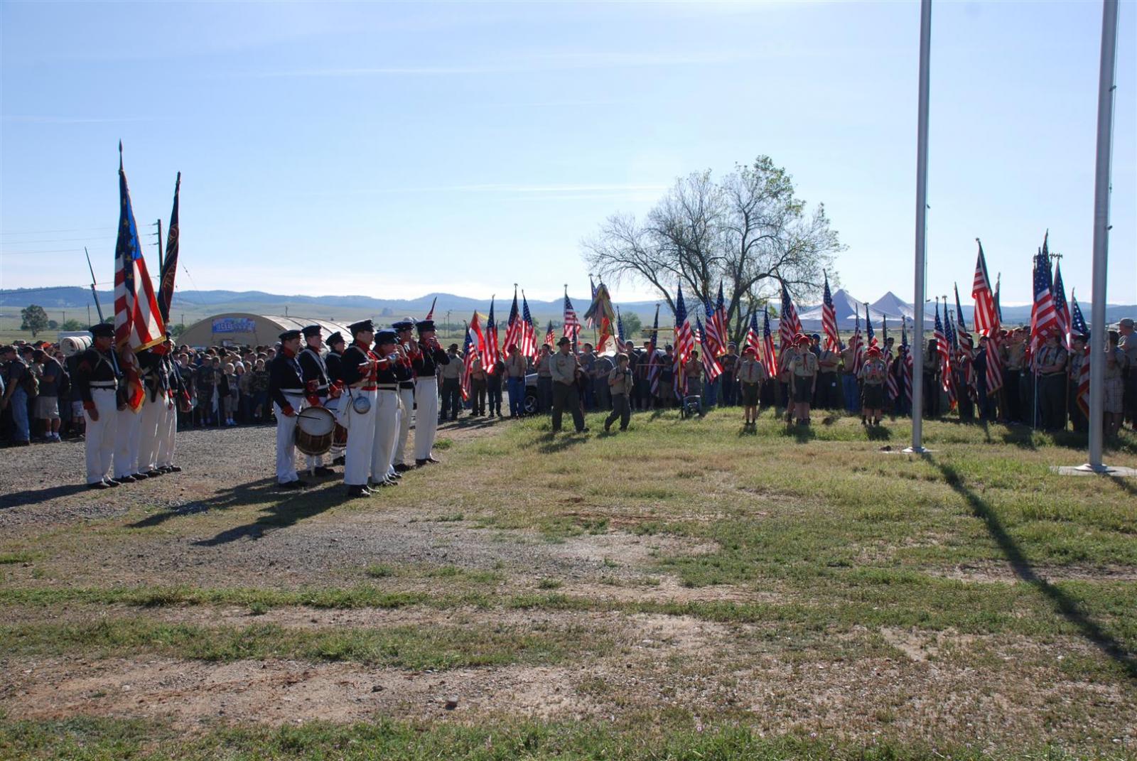 Saturday awoke to the sound of revelry. A hearty breakfast of oats, mini-wheats, and milk was served. Tickets were passed out for lunch at the Trading Post. The Troop participated in opening flags. The rest of the day was spent hiking to the flight line for a static display, merit badge alley, BMX biking, shooting bow/arrow, .22, and throwing tomahawks. Dinner was Mexican Tacos. The evening concluded with a stroll to the flight line for the arena show. A number of Troop 380 Scouts were a part of the show.