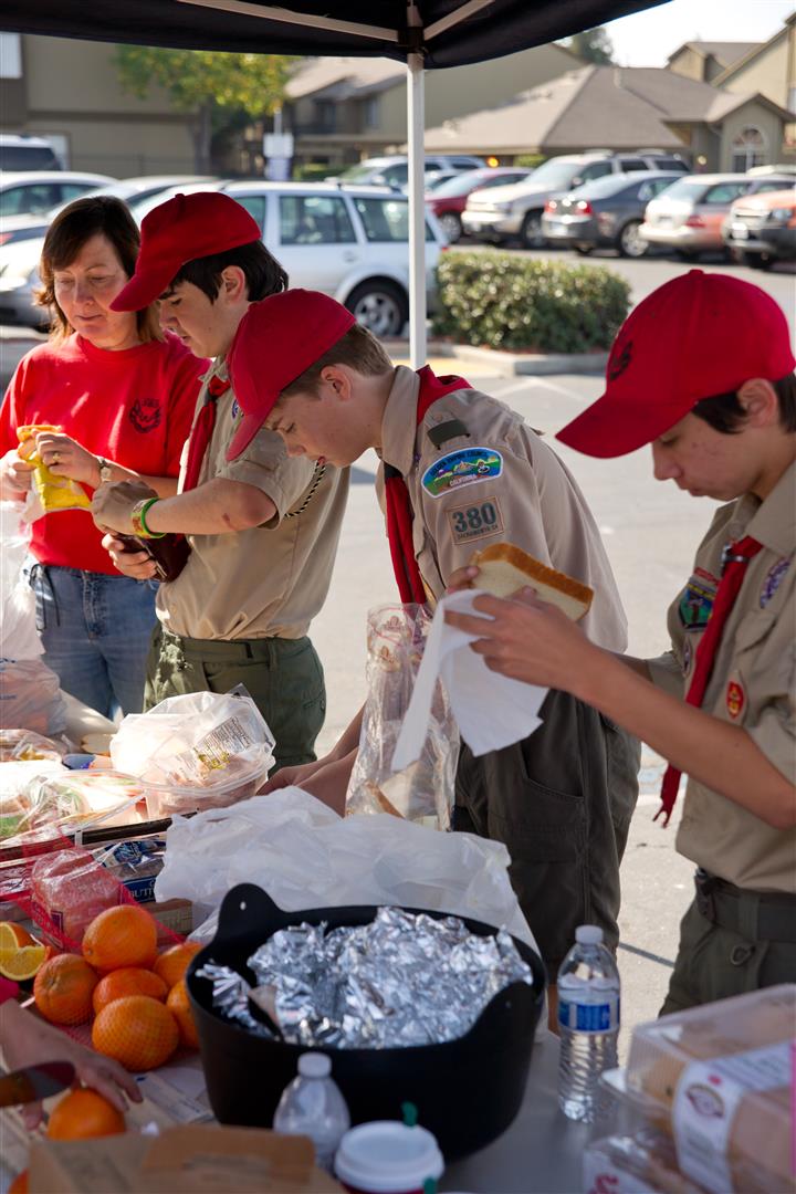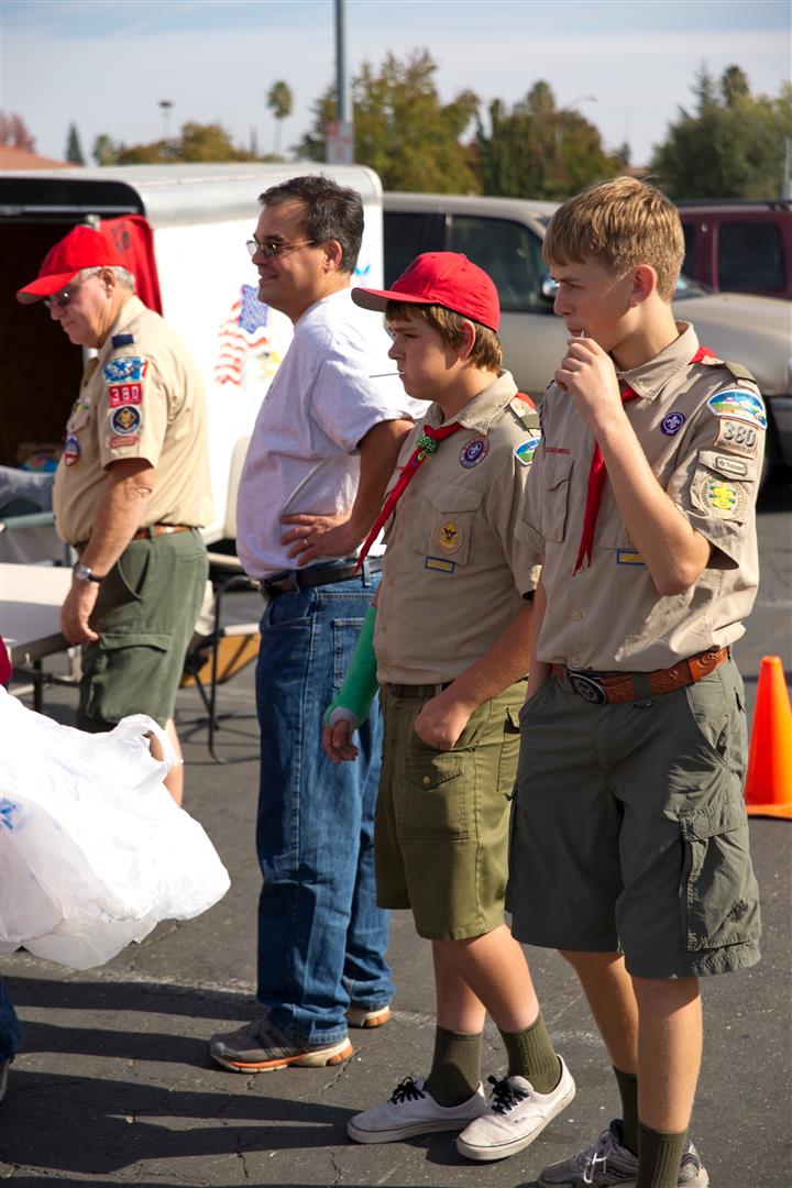 November 2, 2013, Another good turn completed as we collected 1.6 tons of food to help the Sacramento Food Bank and the community. Thank you Troop 380 and parents for giving your time and vehicles to help such a wonderful cause. Thank you to all for bringing breakfast, we had so many goodies.