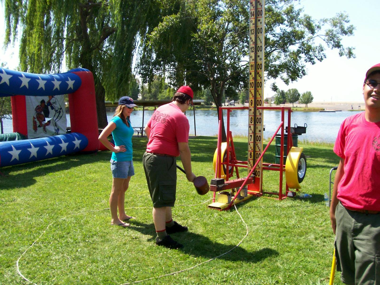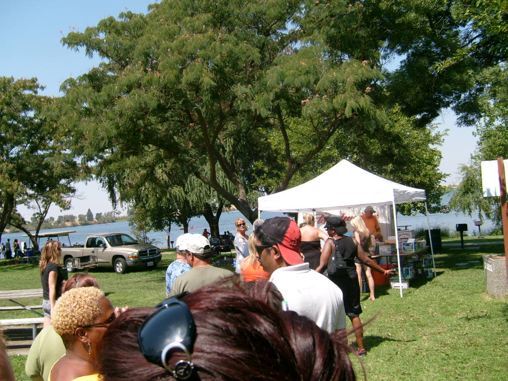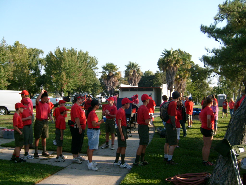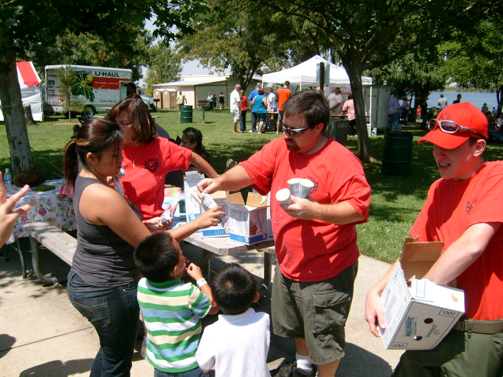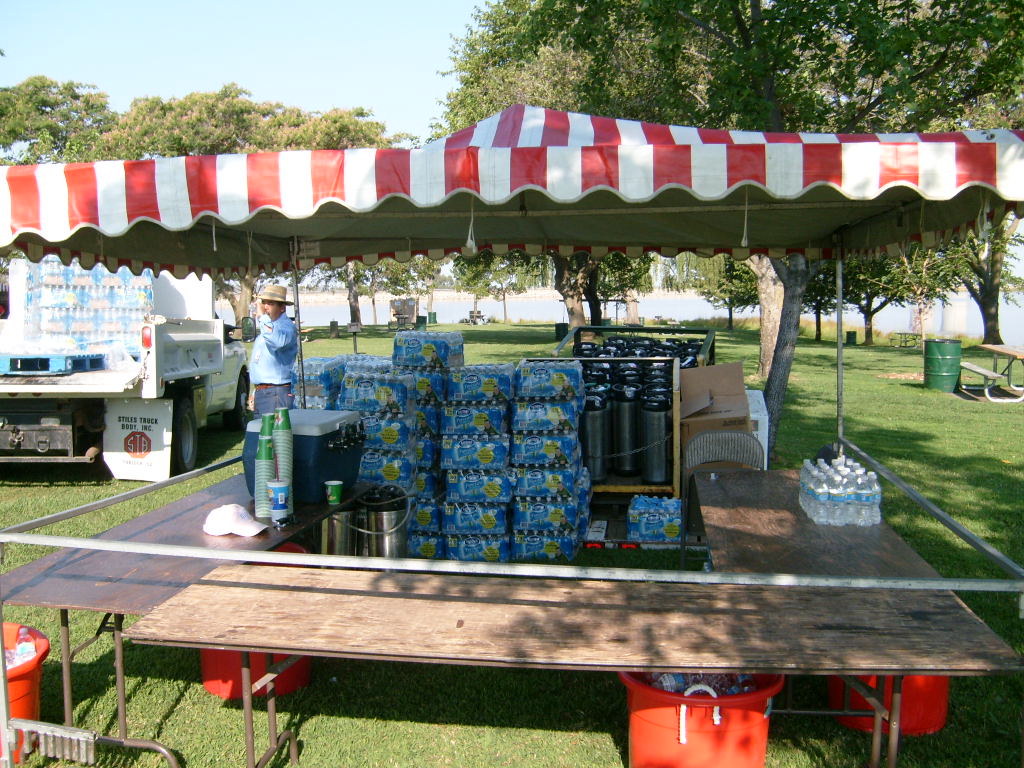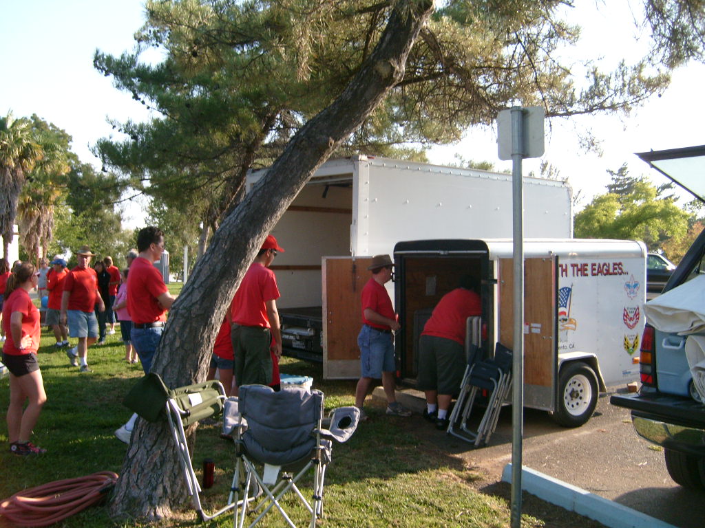 This year saw a new venue for the annual SMUD picnic held this year on August 15, 2009. That morning Troop 380 met early at Rancho Seco Regional Park to set up for the annual SMUD picnic. Over 100 Scouts, Scouters and family members helped set up the food tents with serving tables, barbeques, ice chests, food, condiments and paper products. In addition, we set up tables and chairs for eating, and set up the registration and prize booths and displays. With the lake as our backdrop, SMUD employees played games, chose from the famous Troop 380 barbequed tri-tip, as well as hamburgers, hot dogs and fried chicken. The DJ and his crew kept the place hopping with a wide variety of music giving the party a festive atmosphere. Thank you to both Laura Born and Zenaida Kamine for their hard work organizing the event.