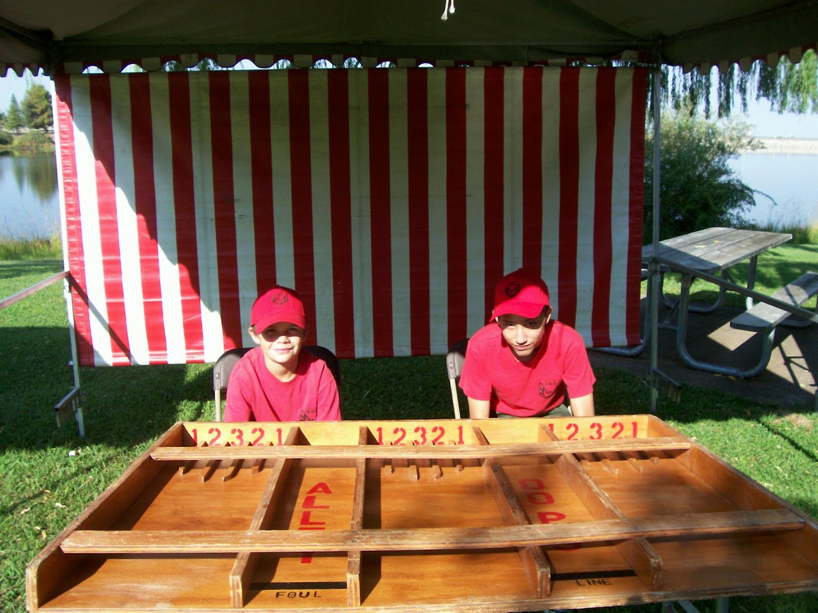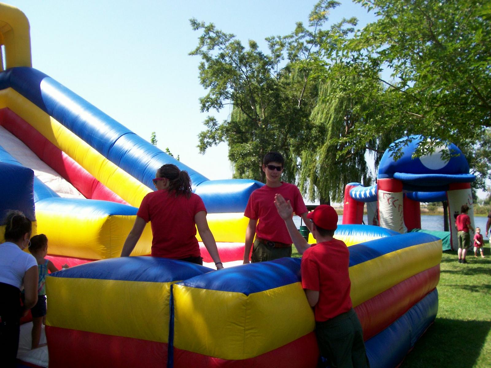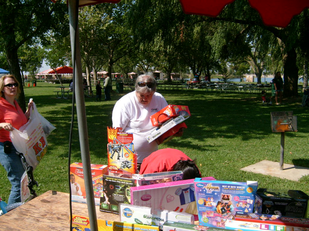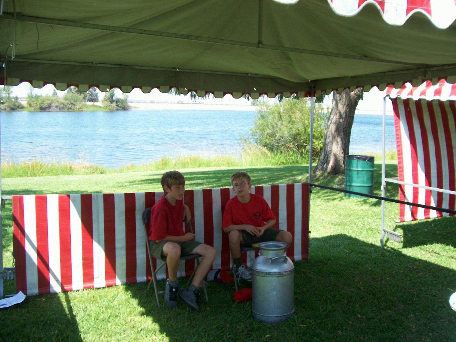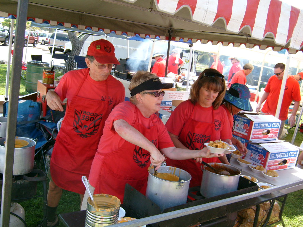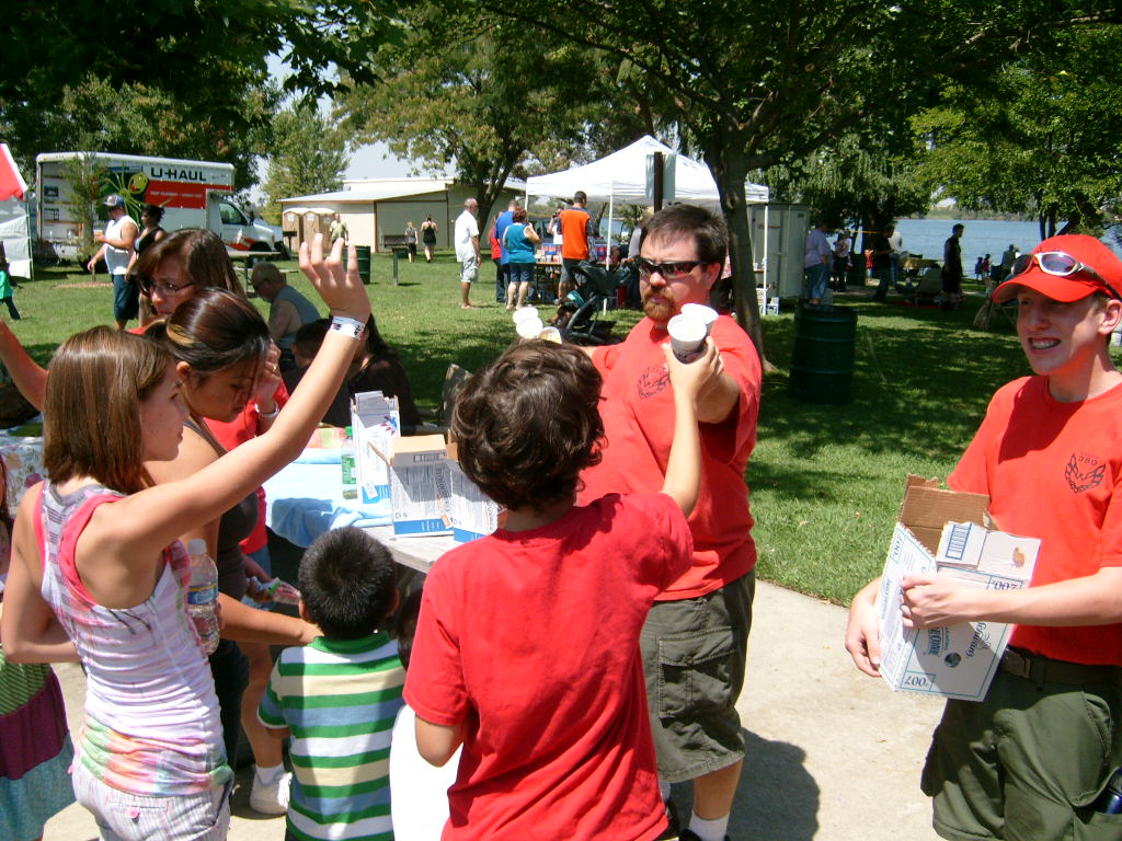 This year saw a new venue for the annual SMUD picnic held this year on August 15, 2009. That morning Troop 380 met early at Rancho Seco Regional Park to set up for the annual SMUD picnic. Over 100 Scouts, Scouters and family members helped set up the food tents with serving tables, barbeques, ice chests, food, condiments and paper products. In addition, we set up tables and chairs for eating, and set up the registration and prize booths and displays. With the lake as our backdrop, SMUD employees played games, chose from the famous Troop 380 barbequed tri-tip, as well as hamburgers, hot dogs and fried chicken. The DJ and his crew kept the place hopping with a wide variety of music giving the party a festive atmosphere. Thank you to both Laura Born and Zenaida Kamine for their hard work organizing the event.