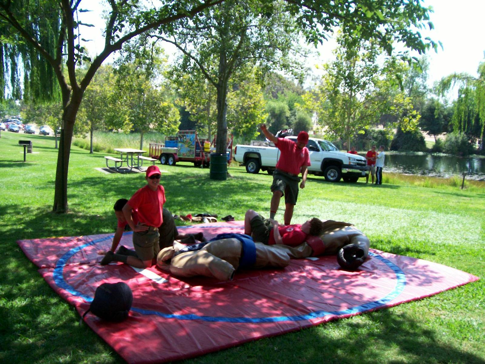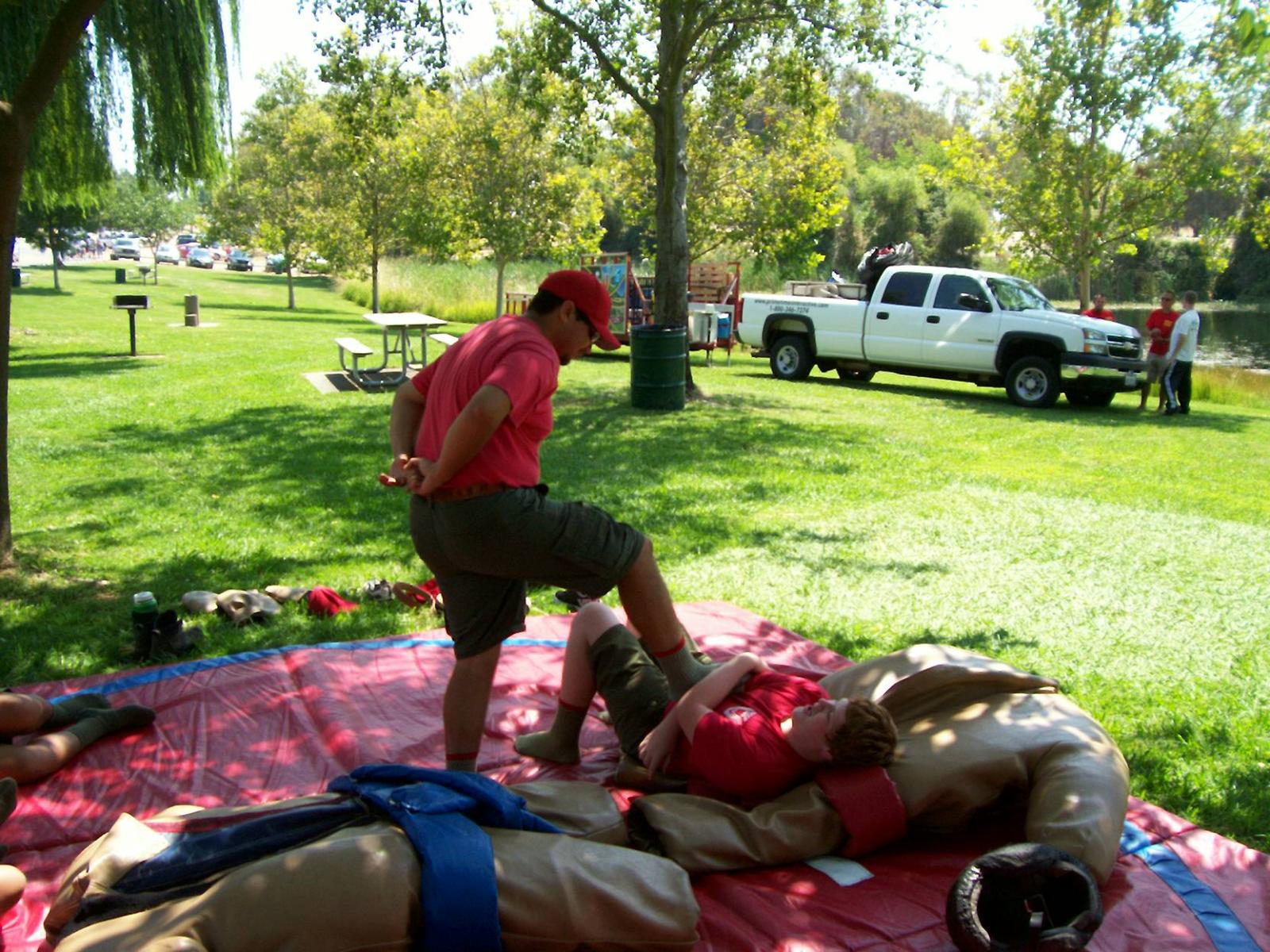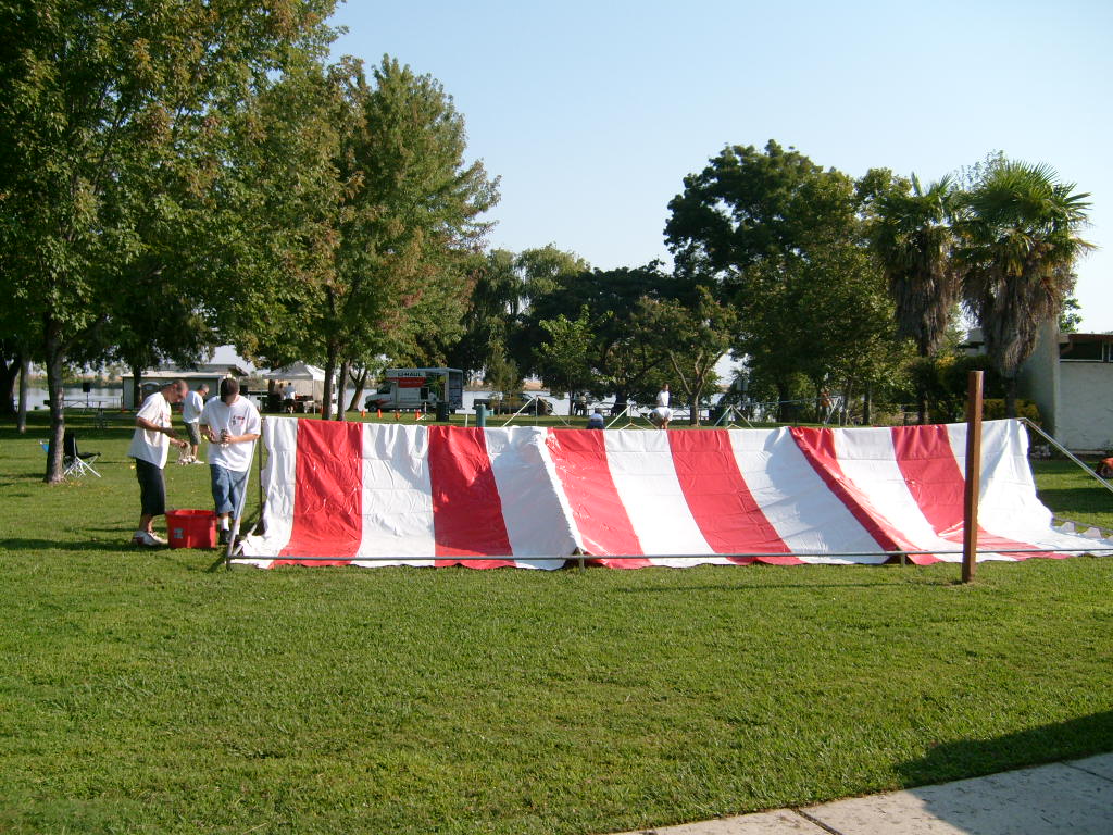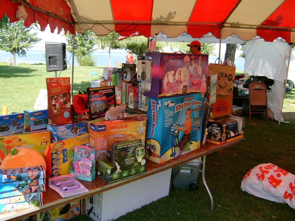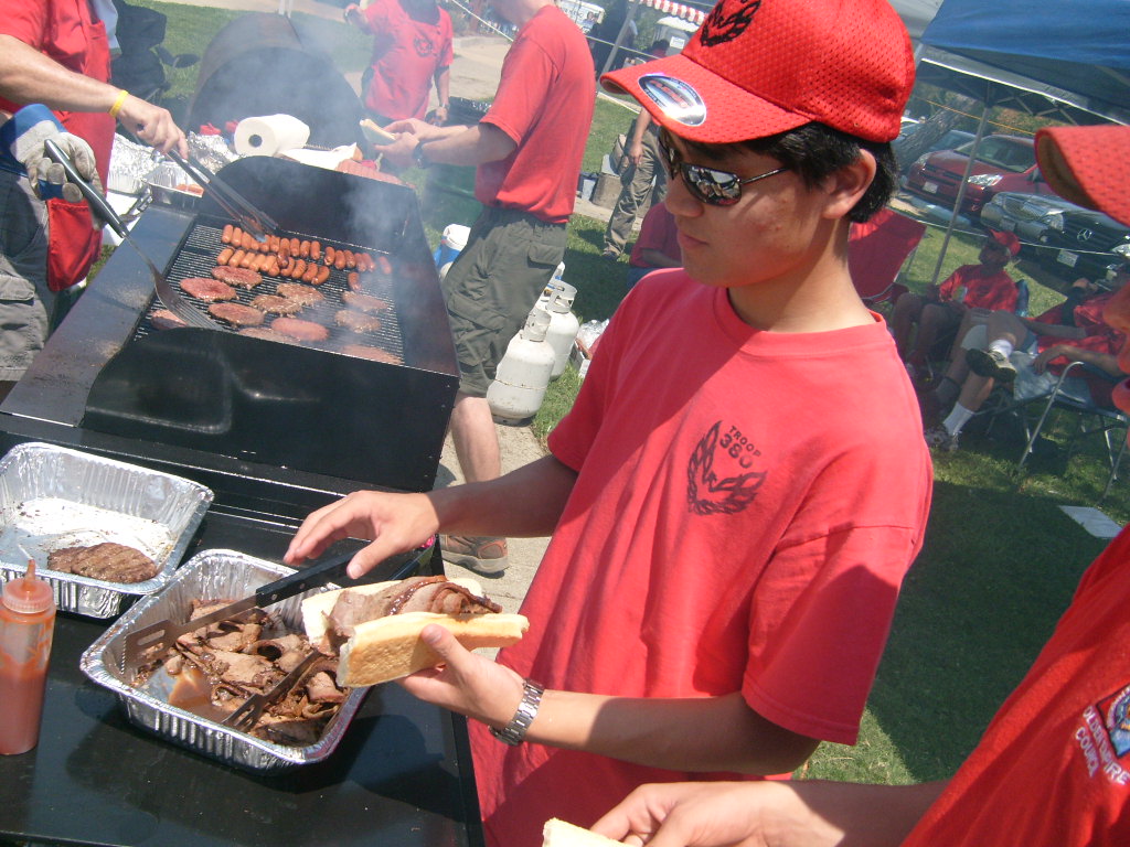 This year saw a new venue for the annual SMUD picnic held this year on August 15, 2009. That morning Troop 380 met early at Rancho Seco Regional Park to set up for the annual SMUD picnic. Over 100 Scouts, Scouters and family members helped set up the food tents with serving tables, barbeques, ice chests, food, condiments and paper products. In addition, we set up tables and chairs for eating, and set up the registration and prize booths and displays. With the lake as our backdrop, SMUD employees played games, chose from the famous Troop 380 barbequed tri-tip, as well as hamburgers, hot dogs and fried chicken. The DJ and his crew kept the place hopping with a wide variety of music giving the party a festive atmosphere. Thank you to both Laura Born and Zenaida Kamine for their hard work organizing the event.