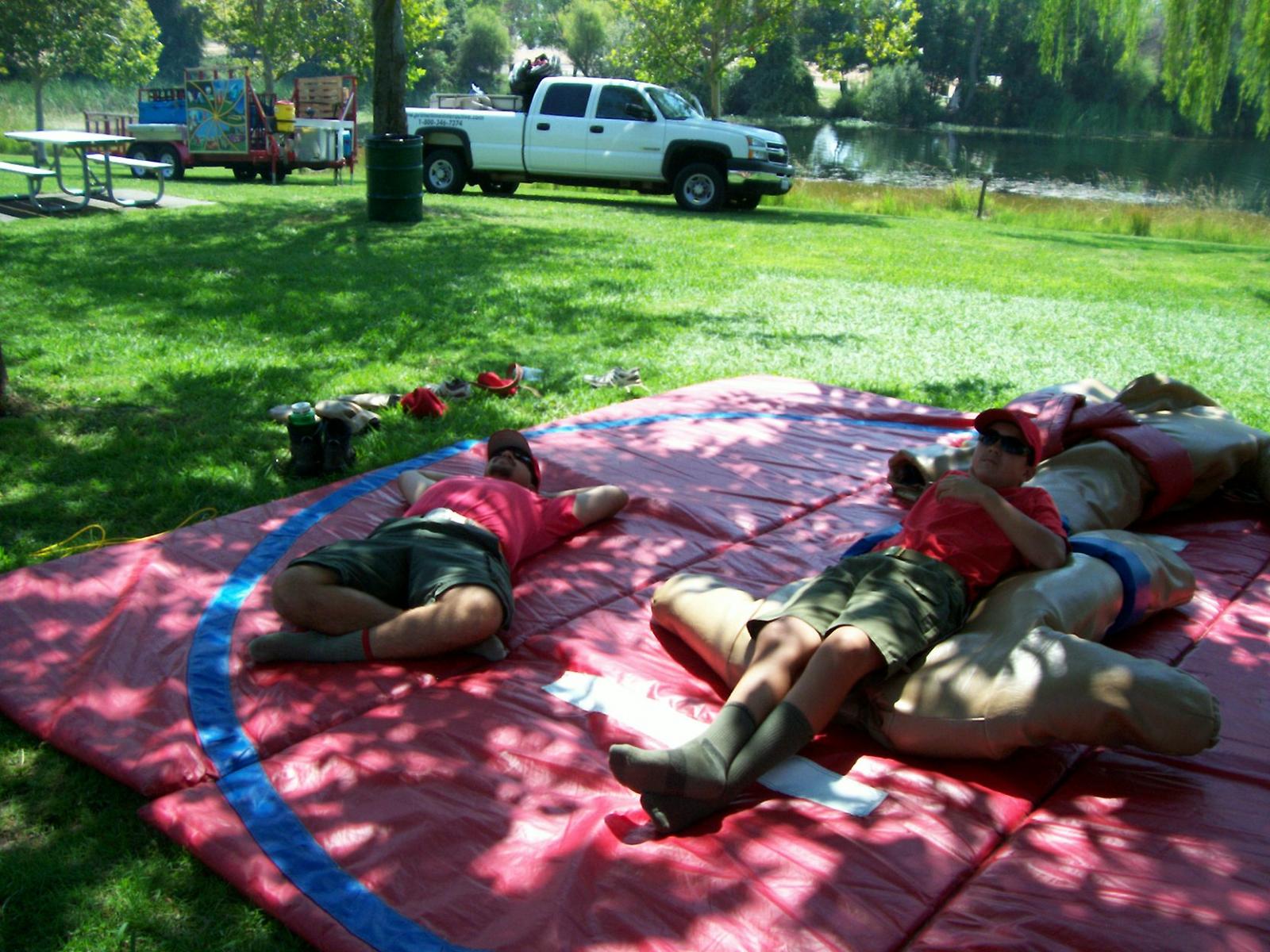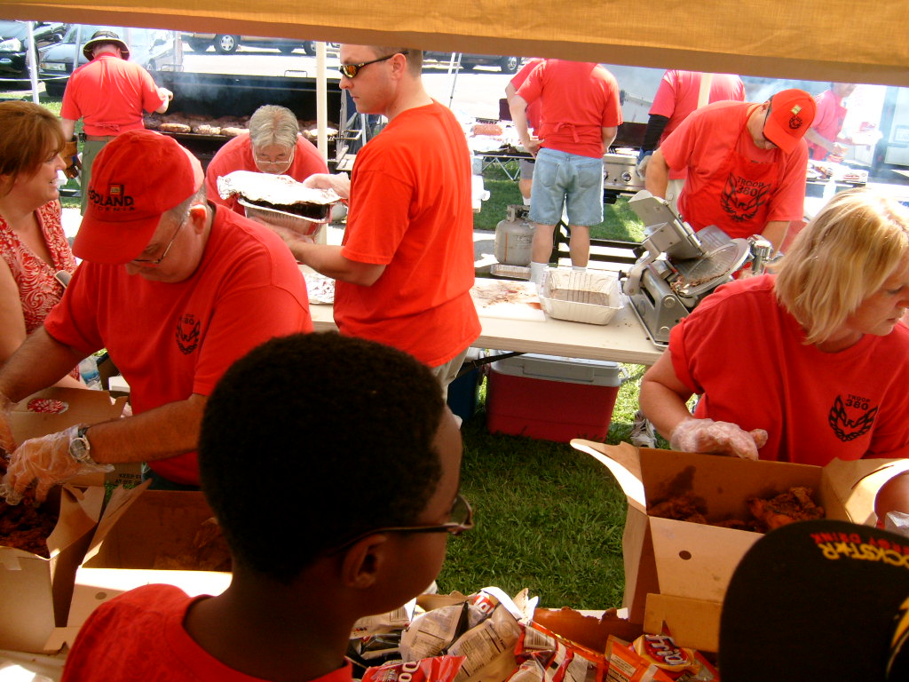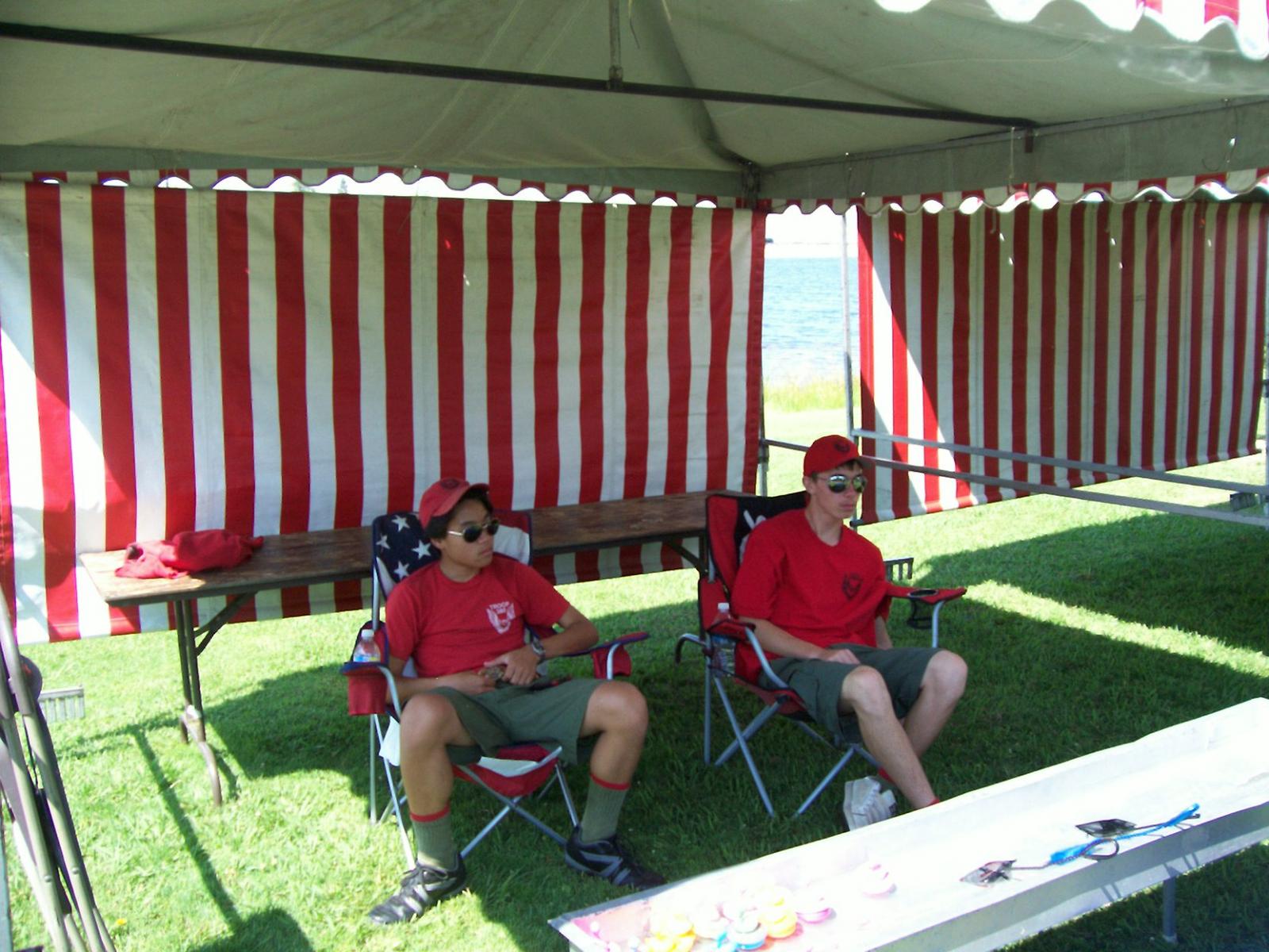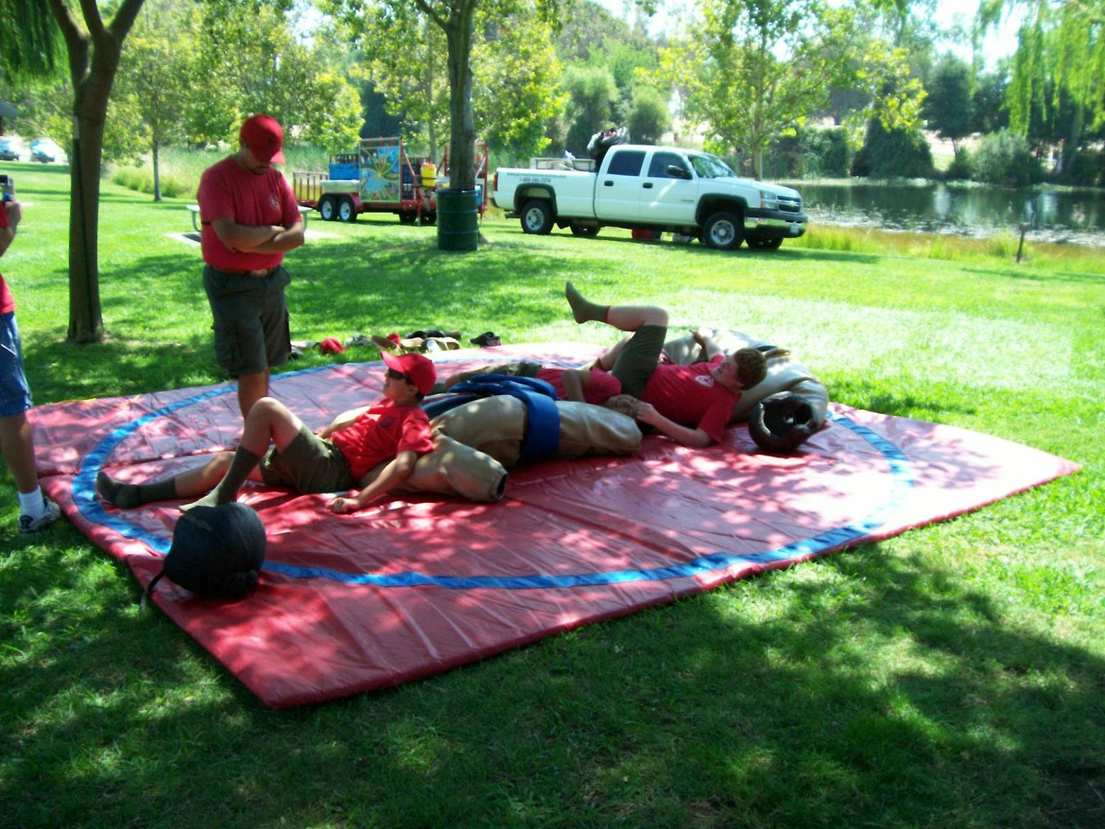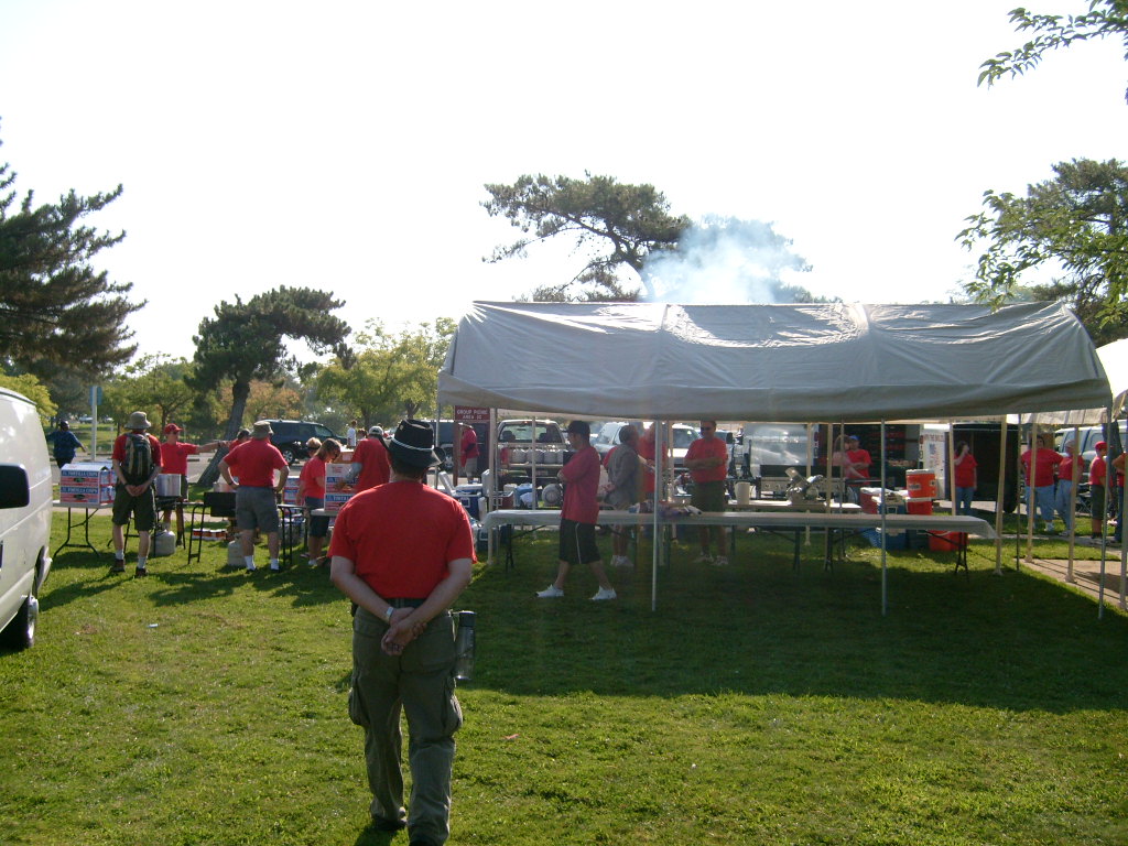 This year saw a new venue for the annual SMUD picnic held this year on August 15, 2009. That morning Troop 380 met early at Rancho Seco Regional Park to set up for the annual SMUD picnic. Over 100 Scouts, Scouters and family members helped set up the food tents with serving tables, barbeques, ice chests, food, condiments and paper products. In addition, we set up tables and chairs for eating, and set up the registration and prize booths and displays. With the lake as our backdrop, SMUD employees played games, chose from the famous Troop 380 barbequed tri-tip, as well as hamburgers, hot dogs and fried chicken. The DJ and his crew kept the place hopping with a wide variety of music giving the party a festive atmosphere. Thank you to both Laura Born and Zenaida Kamine for their hard work organizing the event.