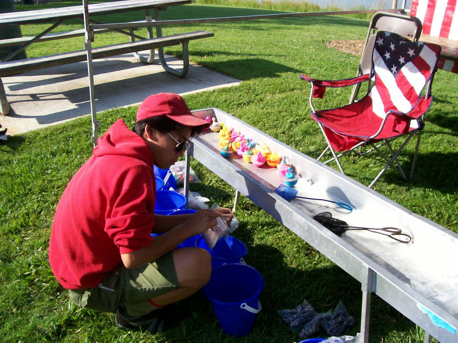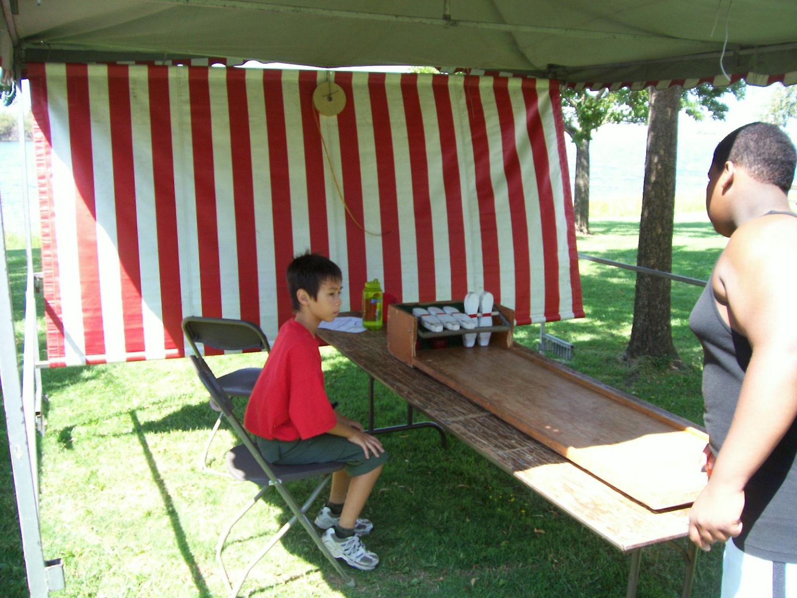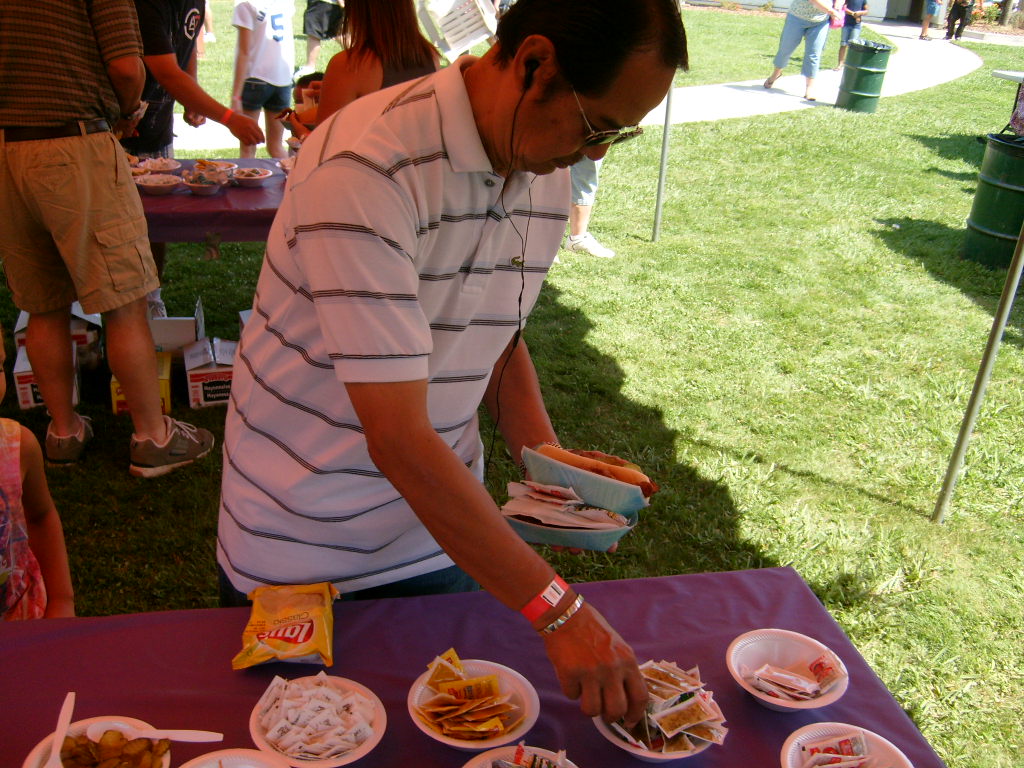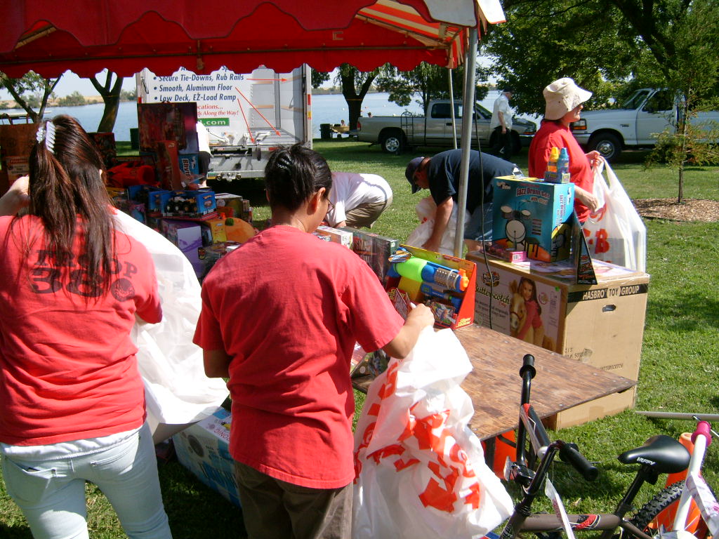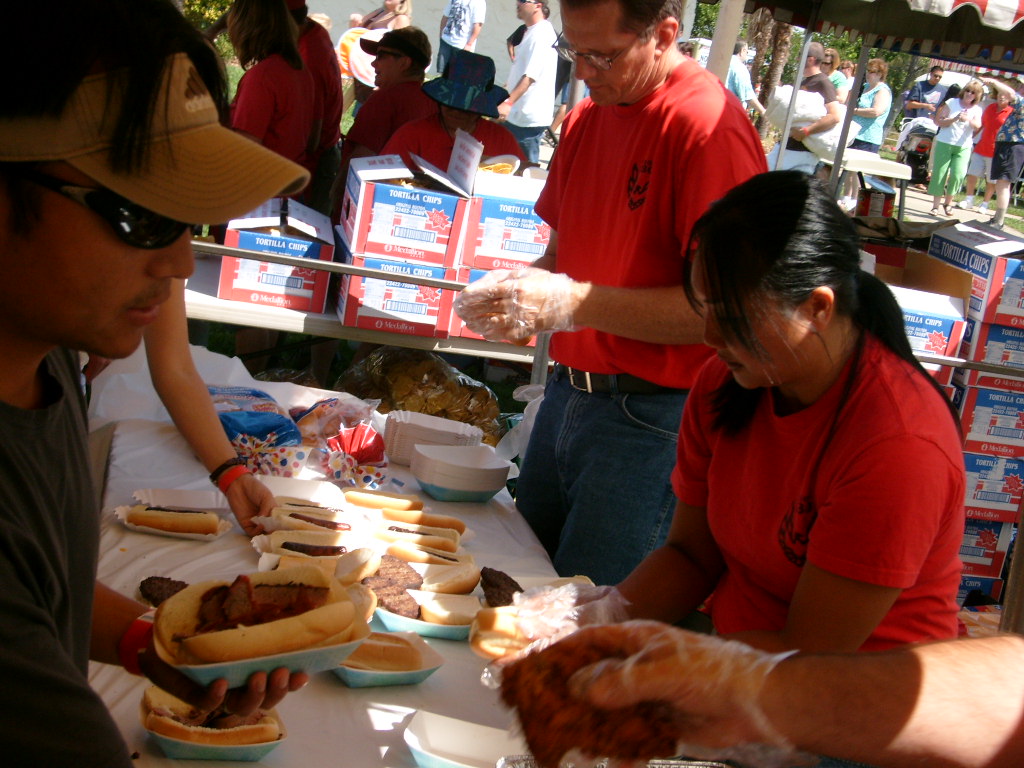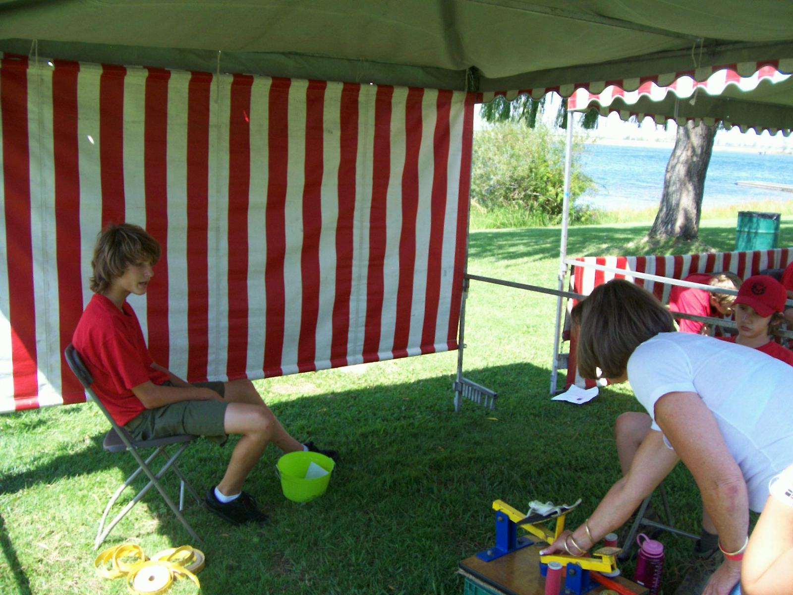 This year saw a new venue for the annual SMUD picnic held this year on August 15, 2009. That morning Troop 380 met early at Rancho Seco Regional Park to set up for the annual SMUD picnic. Over 100 Scouts, Scouters and family members helped set up the food tents with serving tables, barbeques, ice chests, food, condiments and paper products. In addition, we set up tables and chairs for eating, and set up the registration and prize booths and displays. With the lake as our backdrop, SMUD employees played games, chose from the famous Troop 380 barbequed tri-tip, as well as hamburgers, hot dogs and fried chicken. The DJ and his crew kept the place hopping with a wide variety of music giving the party a festive atmosphere. Thank you to both Laura Born and Zenaida Kamine for their hard work organizing the event.