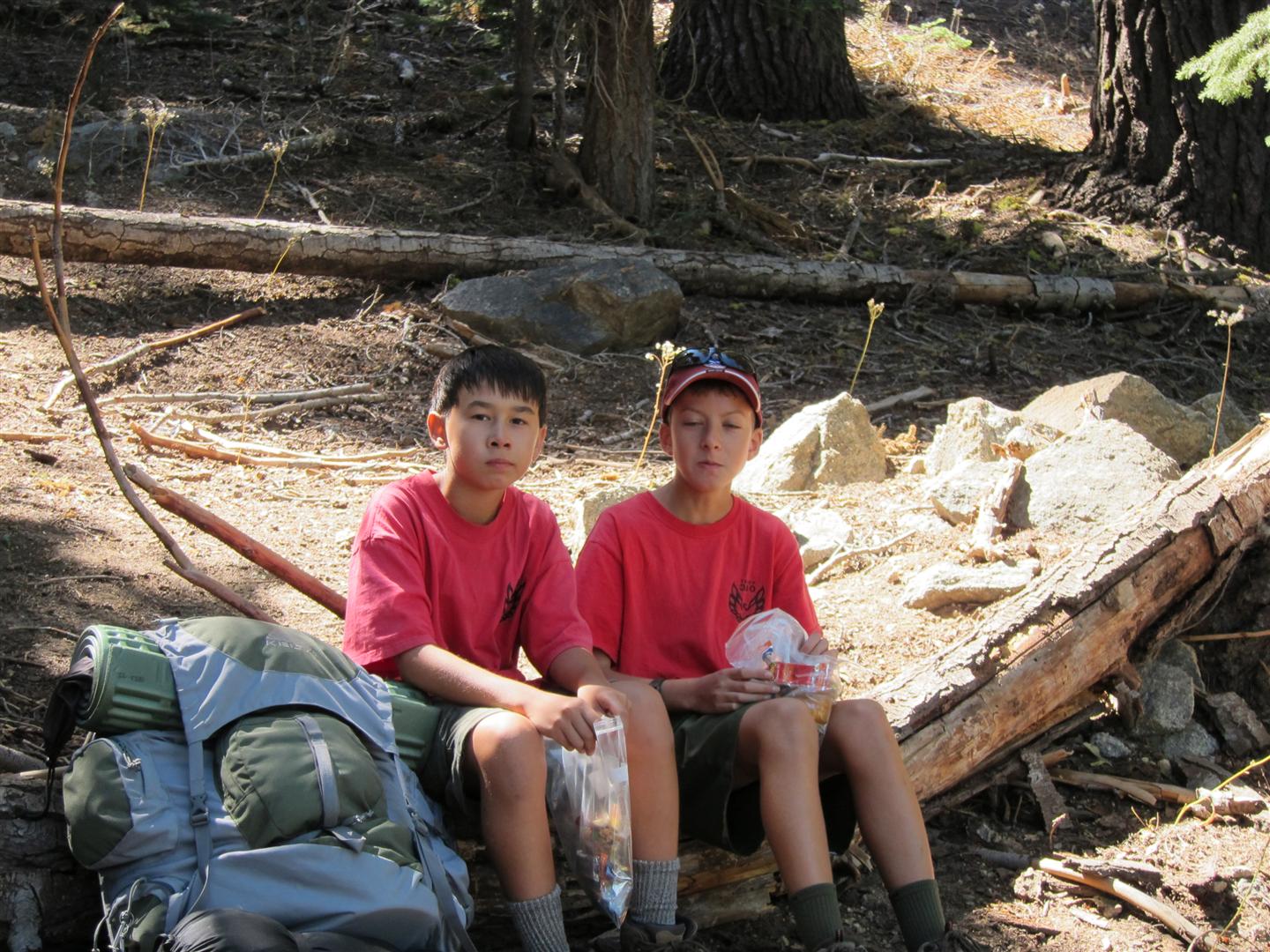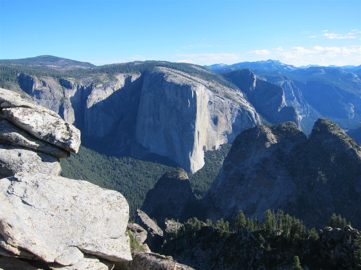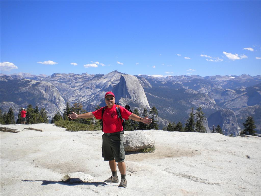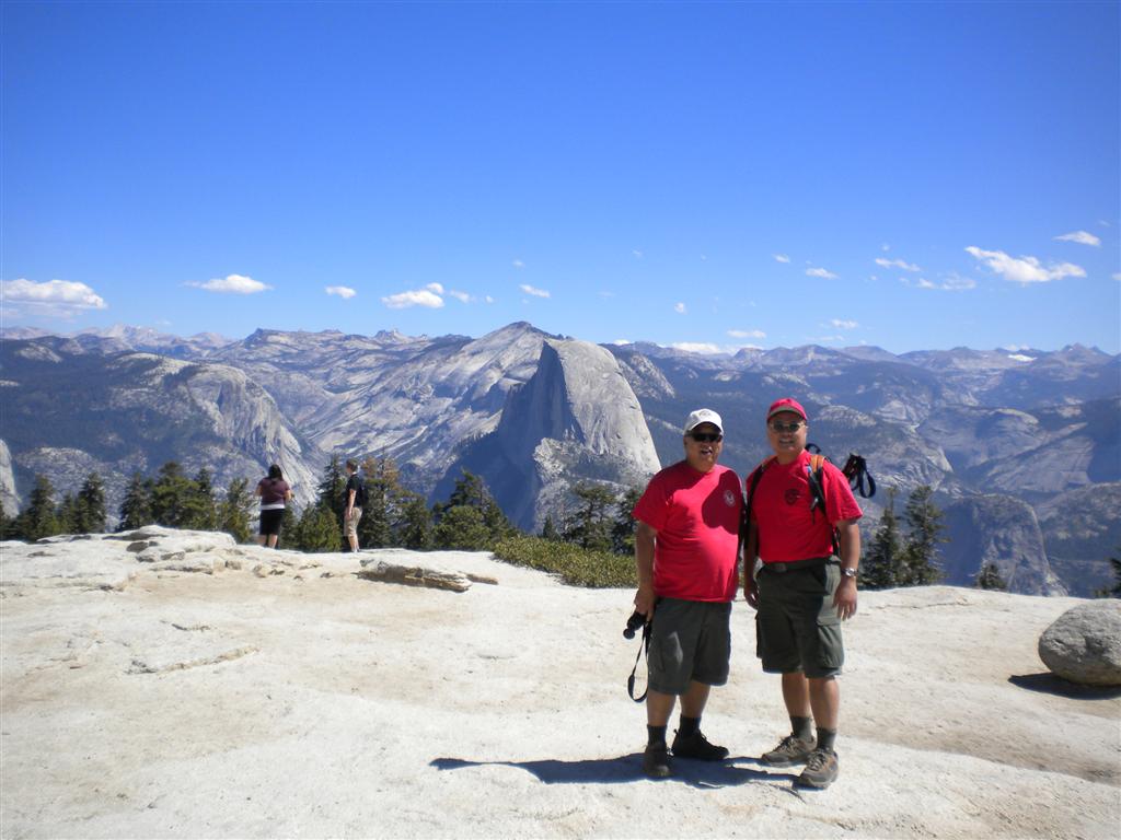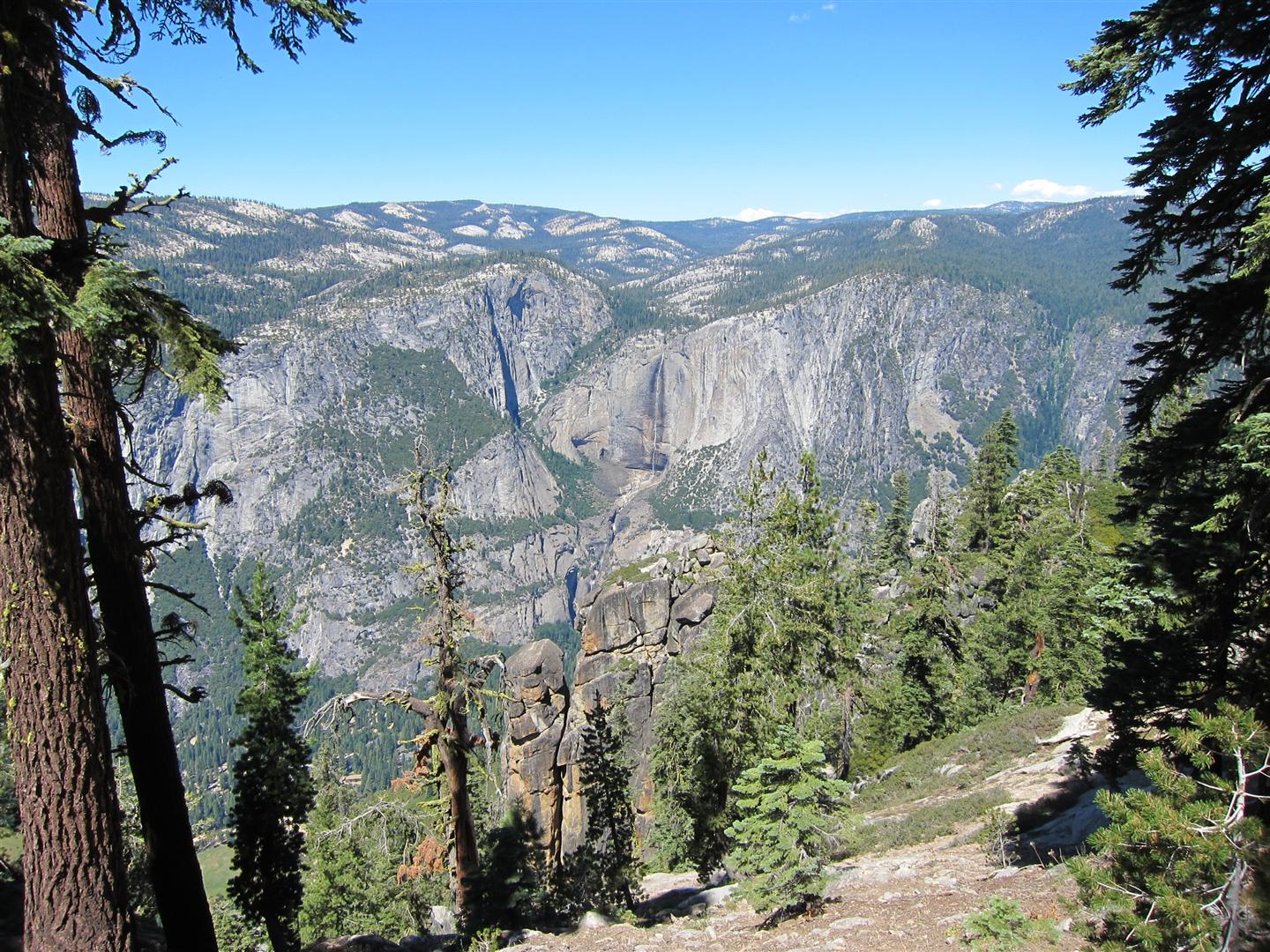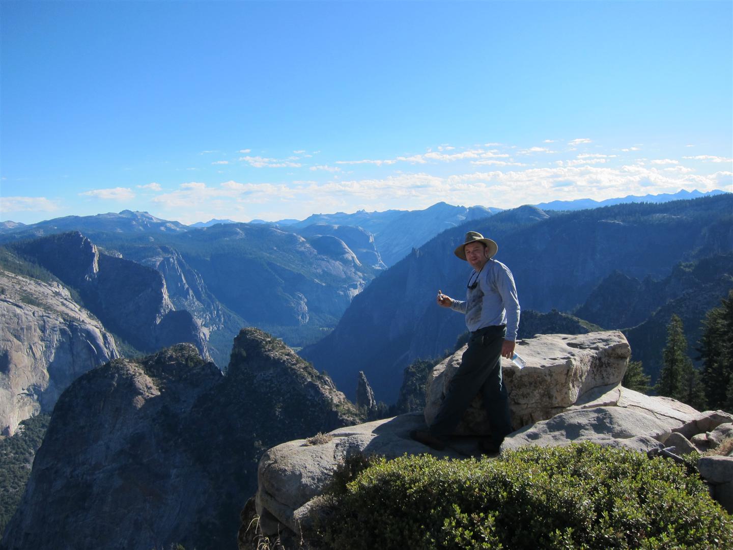 For the backpacking trip, five Scouts and three adults hiked the 14 mile Pohono trail along the upper south rim of the valley. Not only did they get to see the magnificent views from Glacier Point with the entire group on Sunday, but through Sunday and Monday they stopped along Taft Point, Dewey Point, Crocker Point, Stanford Point, and Inspiration Point. After 14 miles and two days of excellent weather, this was their parting vista of the day at the Wawona Tunnel.