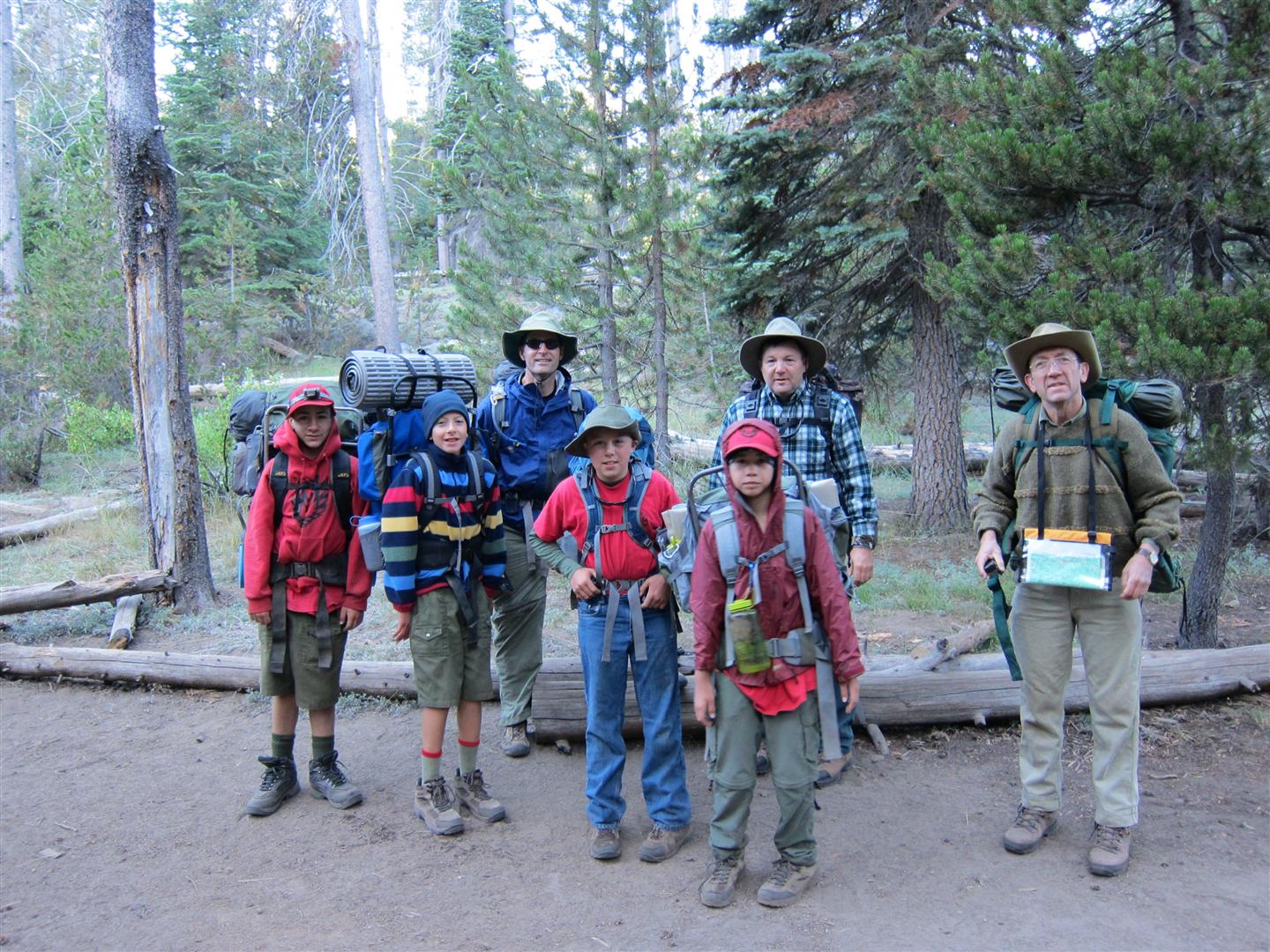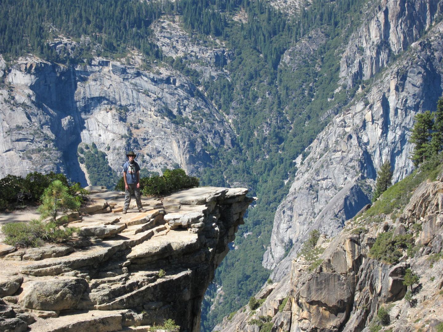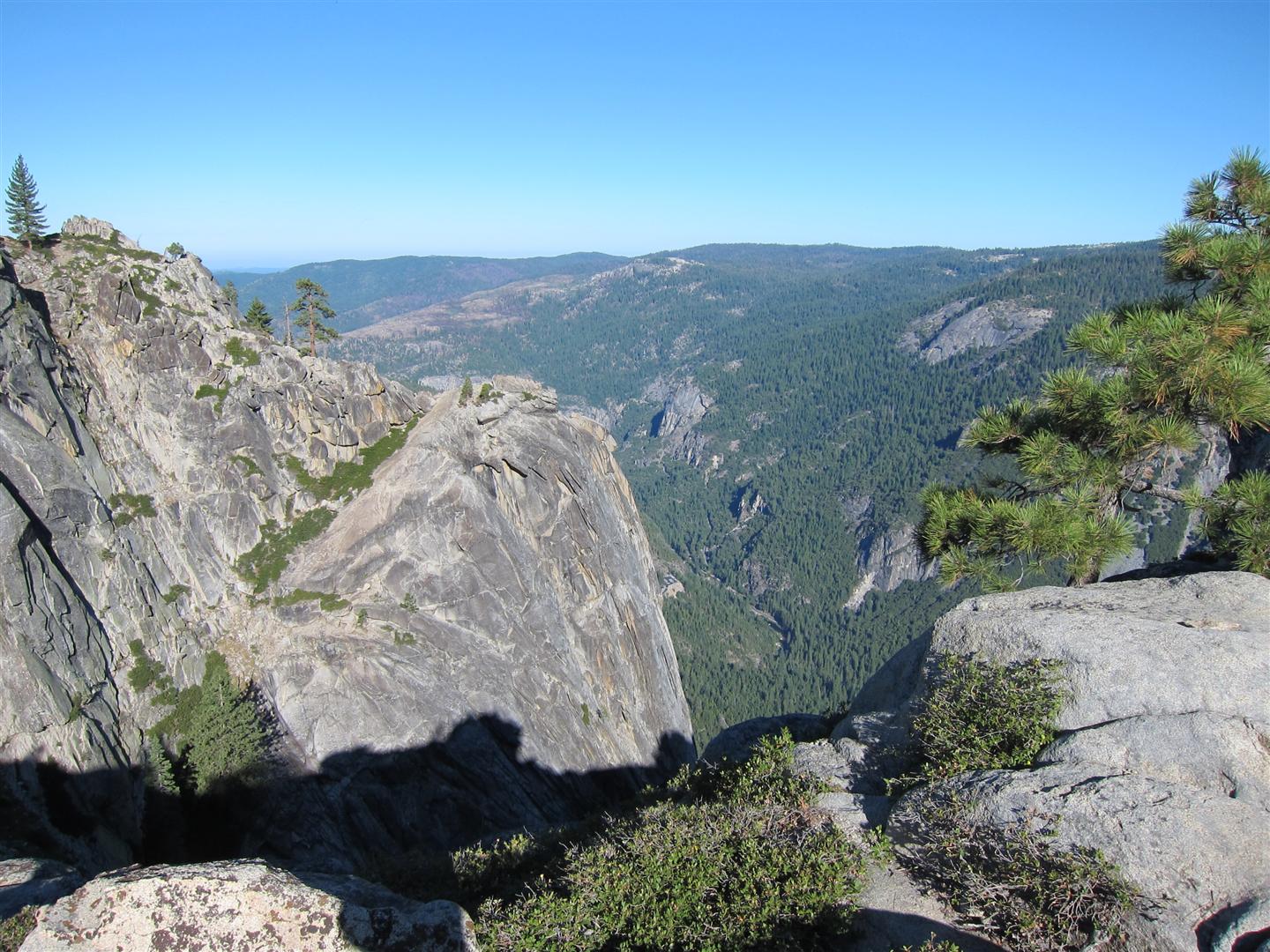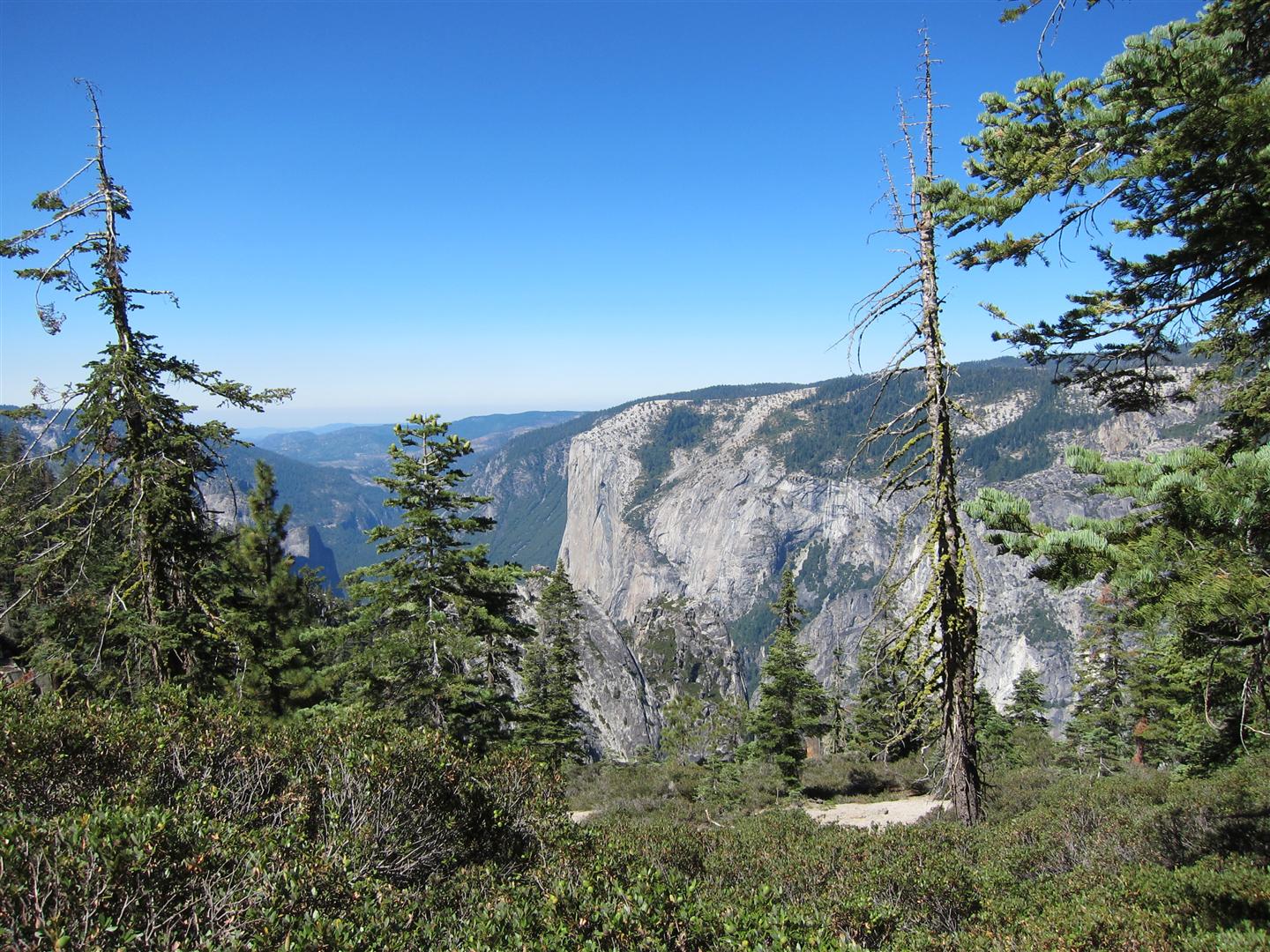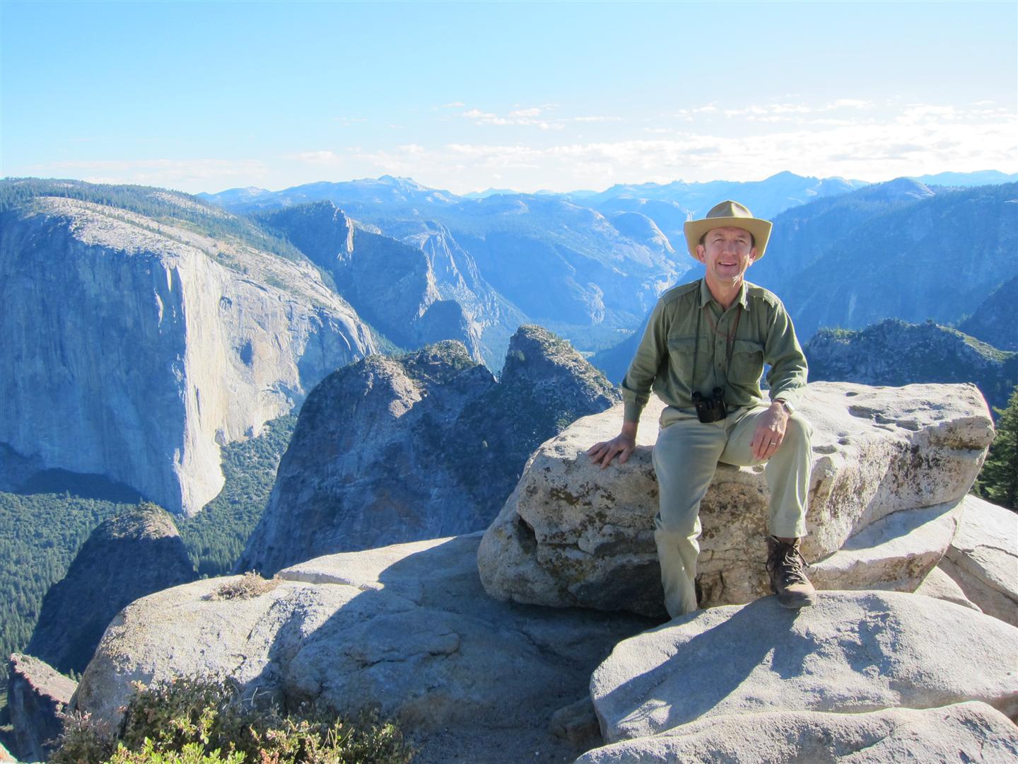 For the backpacking trip, five Scouts and three adults hiked the 14 mile Pohono trail along the upper south rim of the valley. Not only did they get to see the magnificent views from Glacier Point with the entire group on Sunday, but through Sunday and Monday they stopped along Taft Point, Dewey Point, Crocker Point, Stanford Point, and Inspiration Point. After 14 miles and two days of excellent weather, this was their parting vista of the day at the Wawona Tunnel.