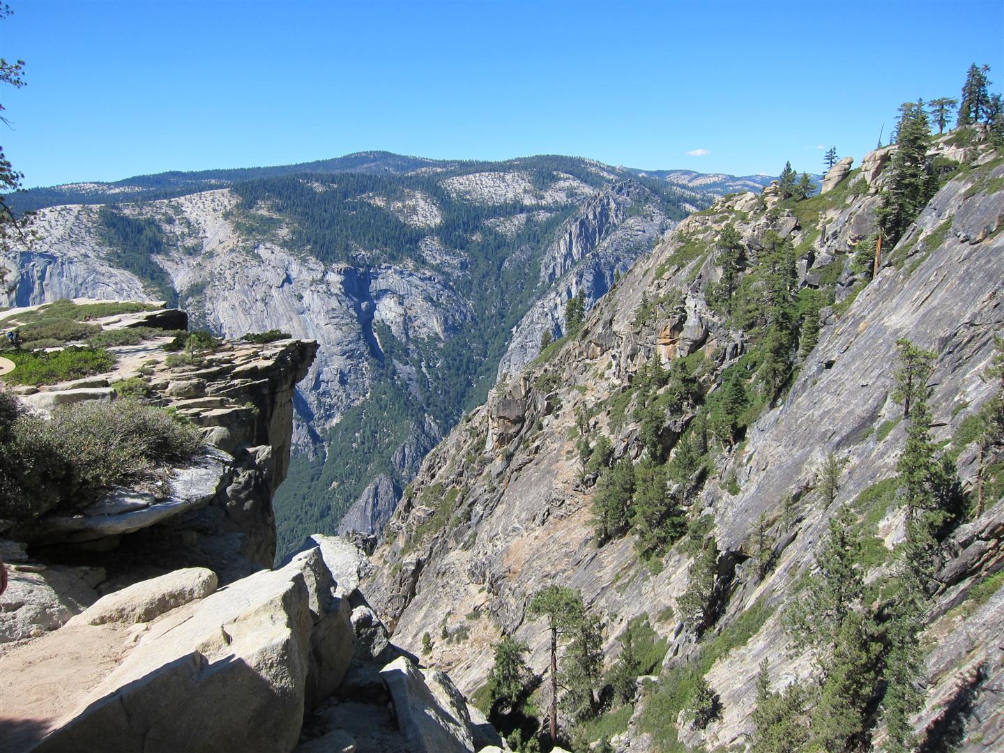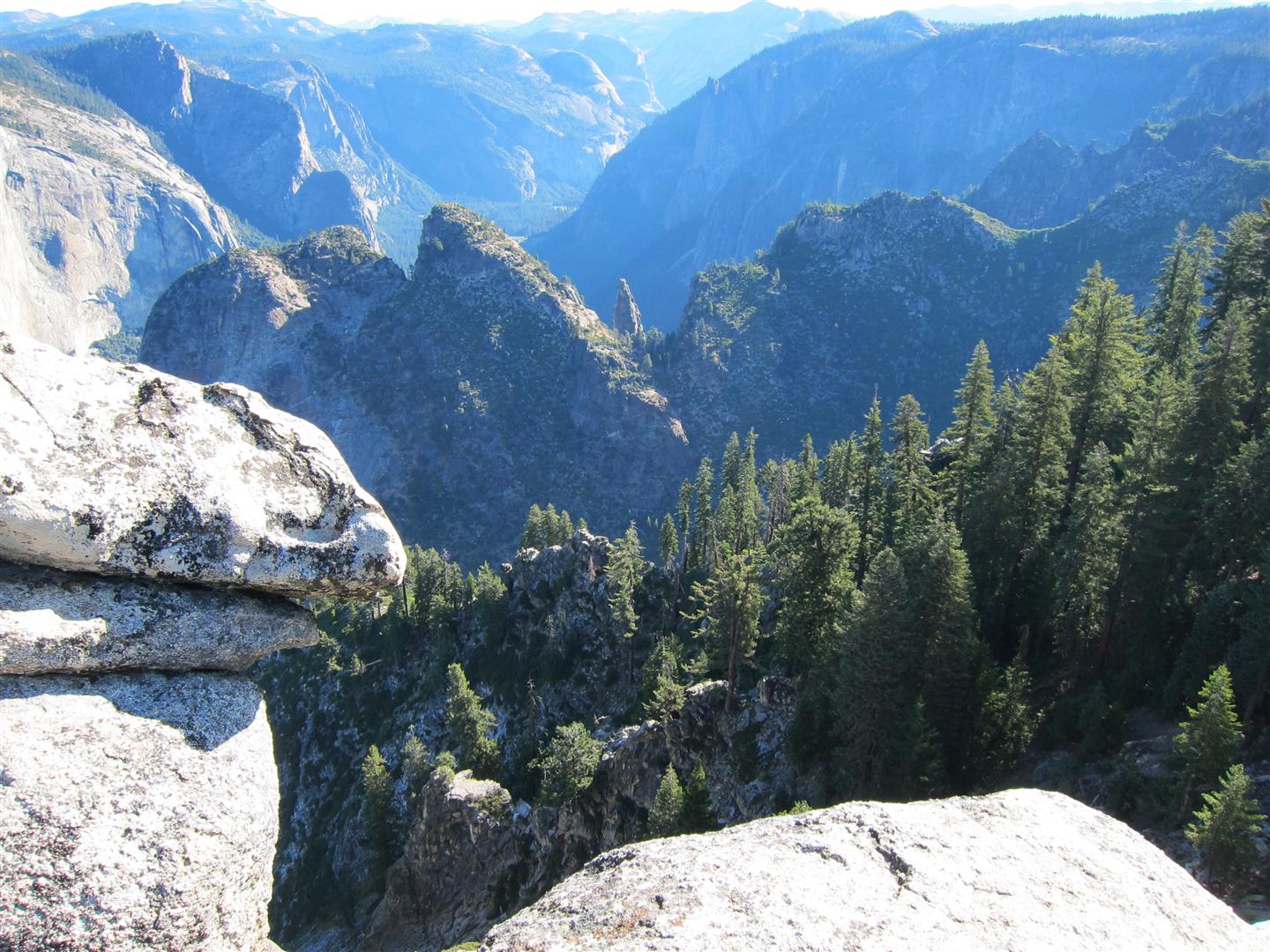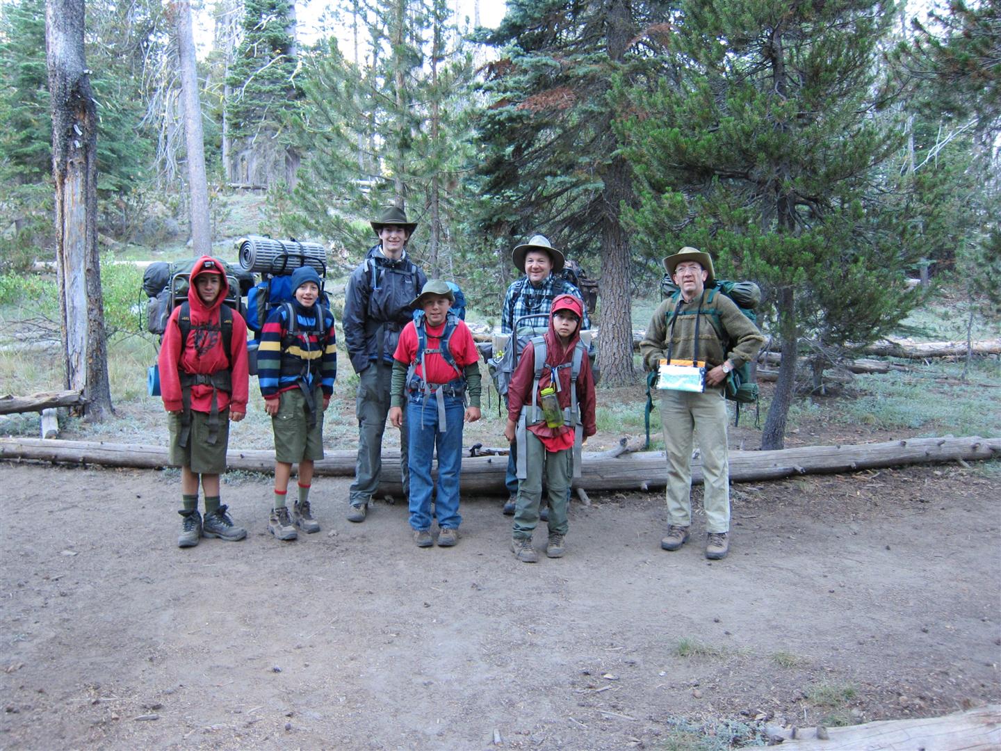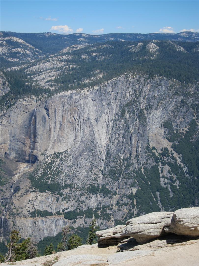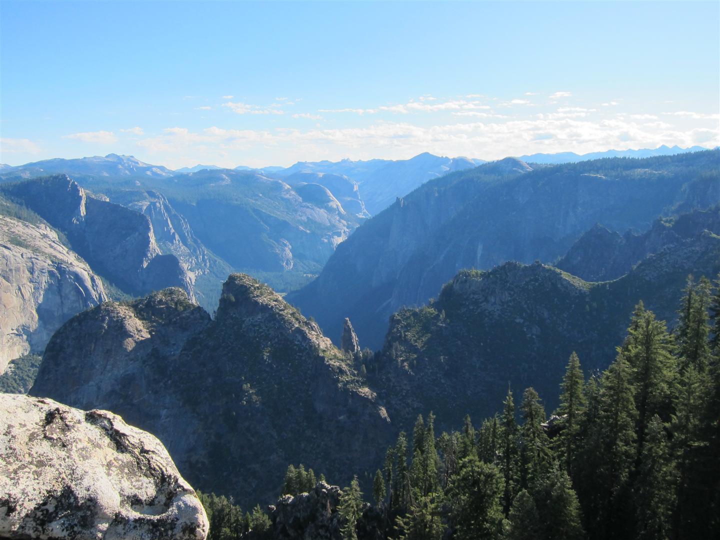 For the backpacking trip, five Scouts and three adults hiked the 14 mile Pohono trail along the upper south rim of the valley. Not only did they get to see the magnificent views from Glacier Point with the entire group on Sunday, but through Sunday and Monday they stopped along Taft Point, Dewey Point, Crocker Point, Stanford Point, and Inspiration Point. After 14 miles and two days of excellent weather, this was their parting vista of the day at the Wawona Tunnel.